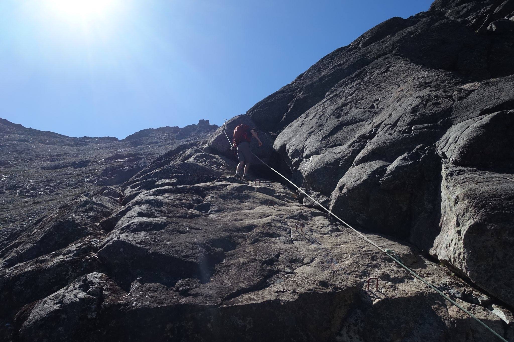 The first part of the lift is in an enclosed gondola, which lets out at a cute bar / restaurant. From here, we boarded a chair lift the rest of the way. This was Kyle’s first experience with each. At the end of the chairlift, it’s just a short 10-20 minute hike to a col below Punta Princessa.