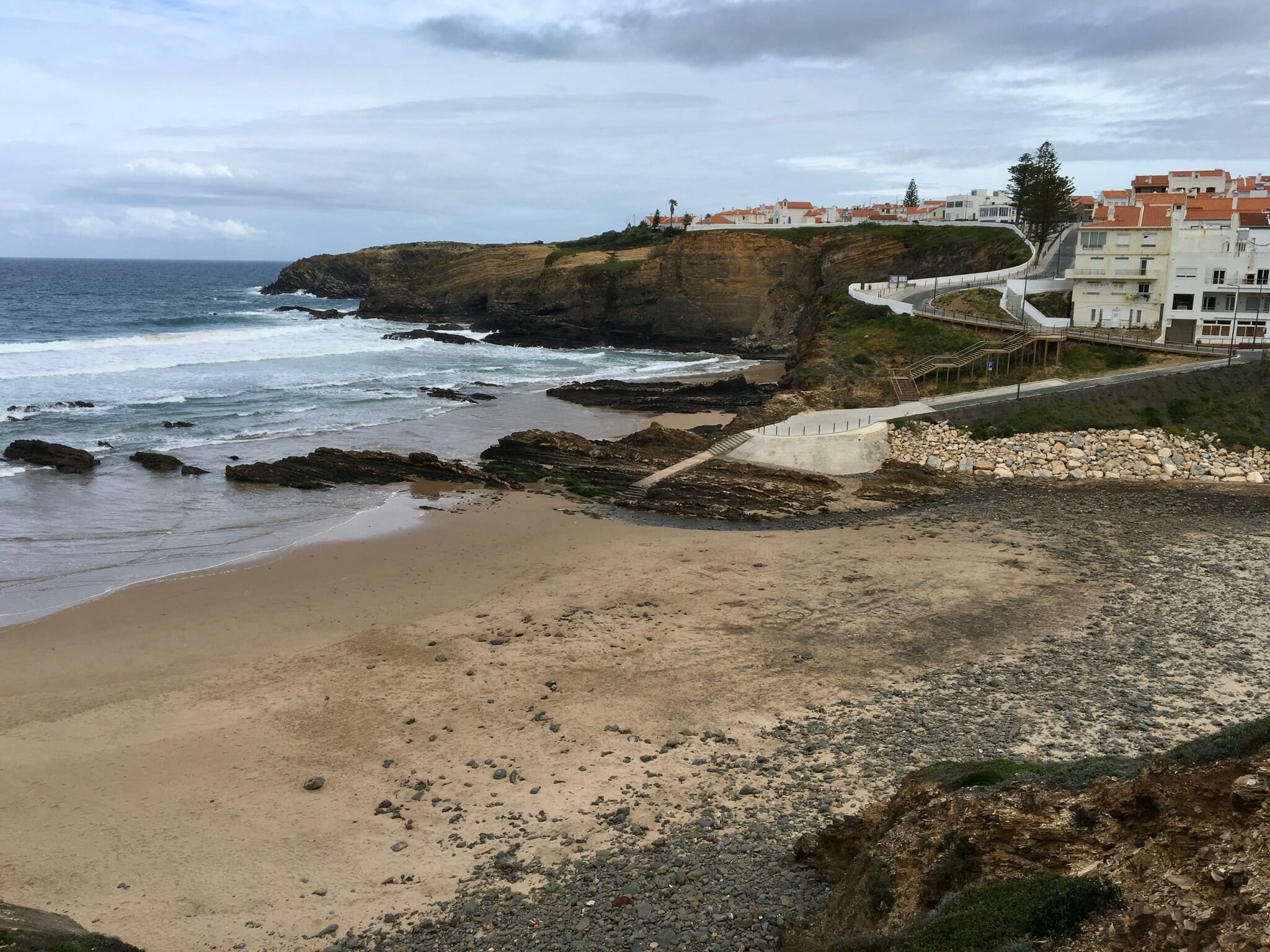 Until you reach Monte Clérigo, the trail follows various roadways through recent development, as it avoids some uneven terrain. By the time we reached the coast, the sun returned and my mood improved considerably.