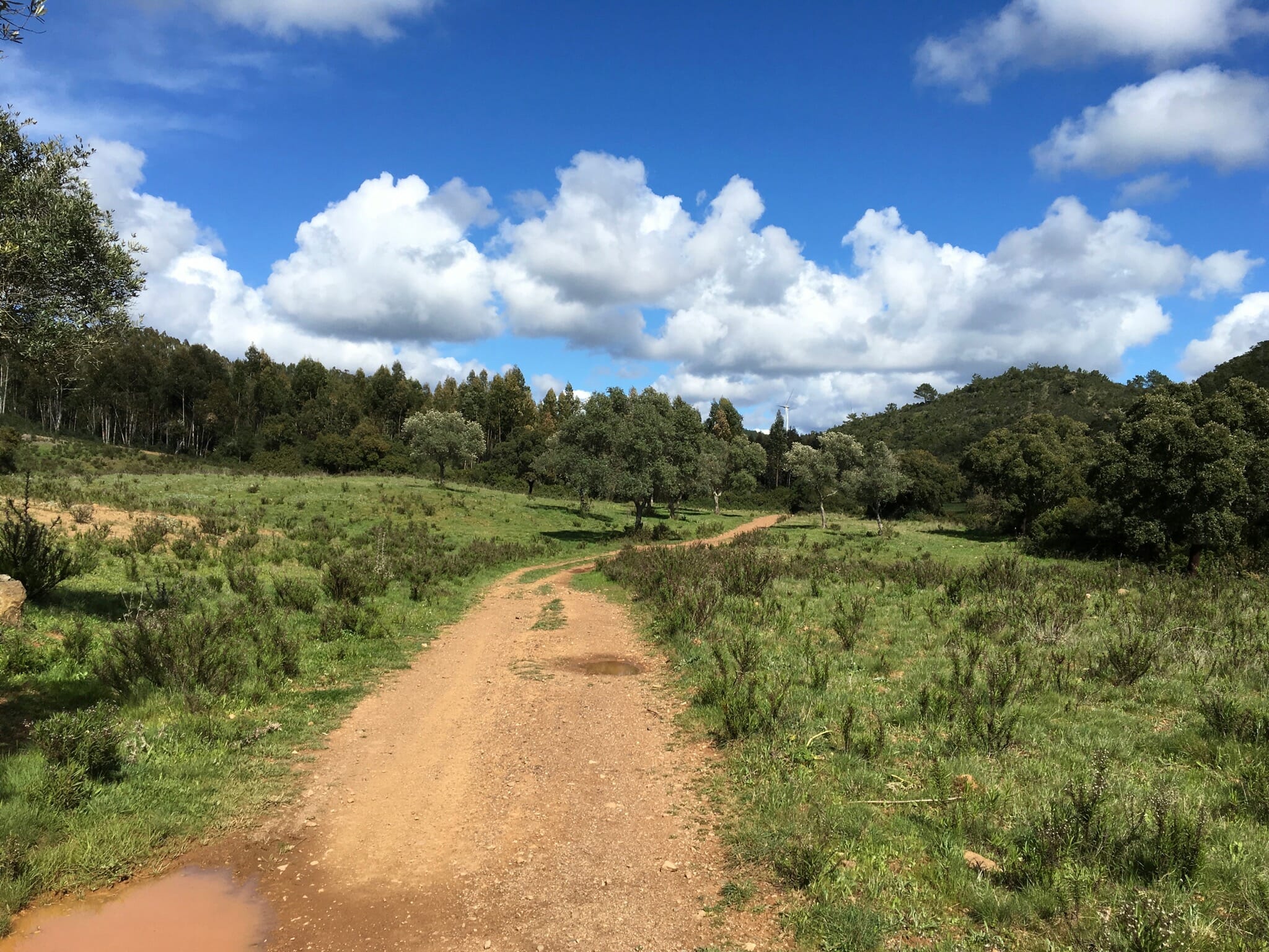 When we reached the tiny village of Bordeira, we could easily hear a lively gathering of locals at the bar. We stopped in the charming town square for another snack and rest, and said hello to a very friendly local woman and her dog. The route continues from the town square and climbs along a hillside with many new homes under construction — some of which appeared to have a very small livable space in some degree of completeness while the owner works slowly on the remainder of the structure.