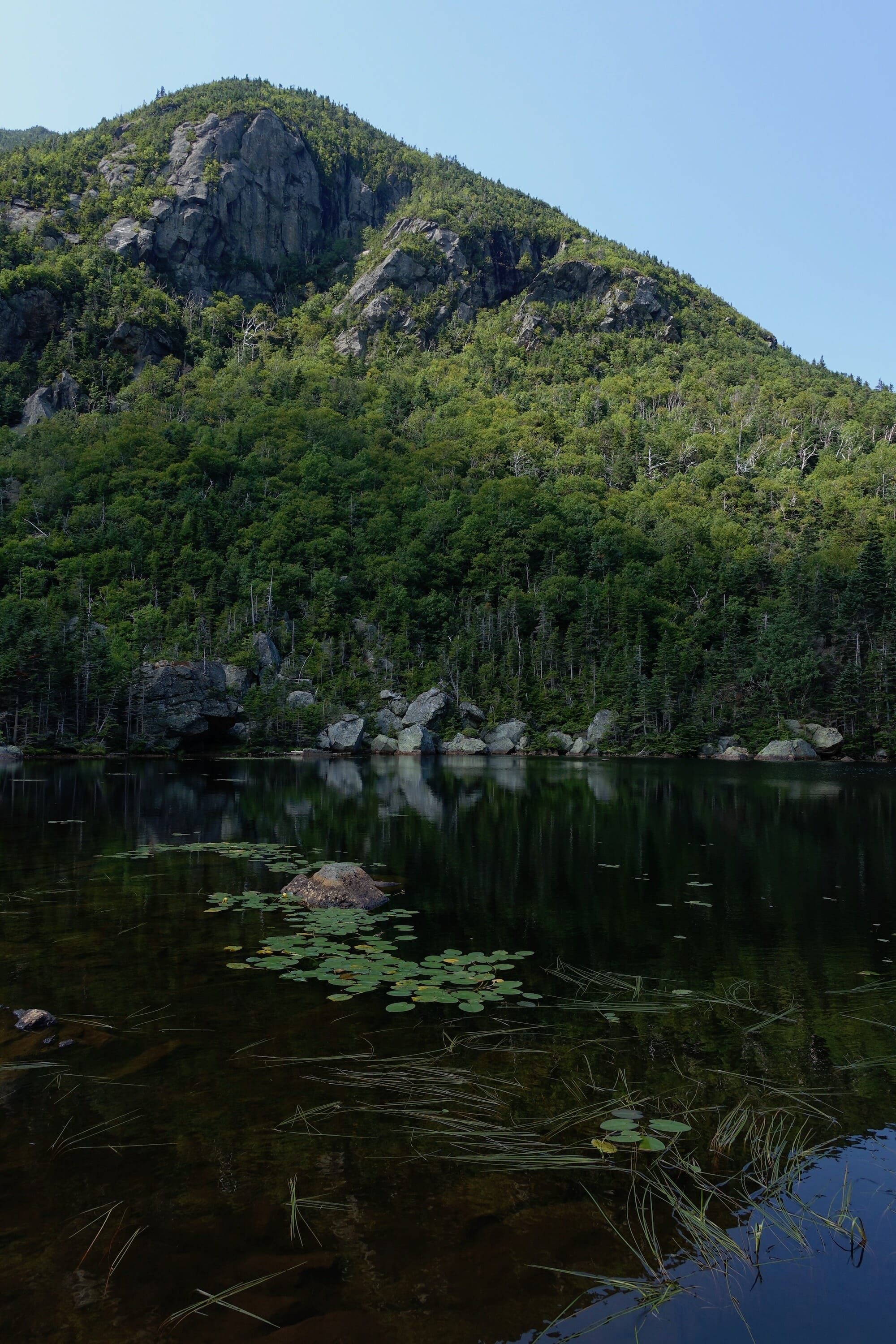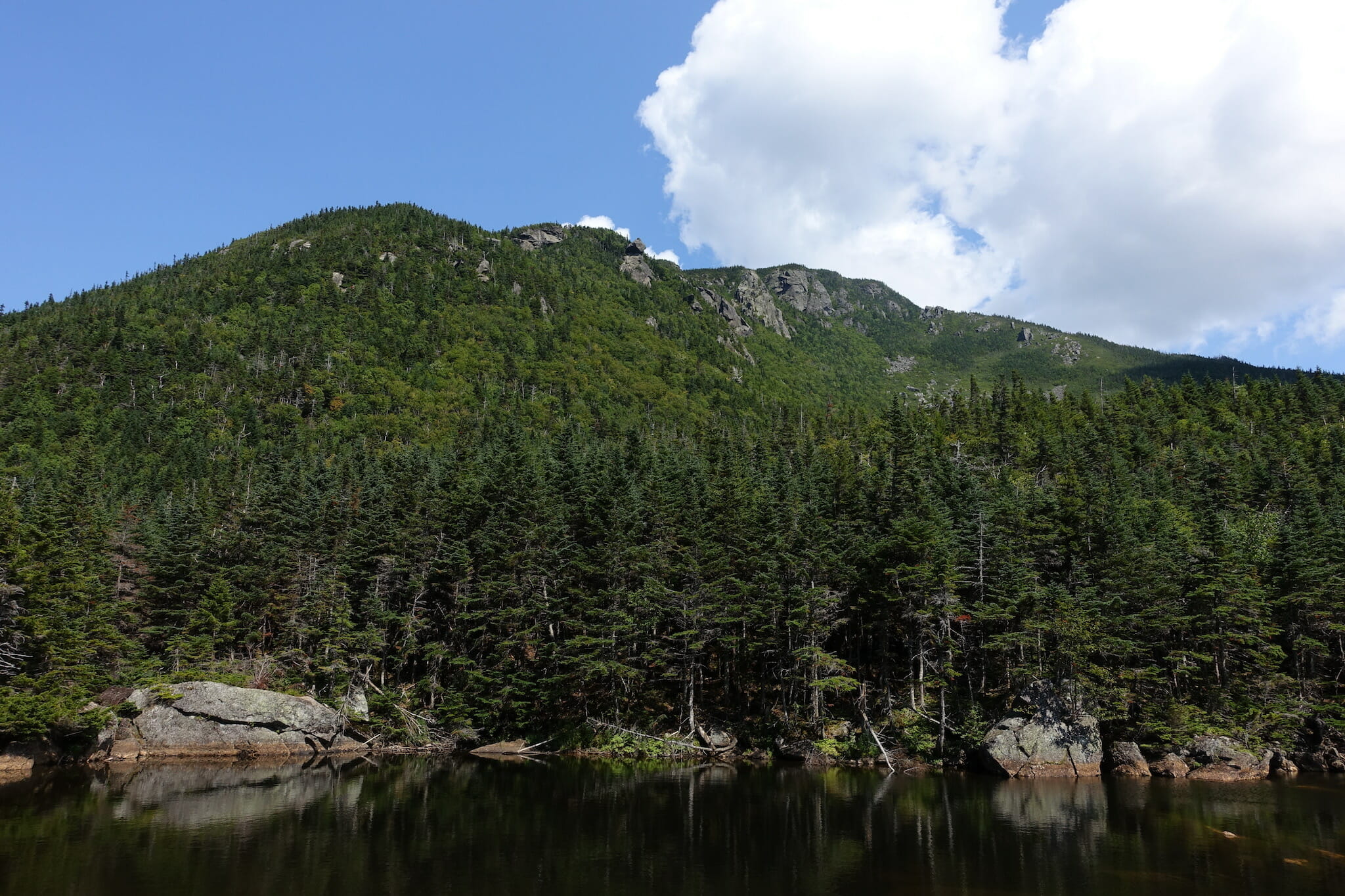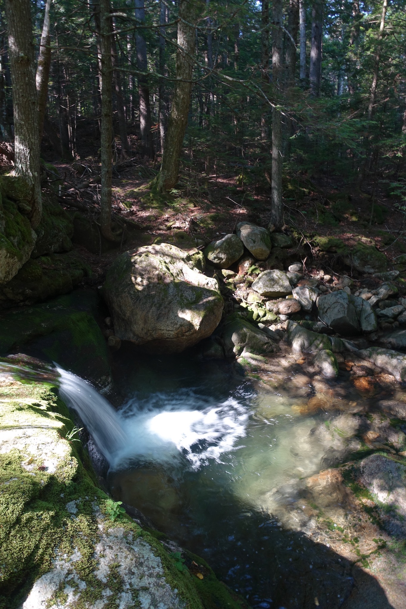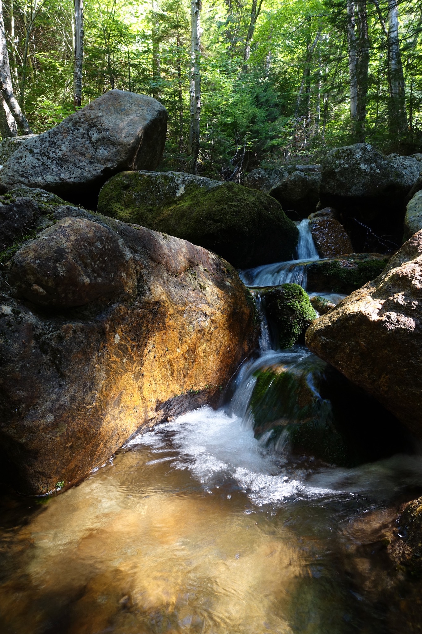 When you are ready to go, follow the Nineteen Mile Brook trail out. After the steep descent into the notch, the gradual grade is a welcome reprieve. Boulders, however, dot the trail and can make for slower going than one might expect from the contour lines. 1.8 miles will bring you back to the junction with , and another 1.9 miles brings you back to the trailhead.