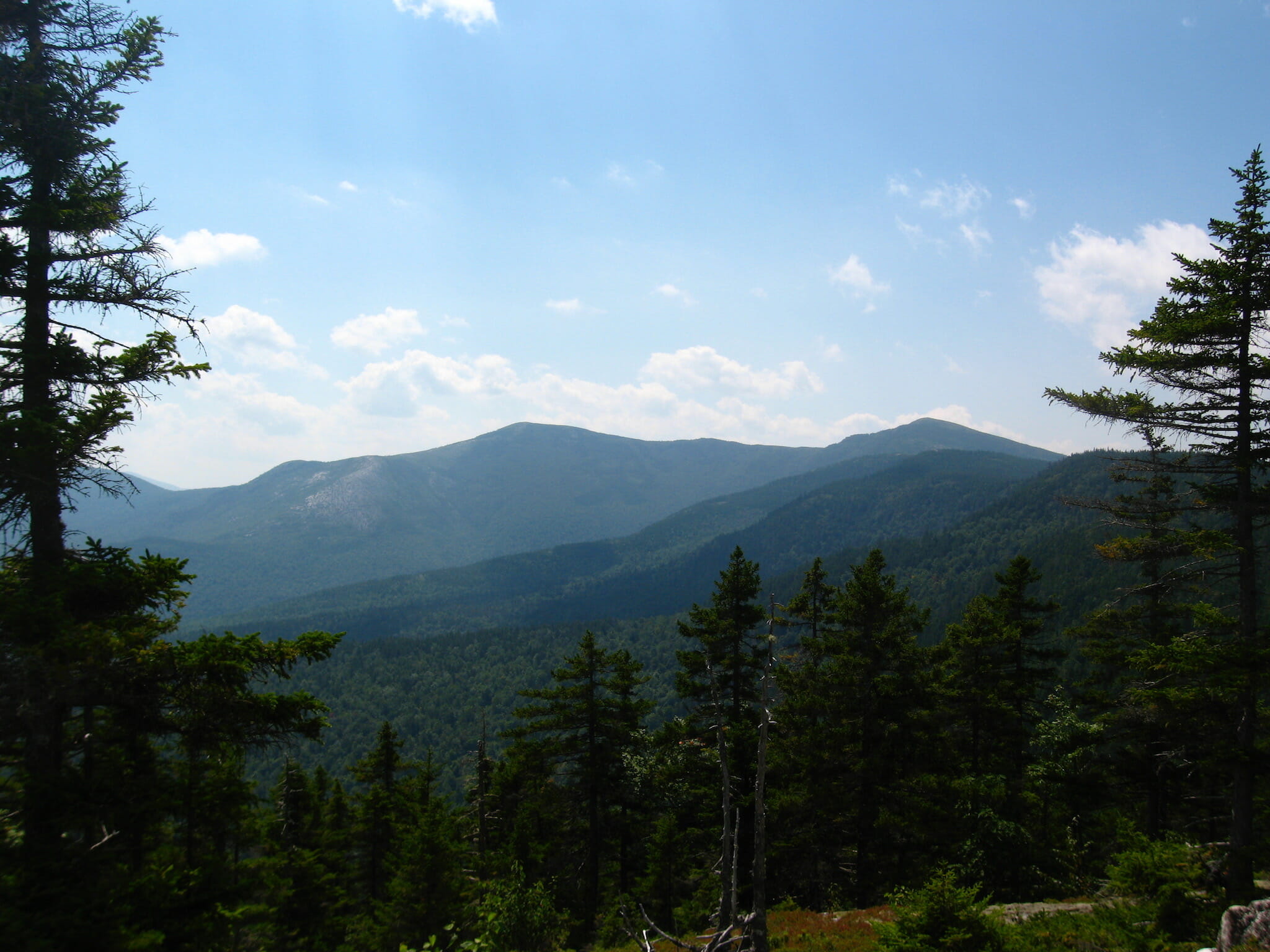 This post covers my favorite hikes in the Evans Notch area and the Carter-Baldface Ranges. A second post describes my favorite day hikes in the Presidentials. Compared to the Presidentials, Evans Notch is much quieter, featuring green, rolling mountains with exposed granite ridges and summits and, typically, excellent blueberries by August. The Baldface range forms the west side of the notch and Cold River Valley. The wilderness of the Wild River Valley separates the Baldfaces from the Carter-Moriah range further to the west.