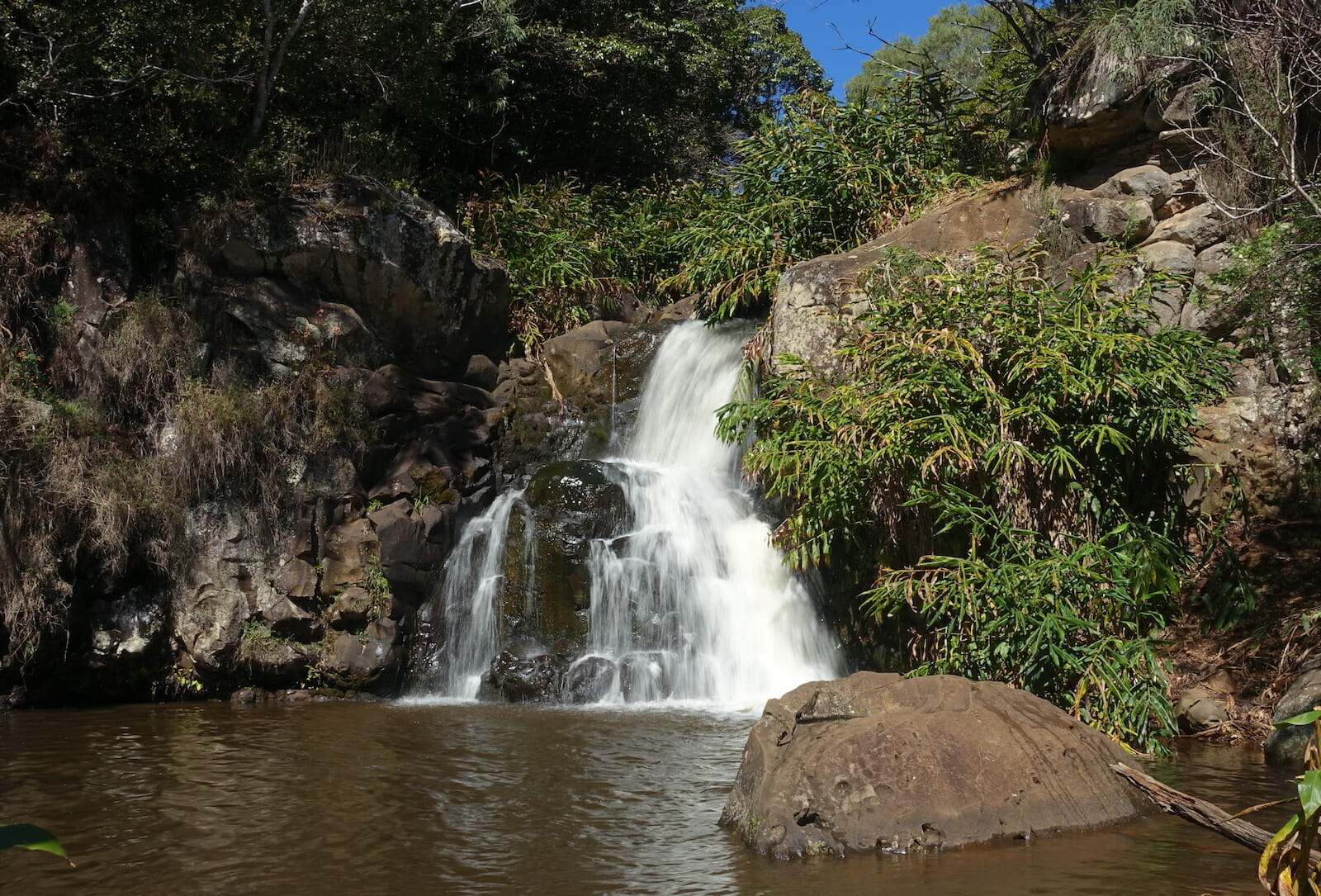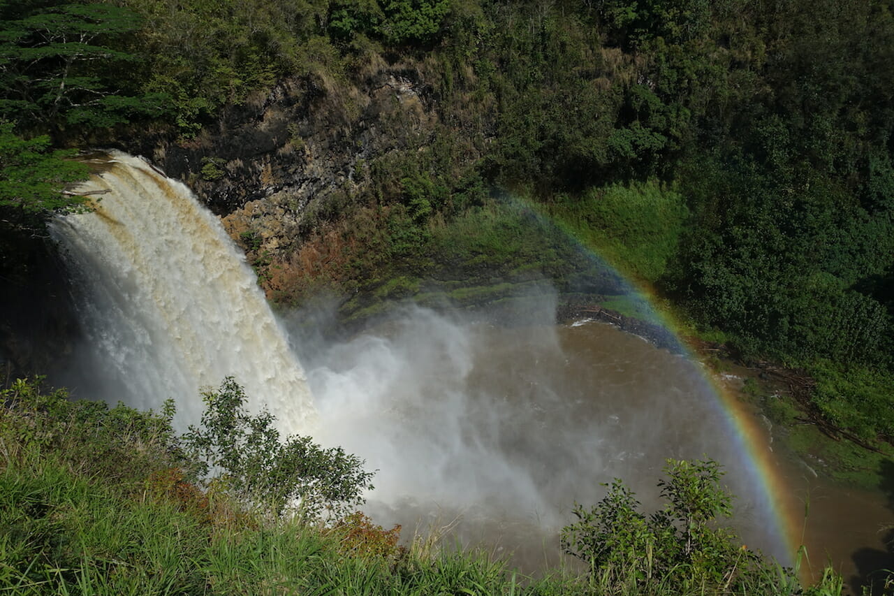 From here, it was another short drive to Wailua Falls. Though vegetation partially obscured the falls, the mist and light made for some nice rainbows.