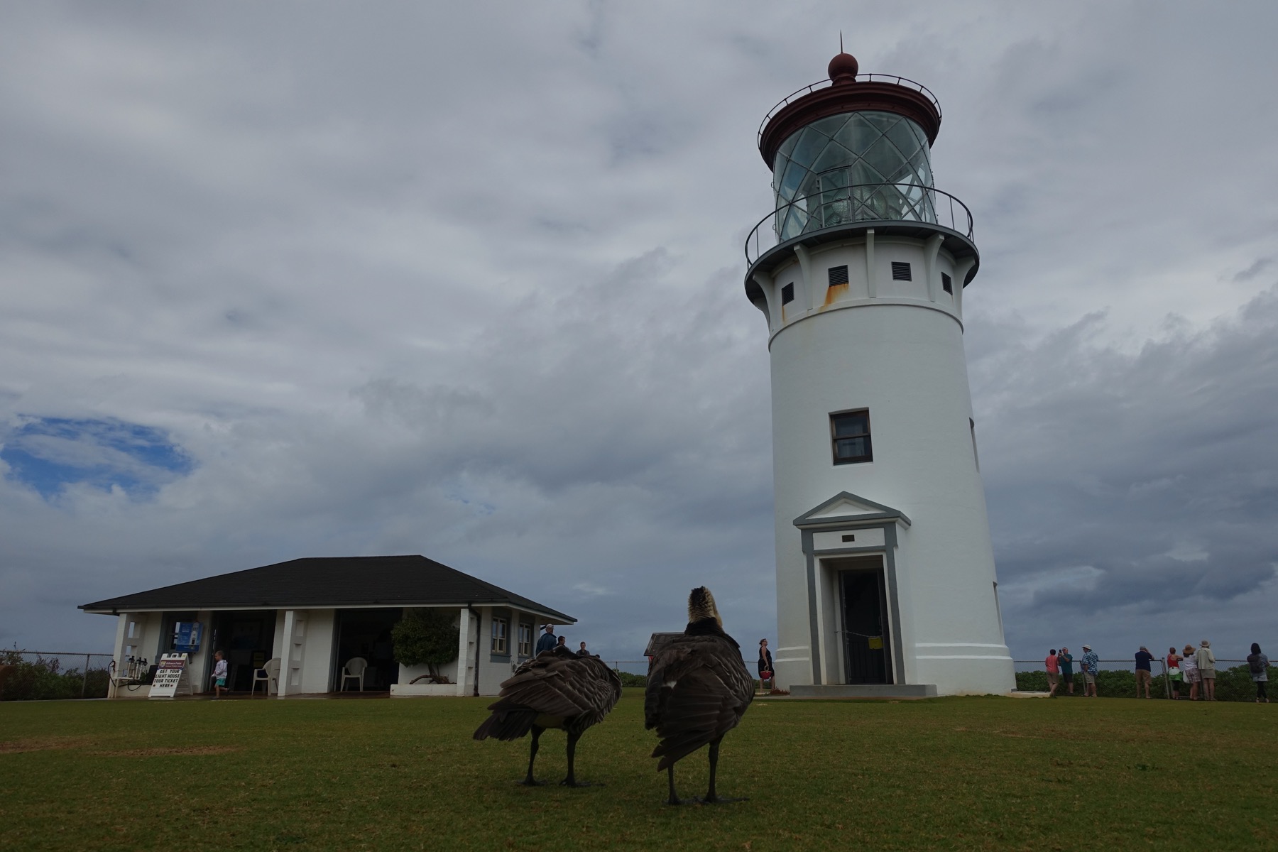 From breakfast, it was just a few minute drive to Kilauea Lighthouse & Wildlife Refuge. We arrived near opening. After we walked out to the point, we paid little attention to the lighthouse, even though it was open for tours. Instead, we spent the better part of two hours watching seabirds, which were nesting along the cliffs and a nearby island. Boobies and albatrosses soared overhead. Nēnē also wandered through the grass and bushes at the base of the lighthouse. Occasionally, we caught glimpses of whales off the coast.
