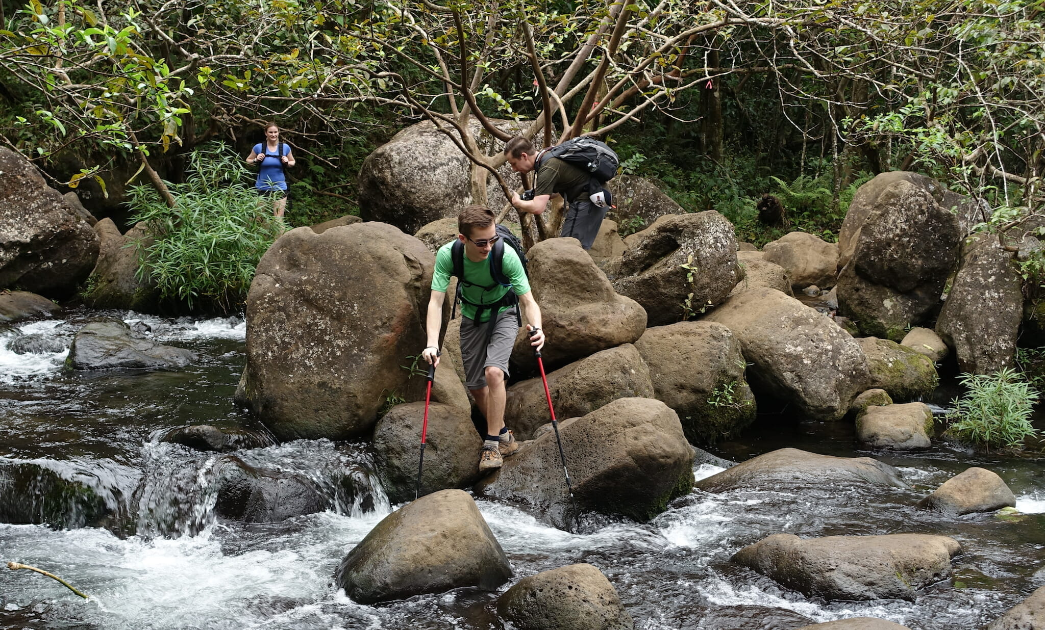 From there, we set out for Ke’e Beach and the Kalalau trailhead. From here, the trail runs 11 miles along Kauai’s Nā Pali coast. Our itinerary, however, was shorter: a 7-mile round trip to Hanakapiai Falls.