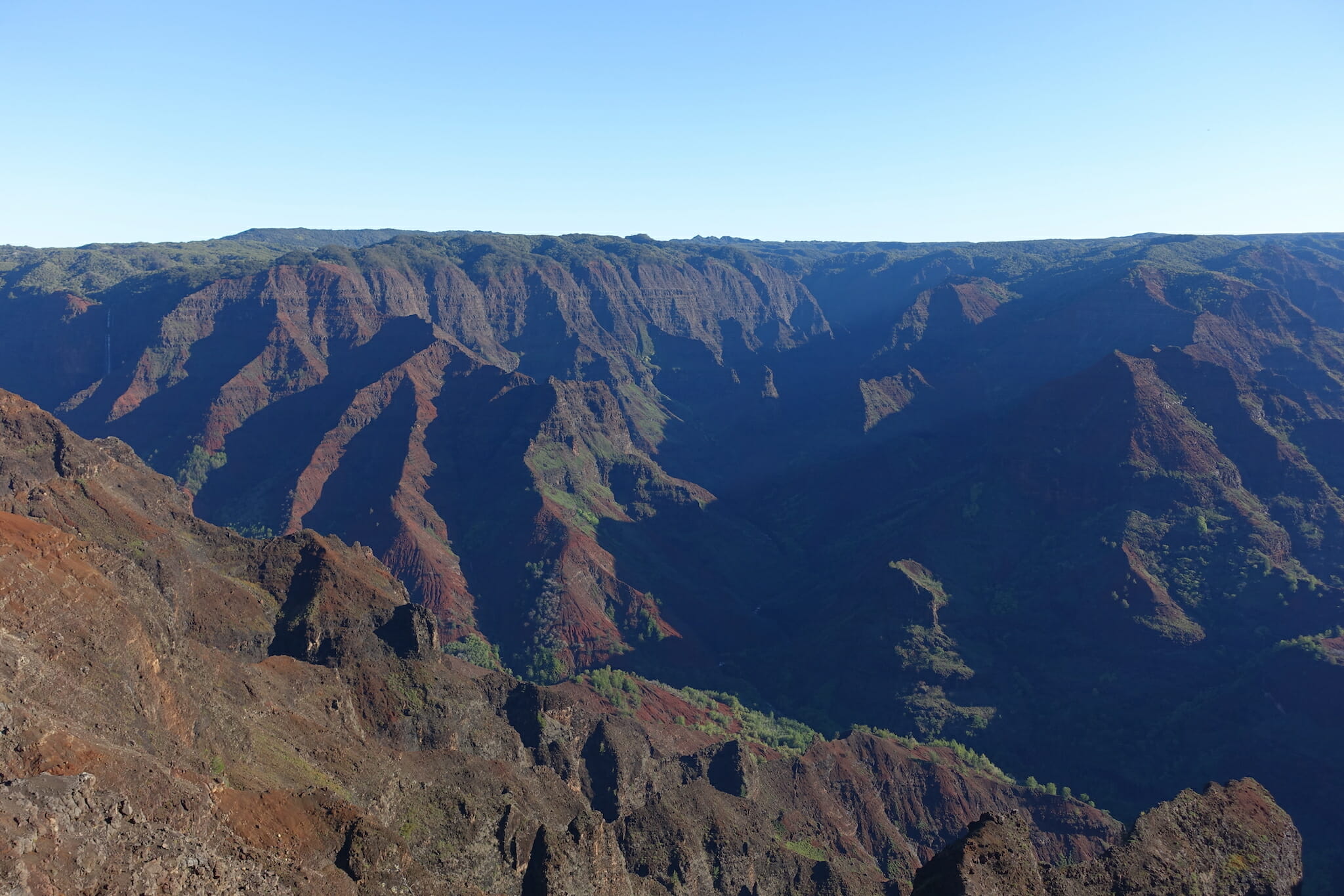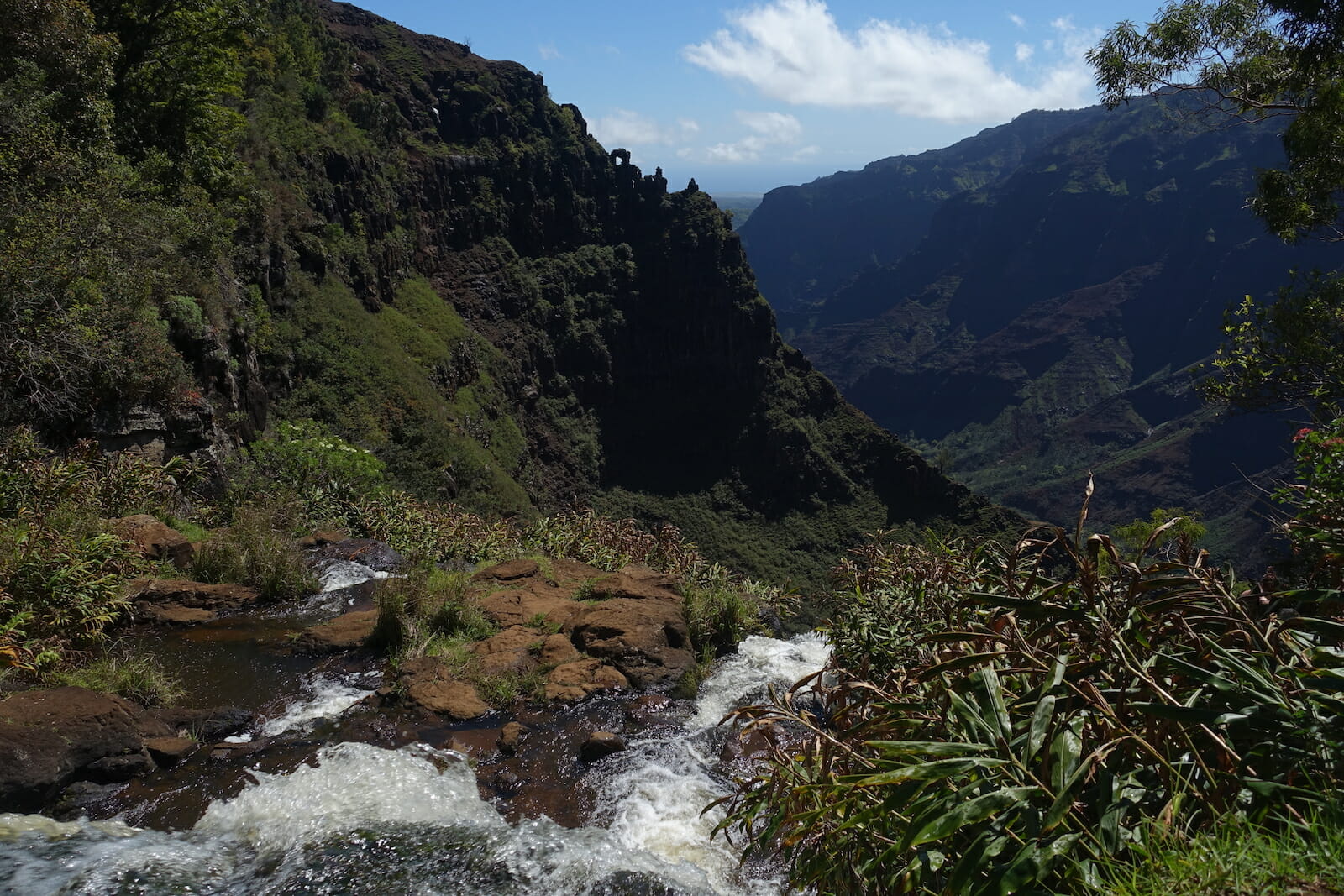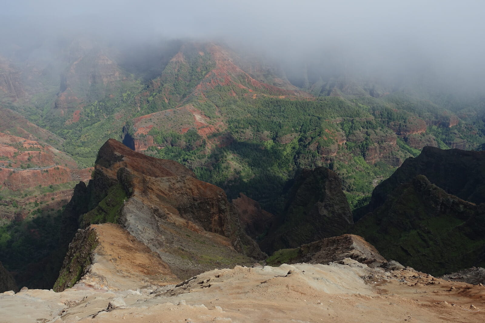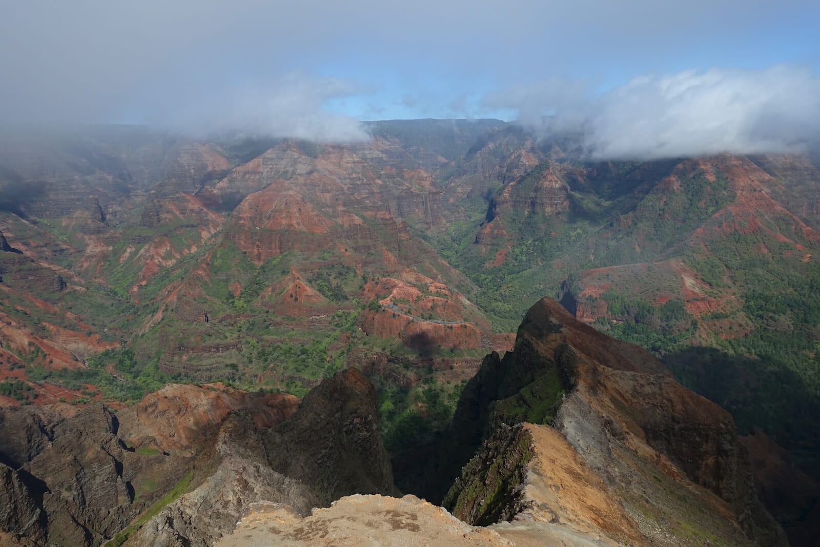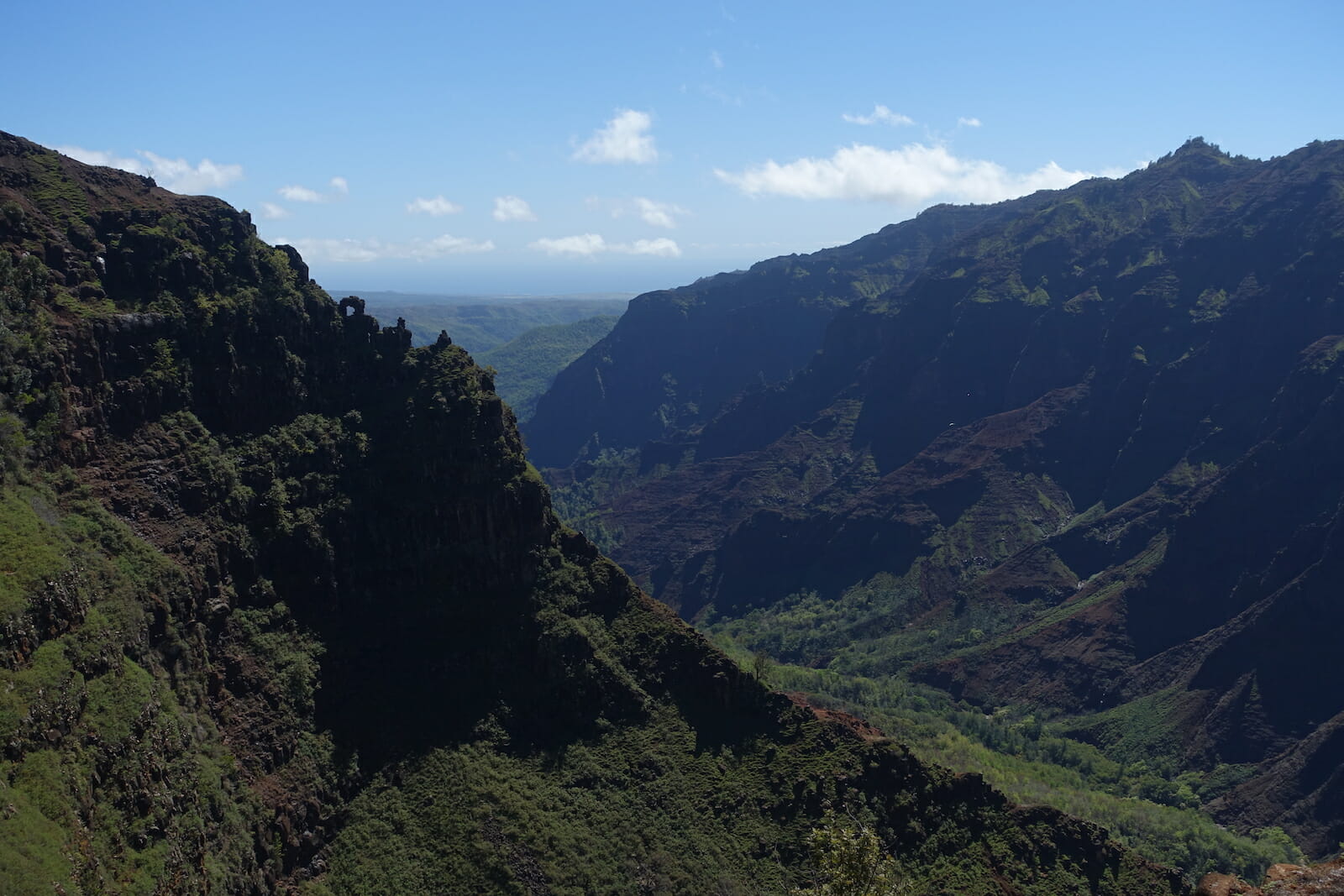 For Sunday, we headed to Waimea Canyon. When planning the trip, I remembered the contrast between the canyon and the surrounding forest, something that had delighted me as a child.