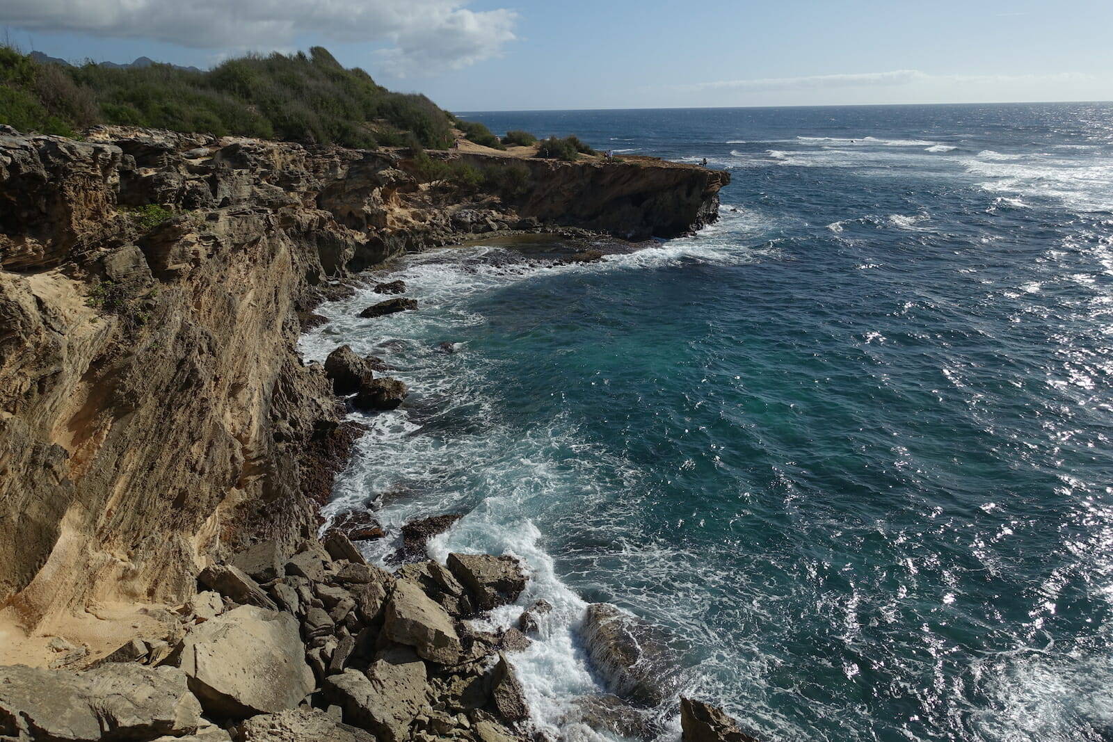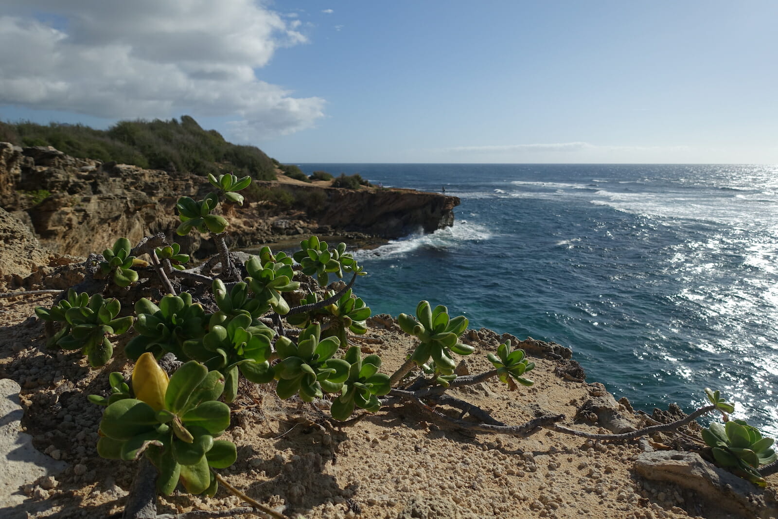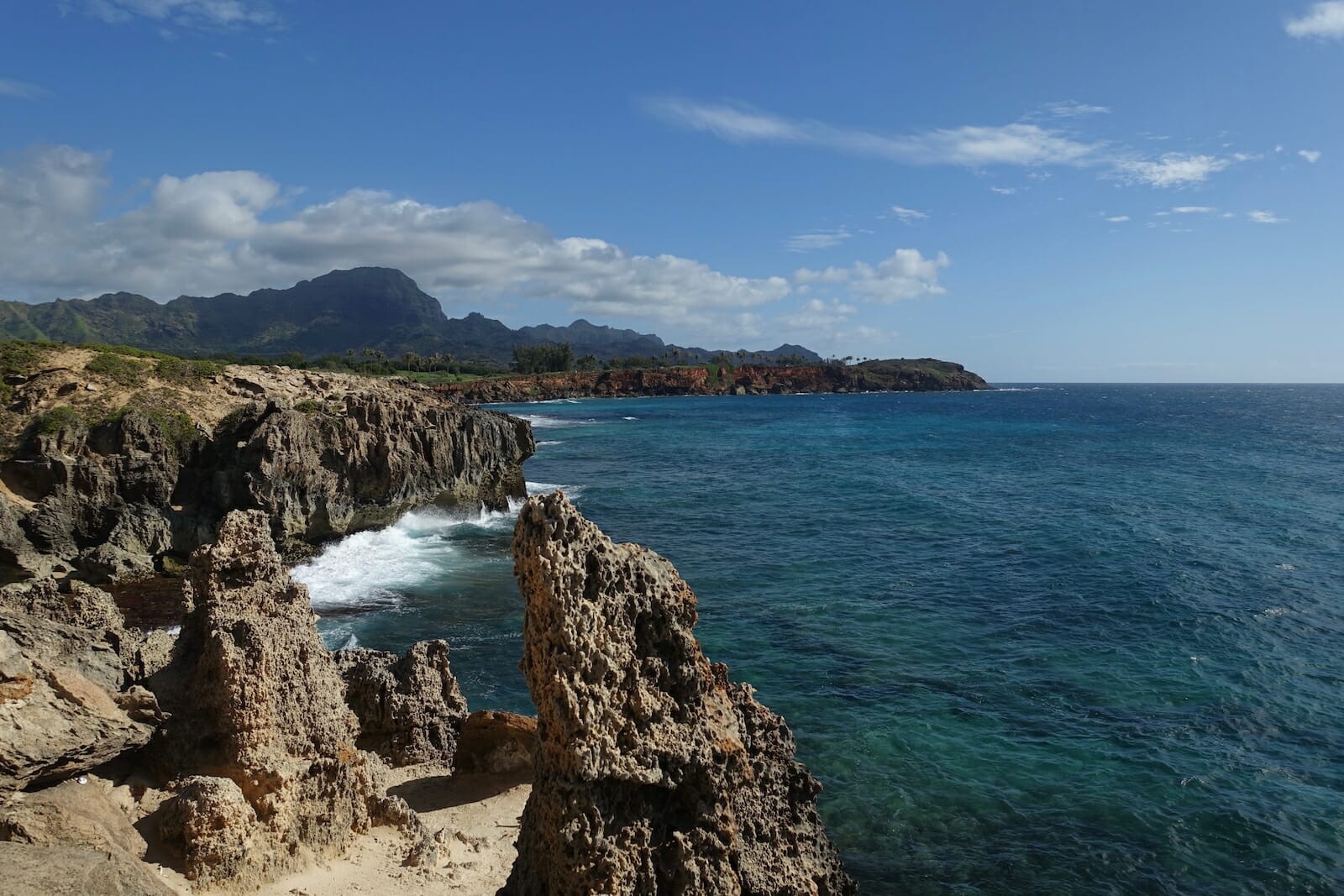 Here, we followed the coast east. The Maha’ulepu Heritage Trail climbs up cliffs from Shipwreck Beach and continues east. We followed it for maybe a mile along the sandy, limestone cliffs, taking in scenic views of Kauai’s southern coast.