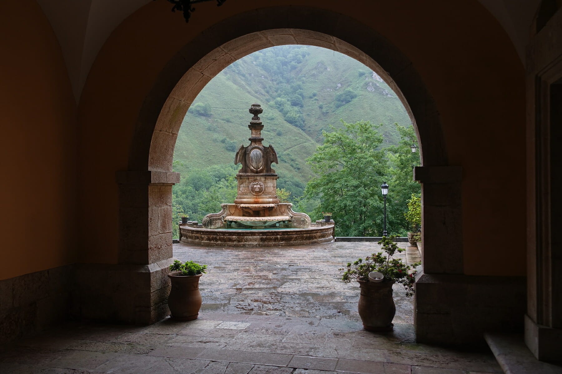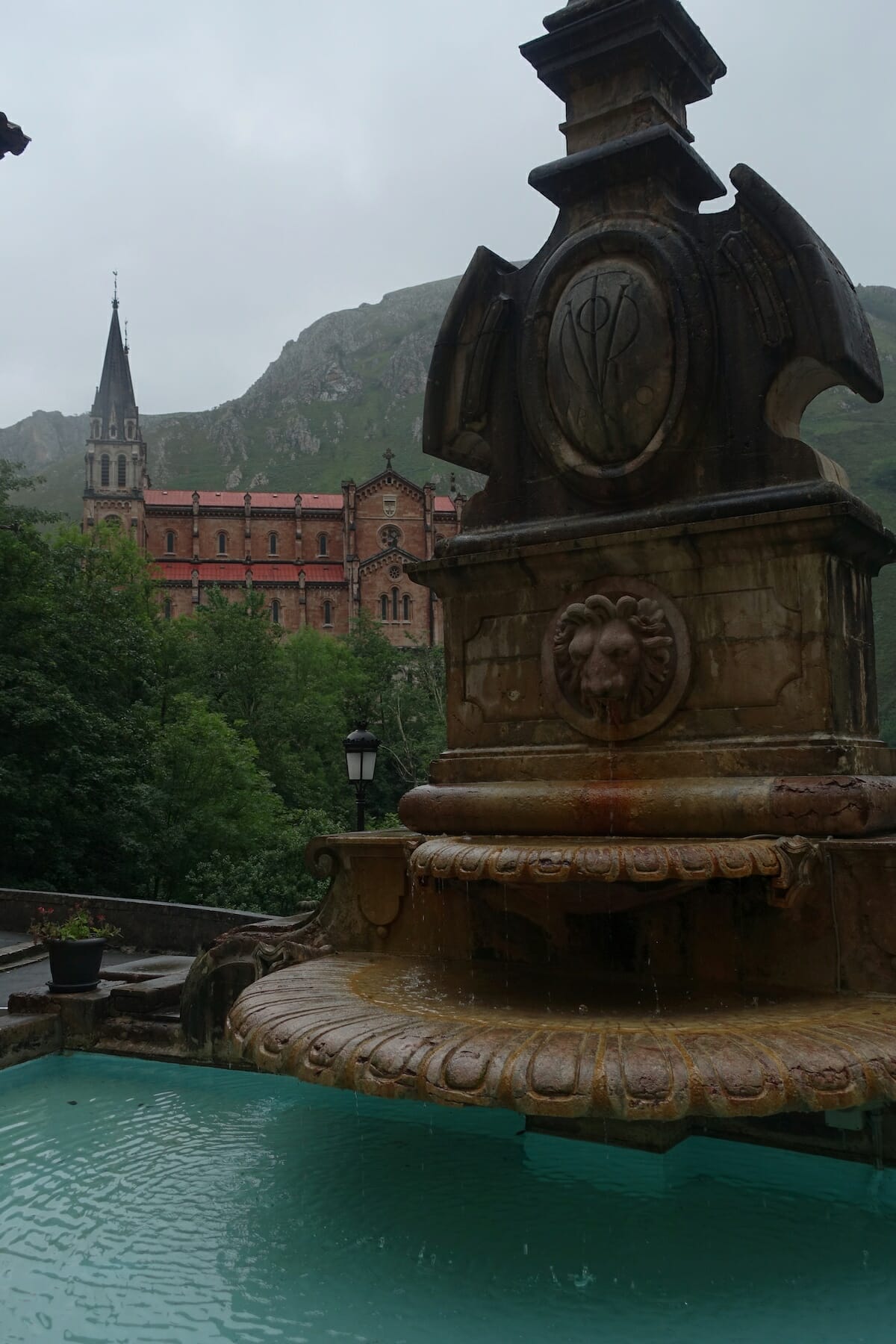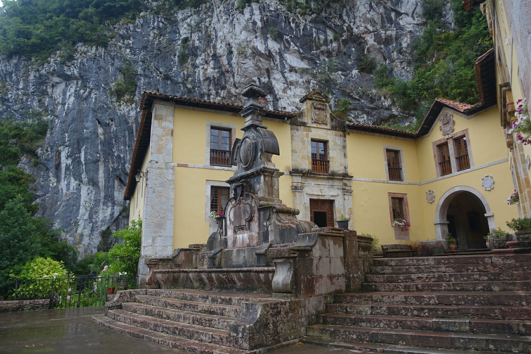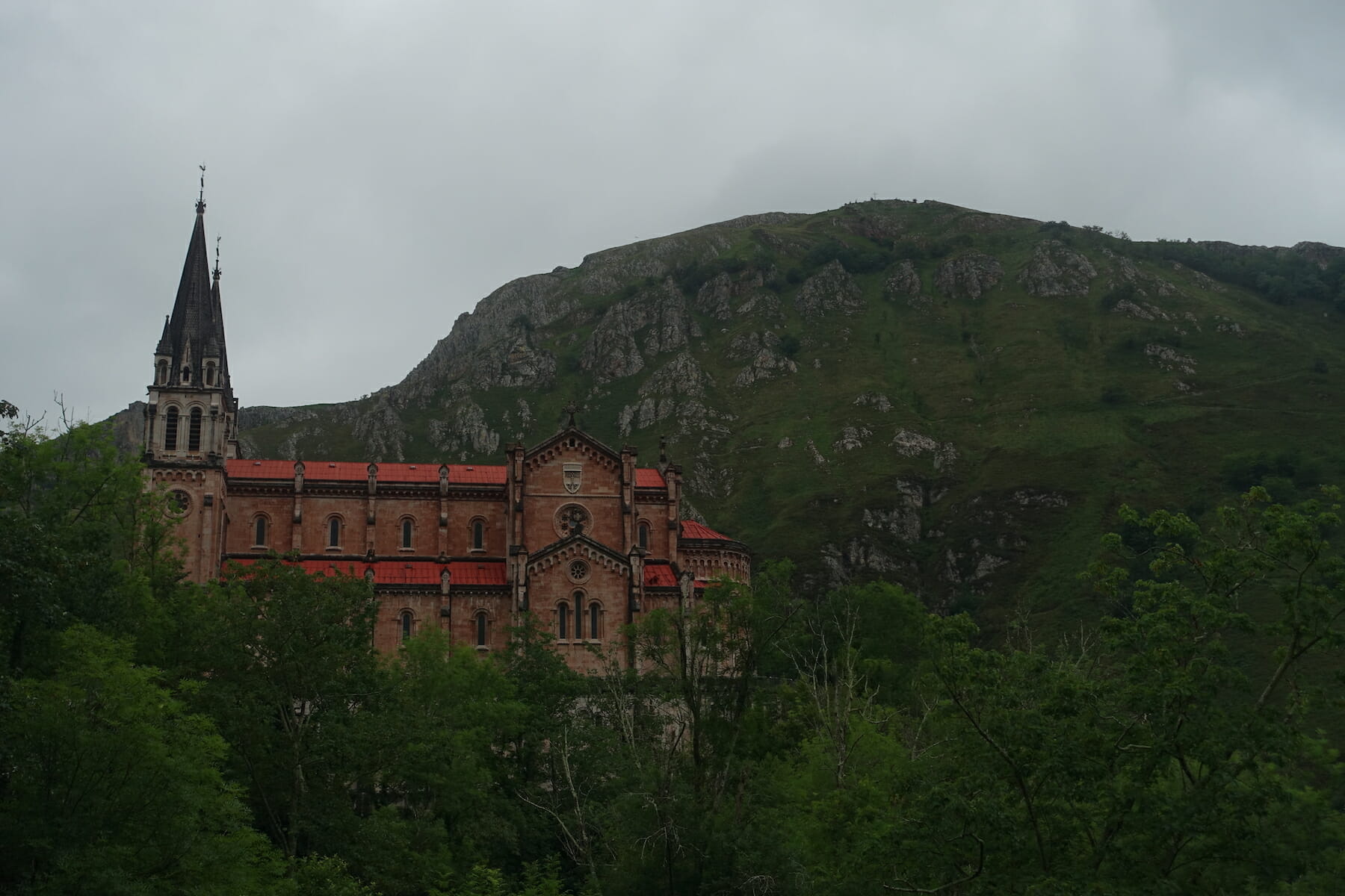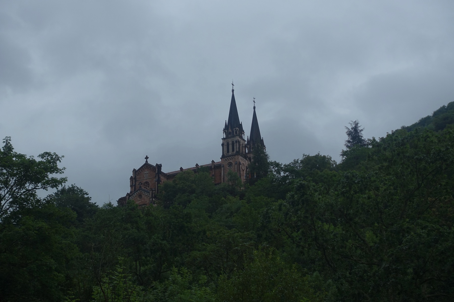 Instead, it rained steadily and the clouds hung low, offering limited views on the drive. Conditions had not improved by the time we reached Covadonga. We reevaluated our plans and decided to stop first at the historic town. Covadonga is famous as the site where Pelagius led Christian forces to the first victory of against the Islamic conquest, in either the summer of 718 or 722. This led to an independent principality that later became the Kingdom of Asturias.