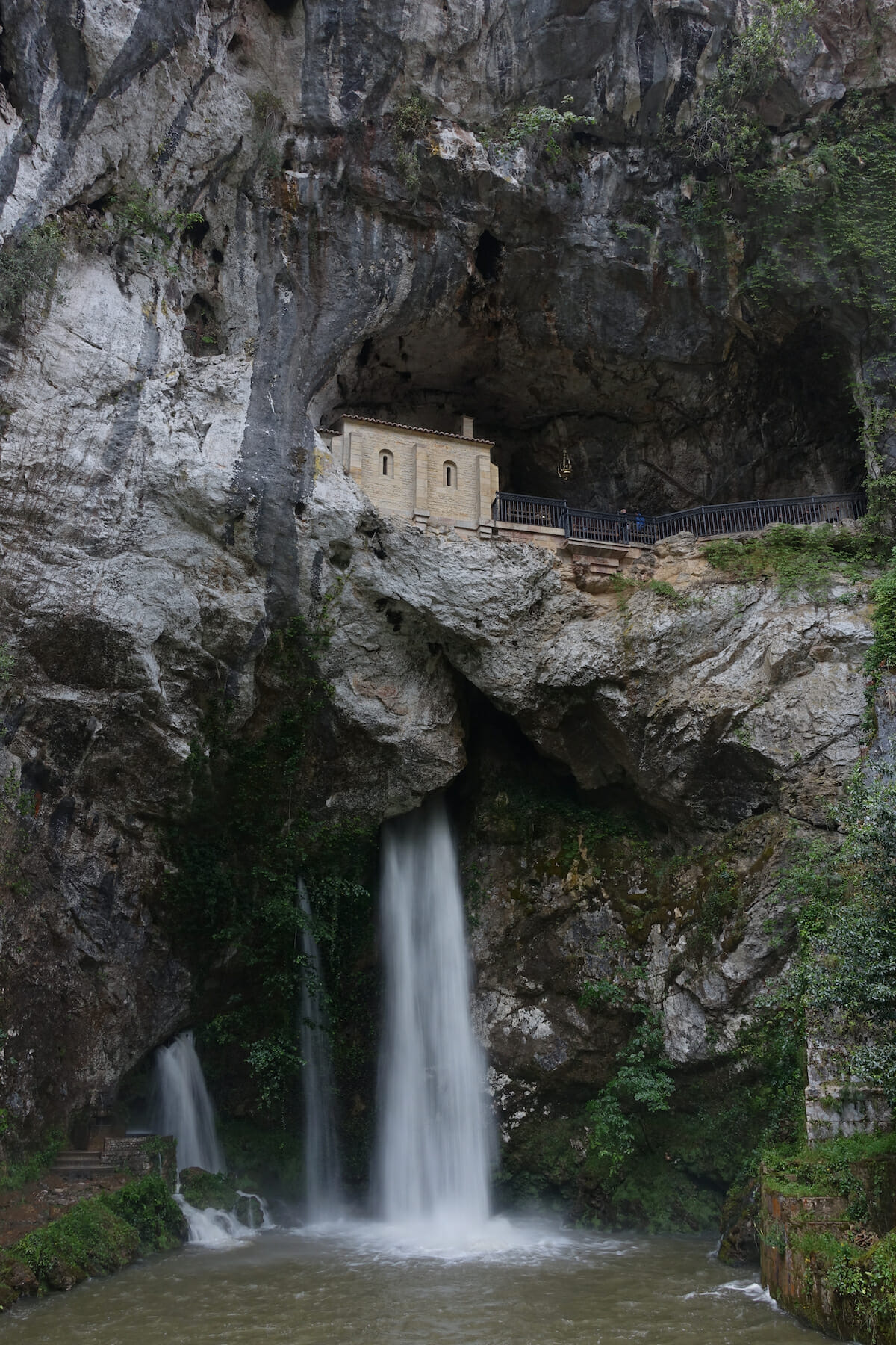 We first visited the Basilica of Santa María la Real de Covadonga, a pink limestone church built between 1877 and 1901. From there, we walked down to the Santa Cueva (Holy Cave). While it appears to have been a significant site of worship in prehistoric and Roman times, the cave features prominently in tradition about the Battle of Covadonga. The cave contains the tombs of Pelagius (first king of Asturias) and Alfonso I (third king of Asturias). It also features a lovely waterfall.