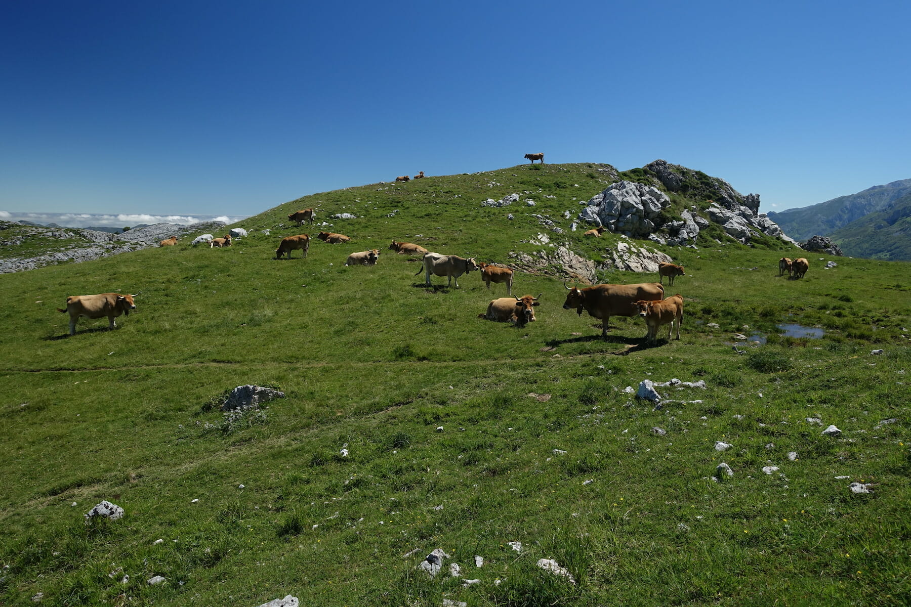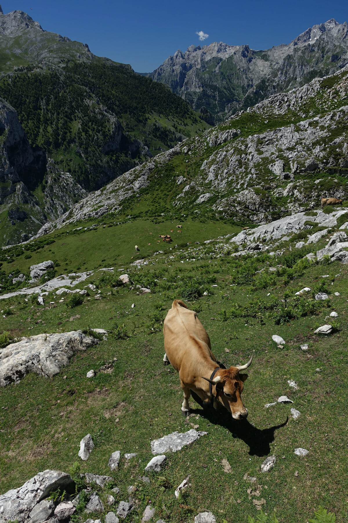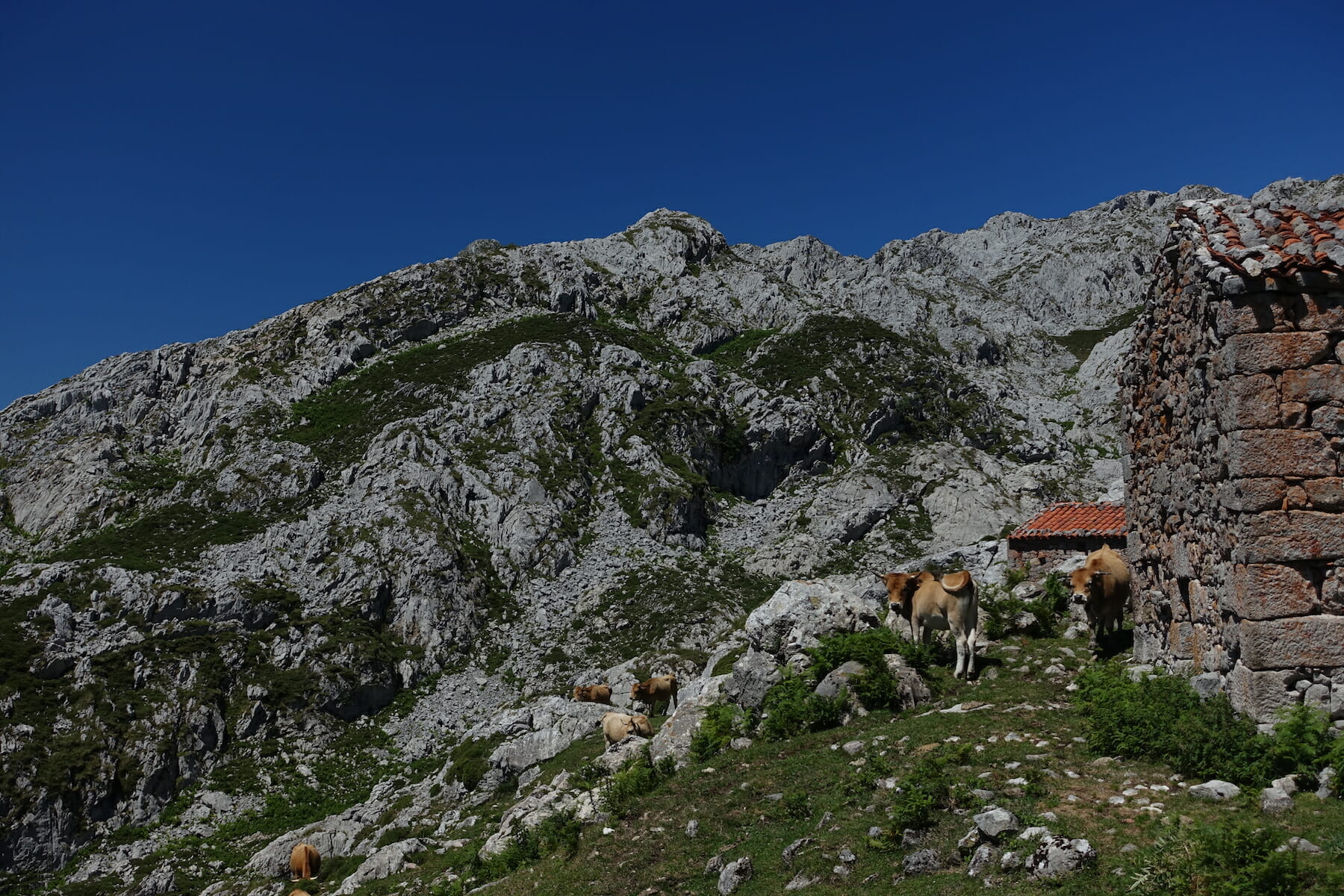 At the top of the pass, we reached Amuesa, a village and cow pasture 2300′ above Bulnes and nearly 4000′ above the Cares Gorge.