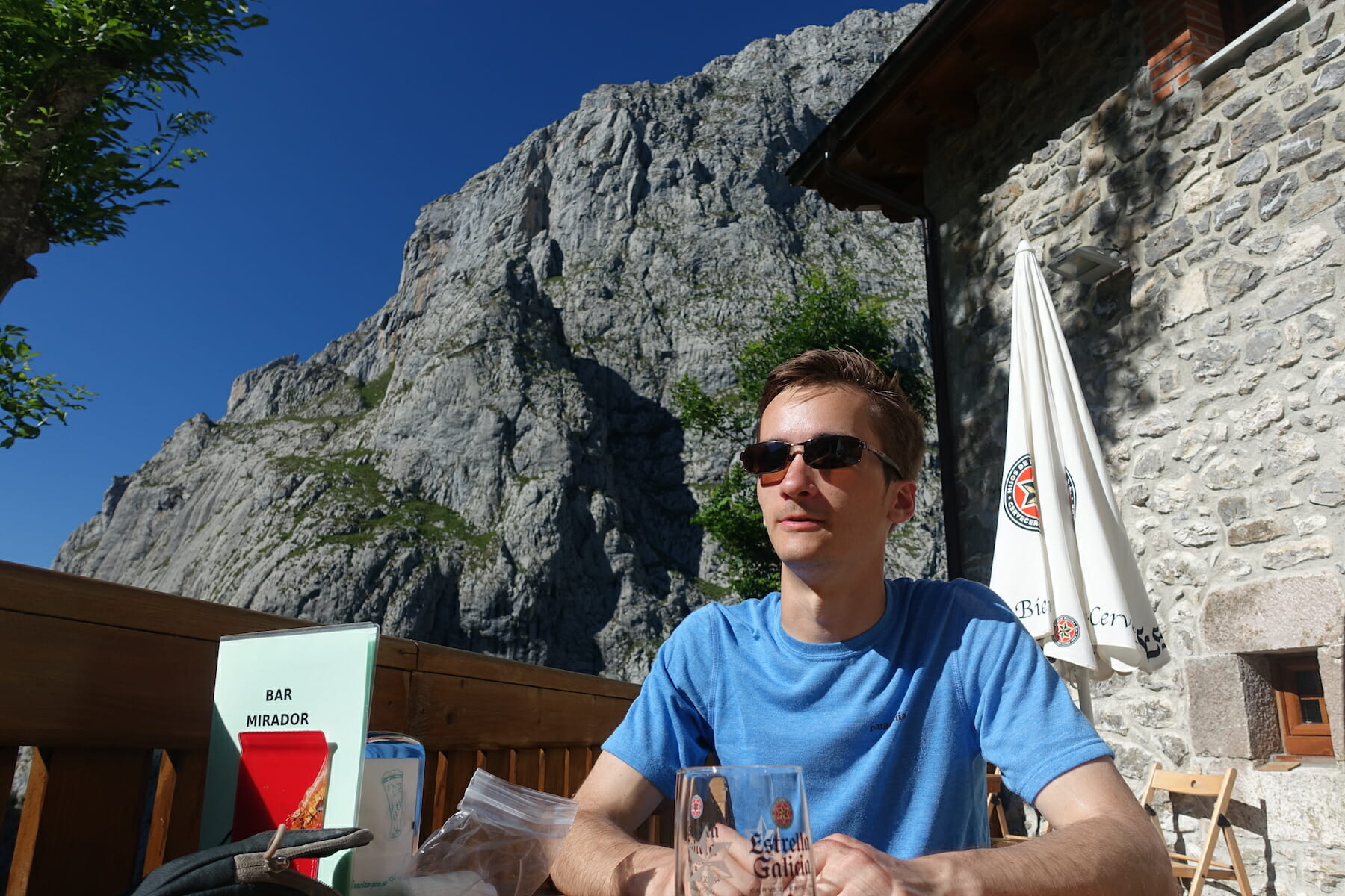 Once that was sorted, we checked in to the hotel, Casa Maru (Booking.com). This was a splurge for us, but it had perfect reviews, was in a great location for our hikes, and had views back up to Naranjo de Bulnes. The owners, Jhousy & Alberto, made us a welcome cocktail and helped us get settled.