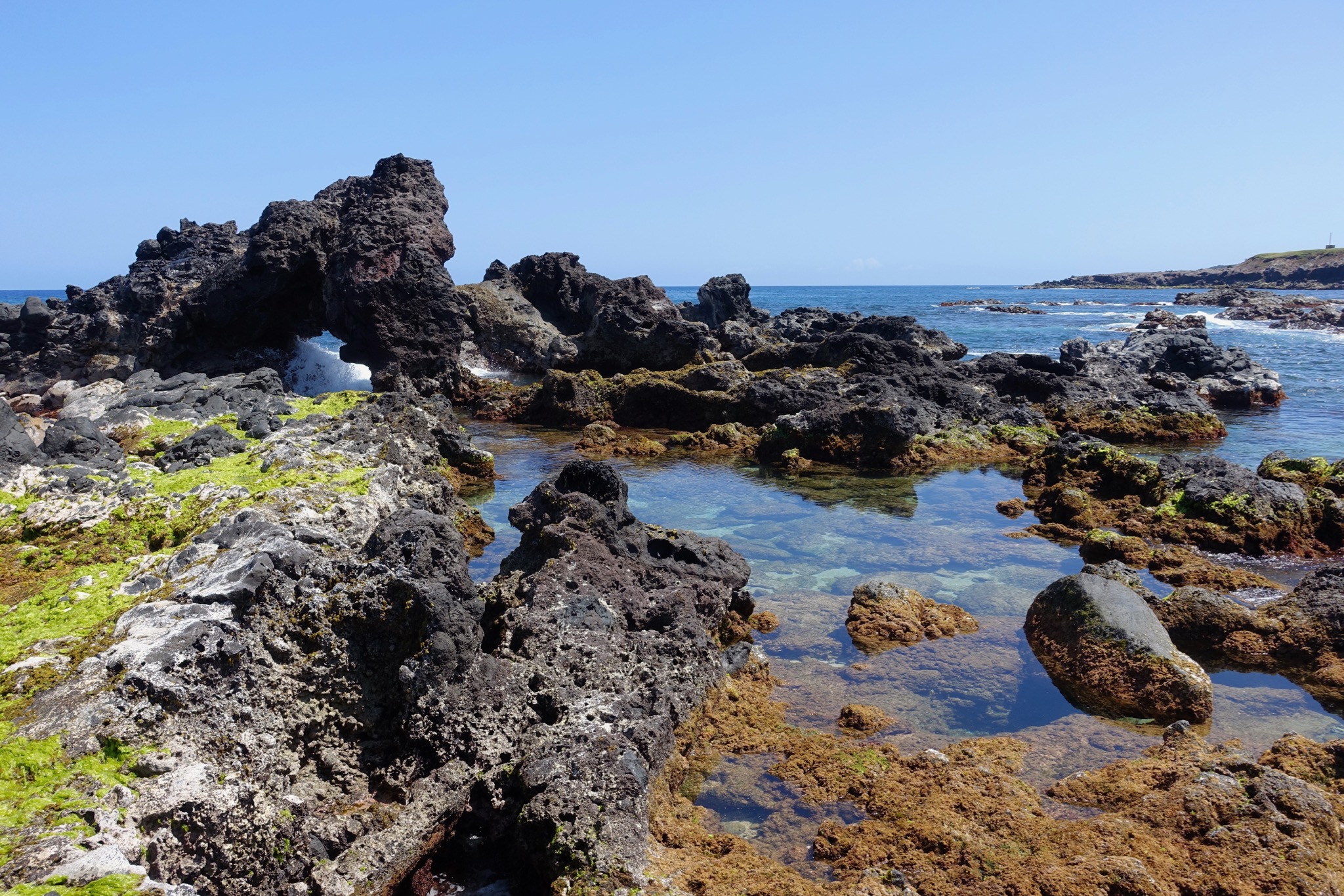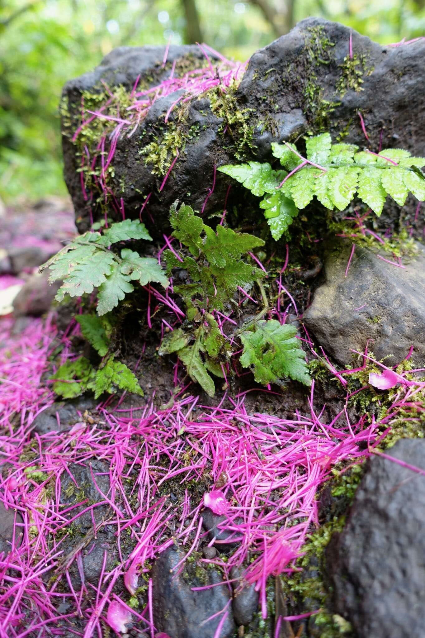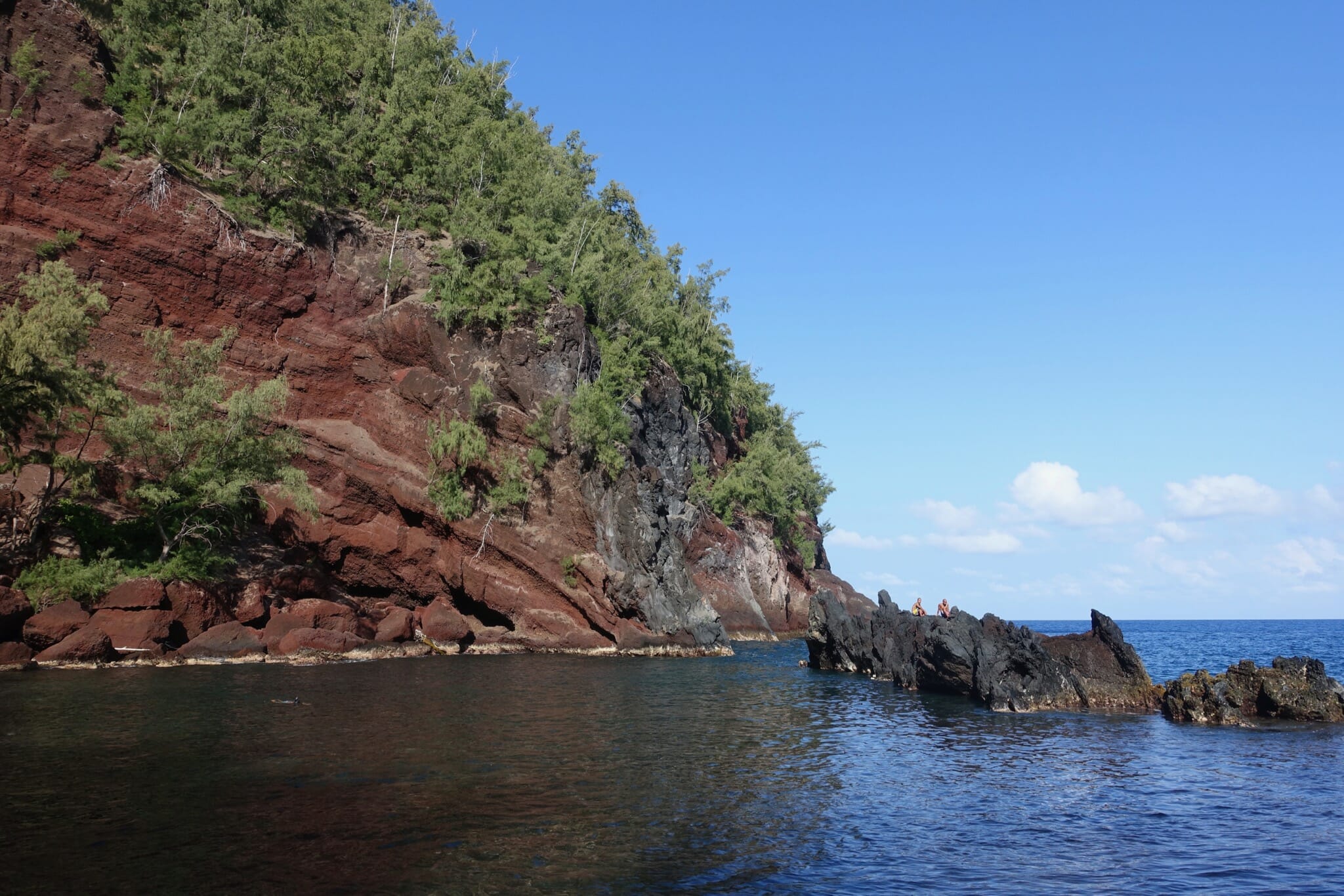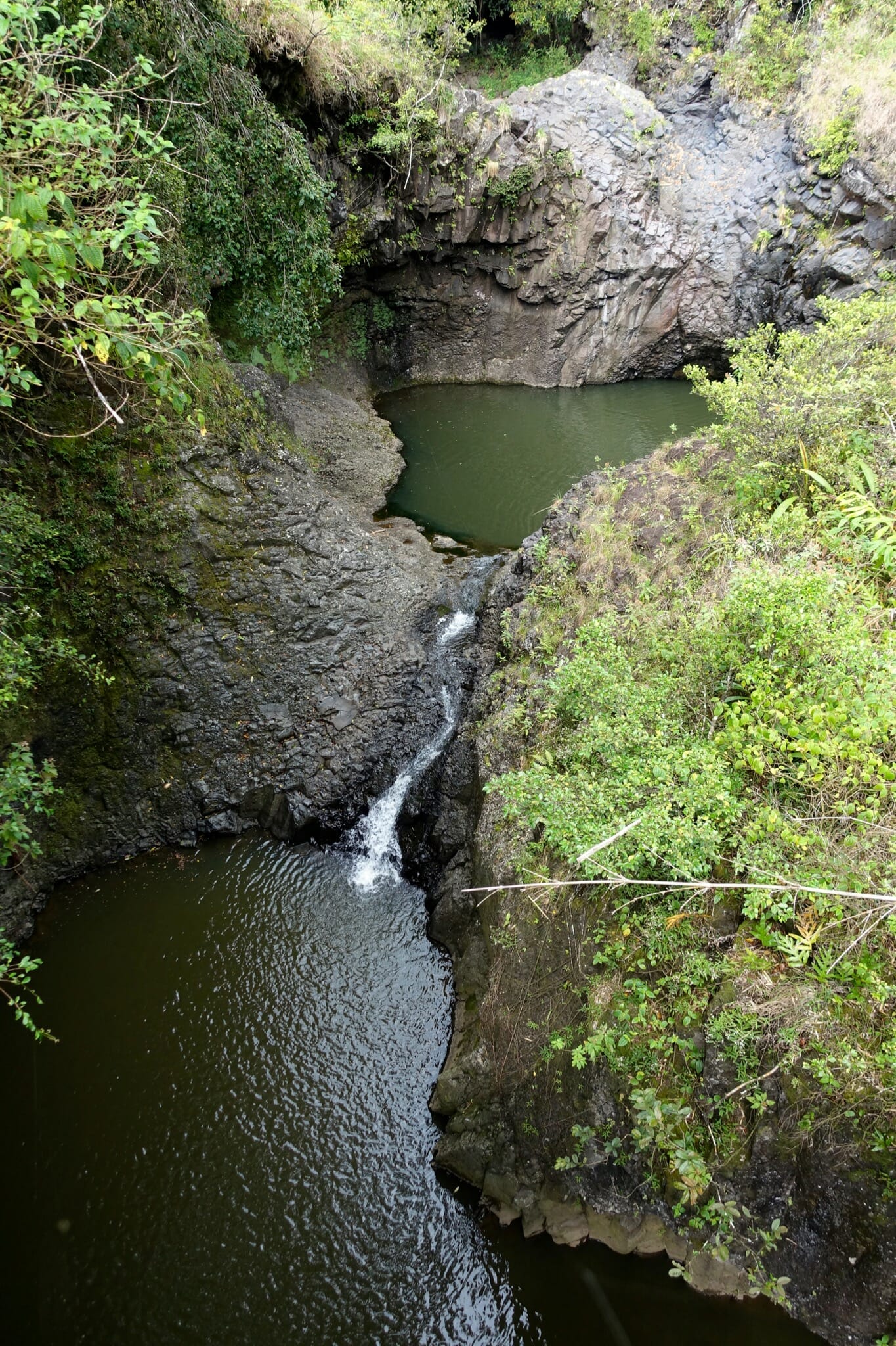 After we returned to the parking lot, we continued down to Kuloa Point and the mouth of ‘Ohe’o Gulch. We enjoyed lunch on the black cliffs of the coast while waves crashed below. After lunch, we returned via a series of pools.