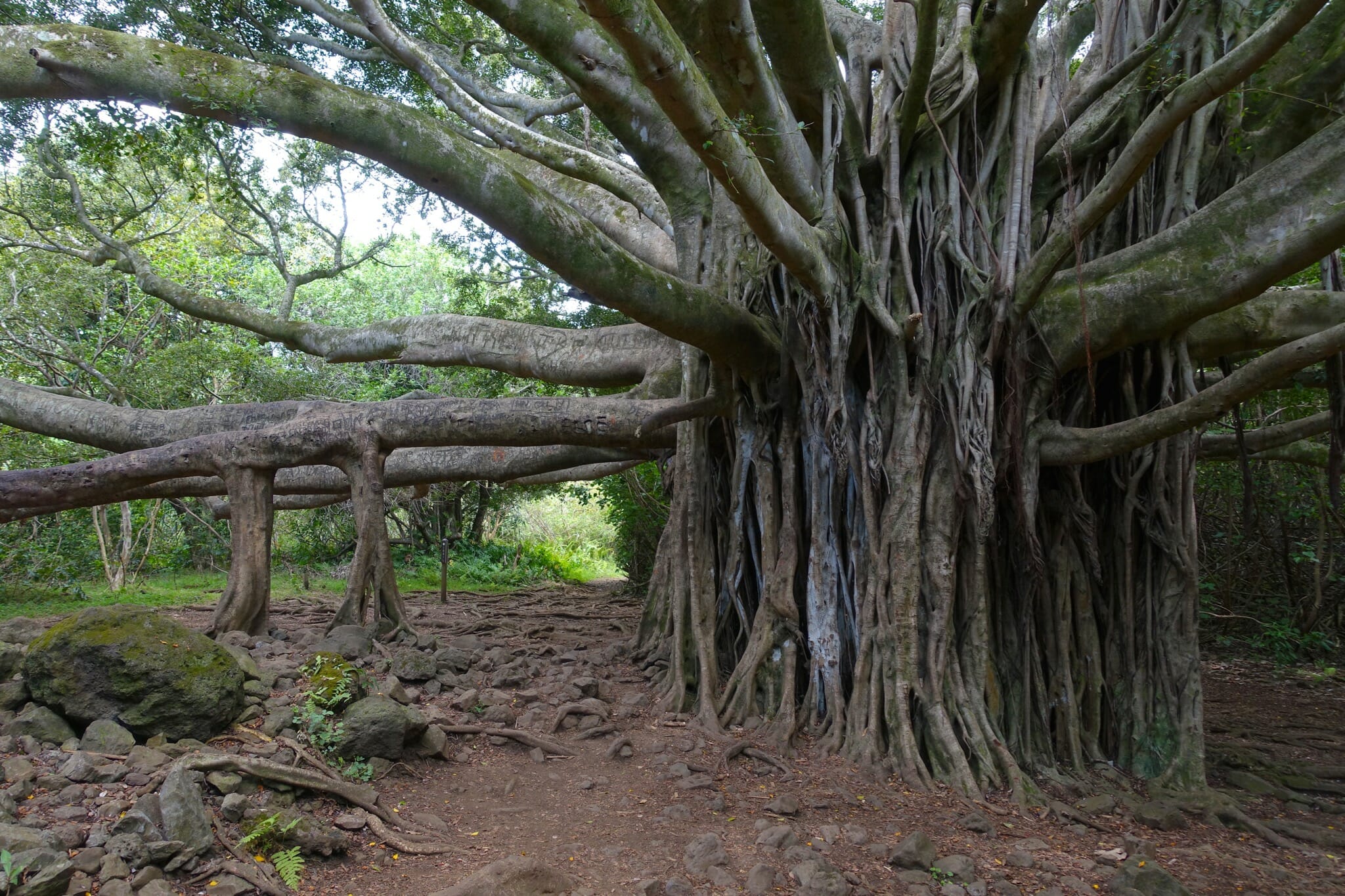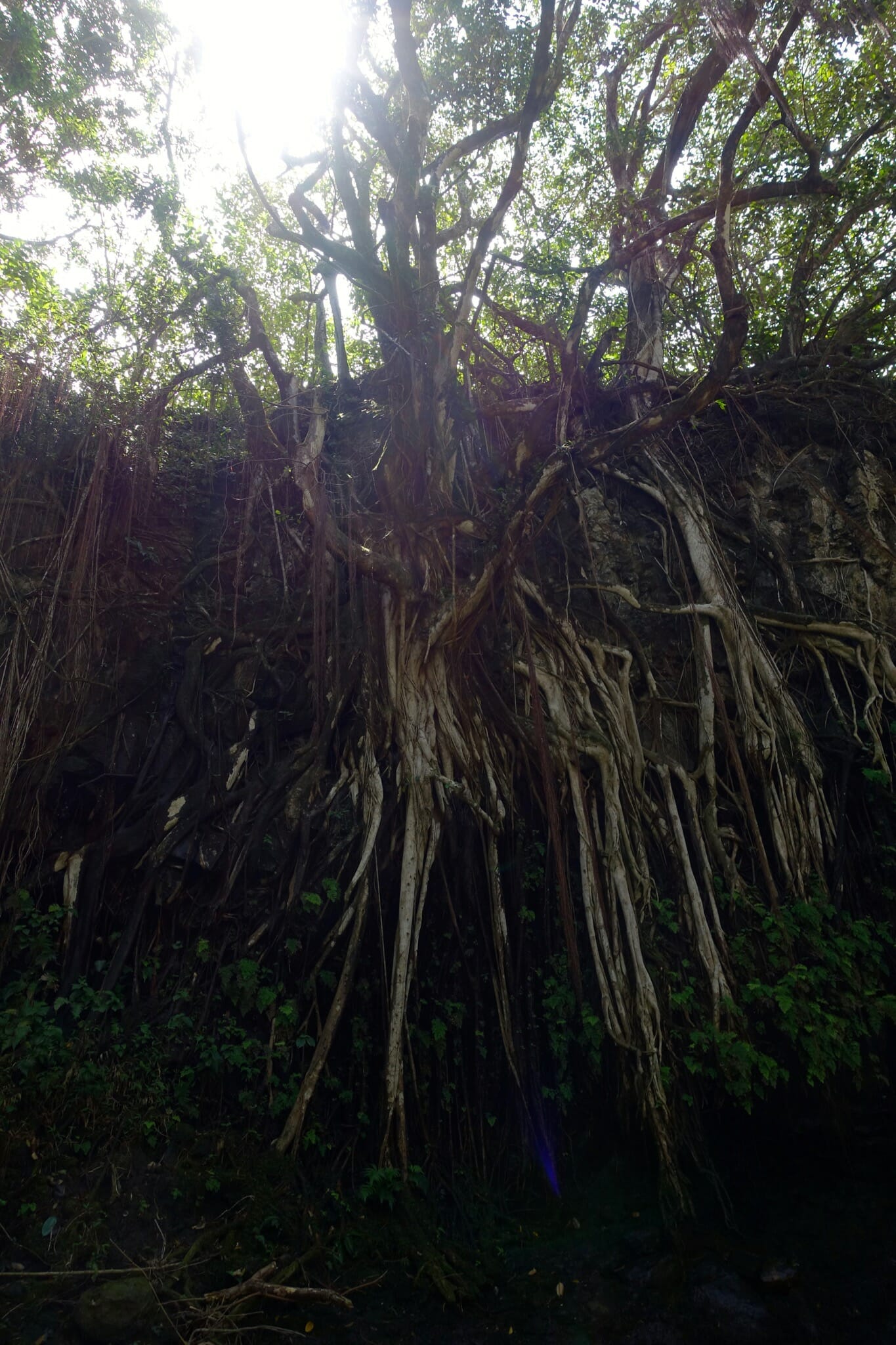We continued along the road to Hana, stopping next at mile two for Twin Falls. A short walk through Banyan trees brought us to the falls. They were crowded but pretty.