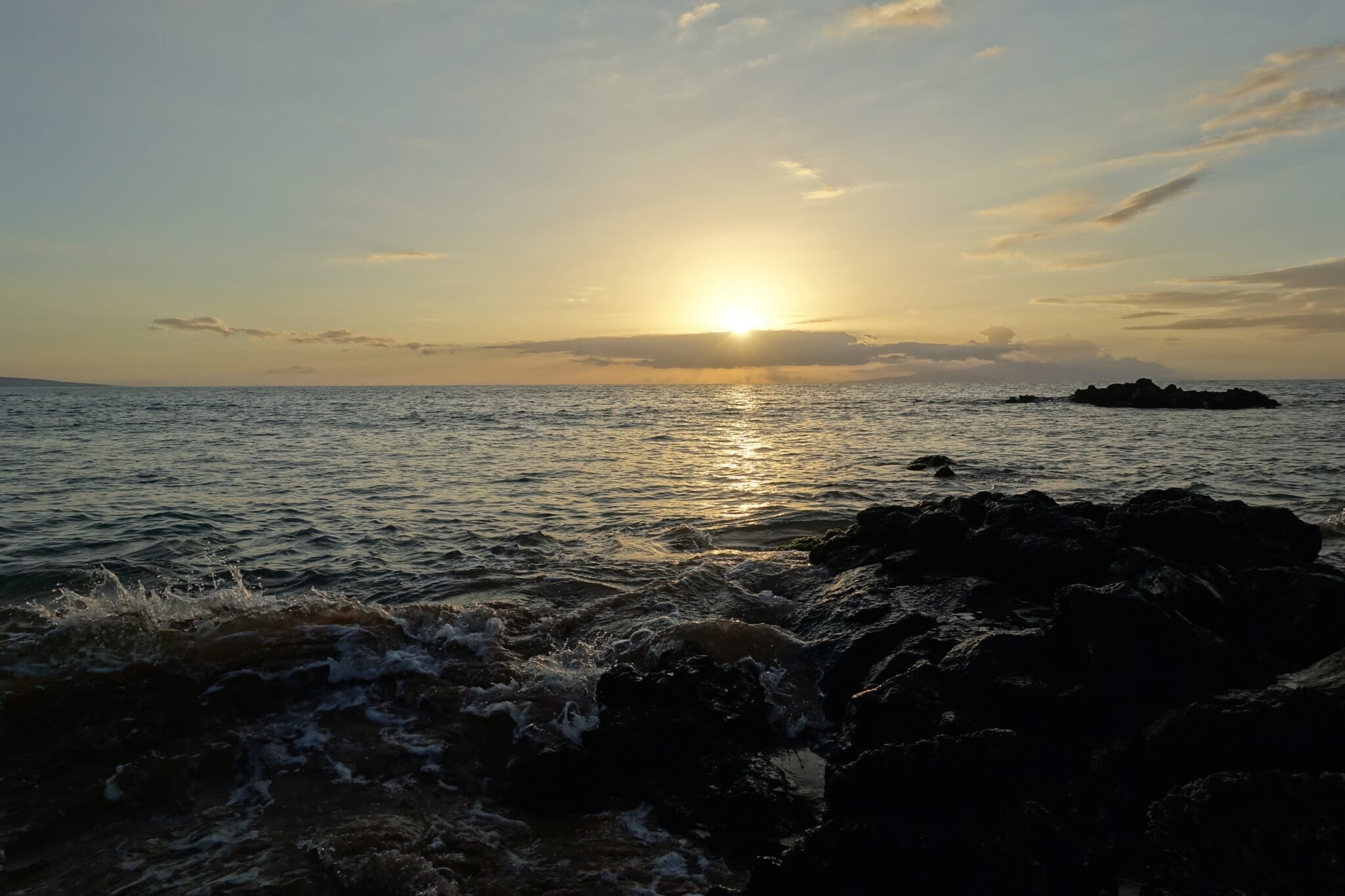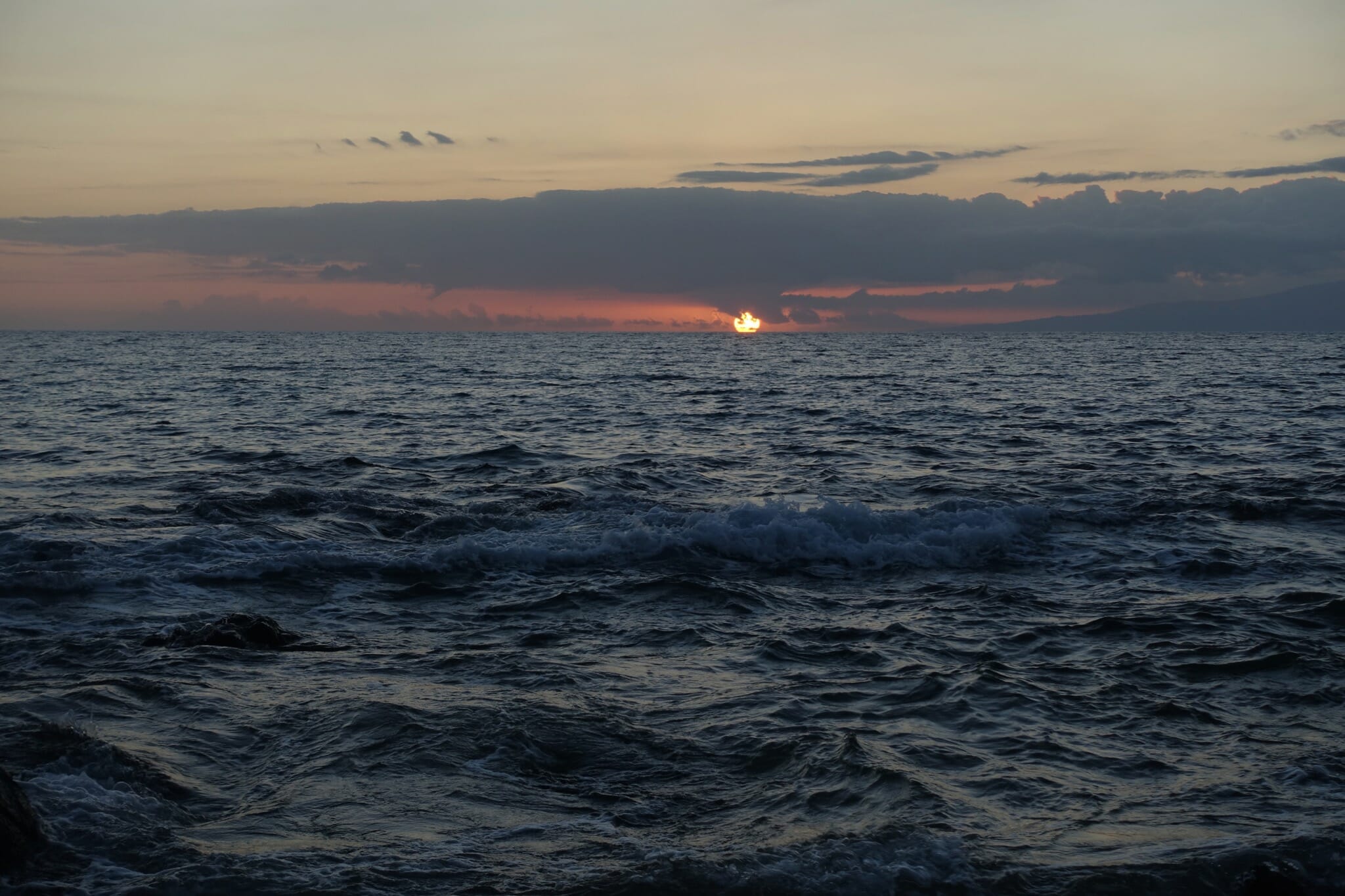 By this point, it was nearly sunset. We pulled off at Papawai point to watch it. To our surprise and delight, we could see several whales breaching and slapping their tales in the waters between Maui and Lanai.