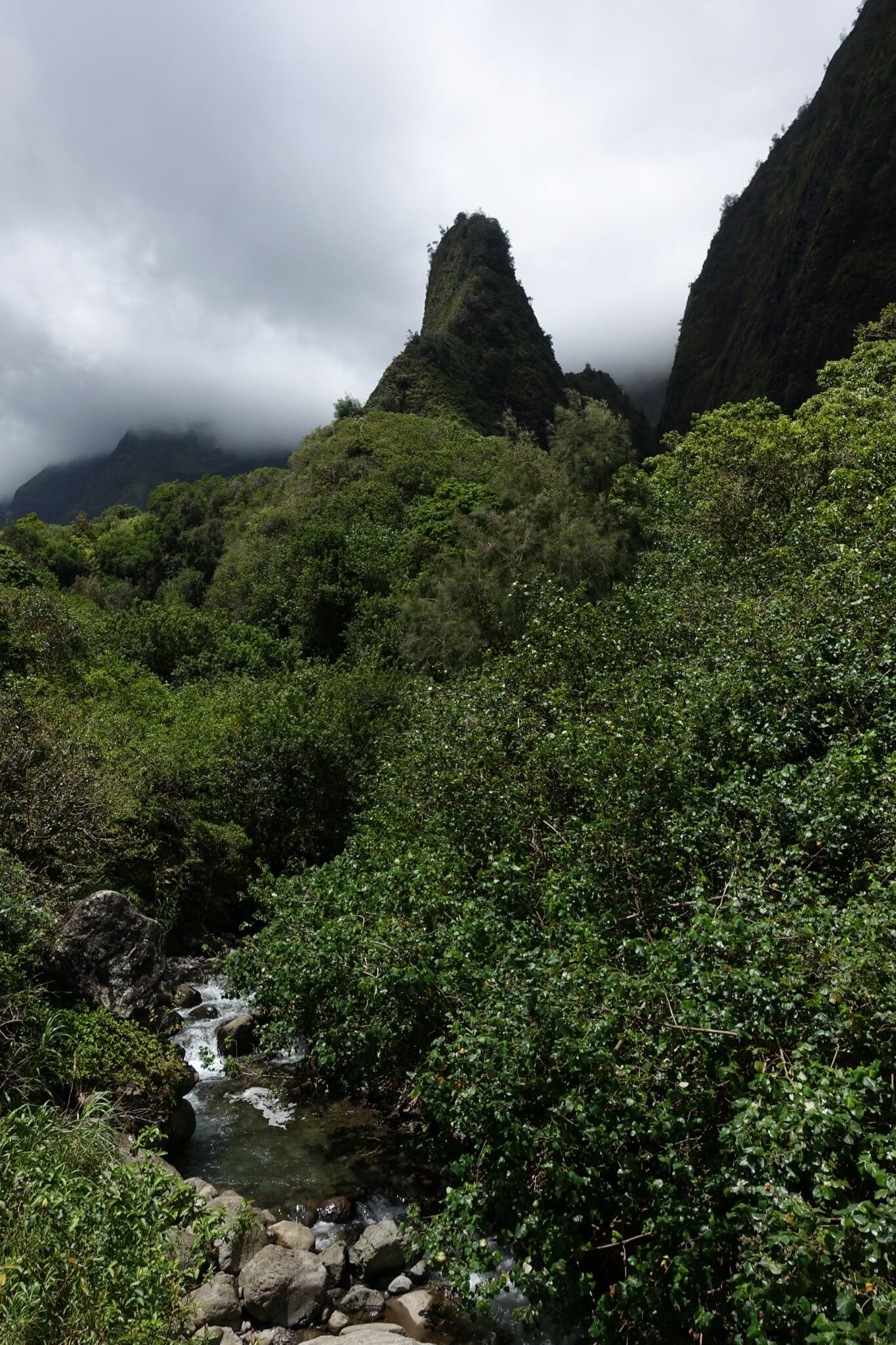 With our remaining time, we constructed a varied itinerary. We first stopped at ʻĪao Valley State Monument to see the iconic ‘Īao Needle (Kuka‘emoku). The park was crowded with busloads of tourists — the most crowded spot we visited on the island – but we were glad to see the view.