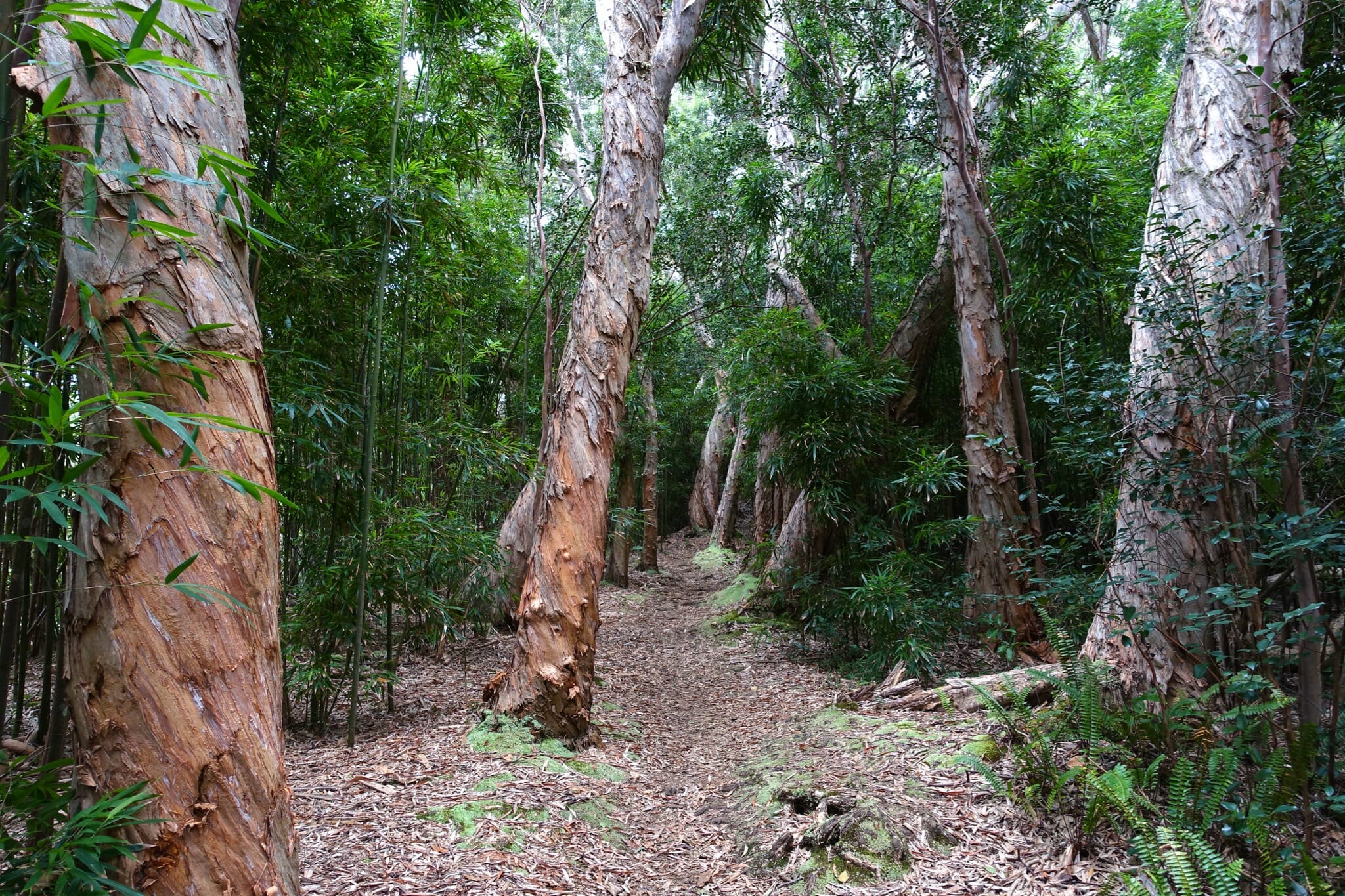 After returning to the car, we next stopped at the Waikamoi Nature Trail. The leaf-covered trail climbs through forest and bamboo. We never reached views along the trail, but we enjoyed the forest, spiny-backed orb weavers (spiders), and assorted flowers.