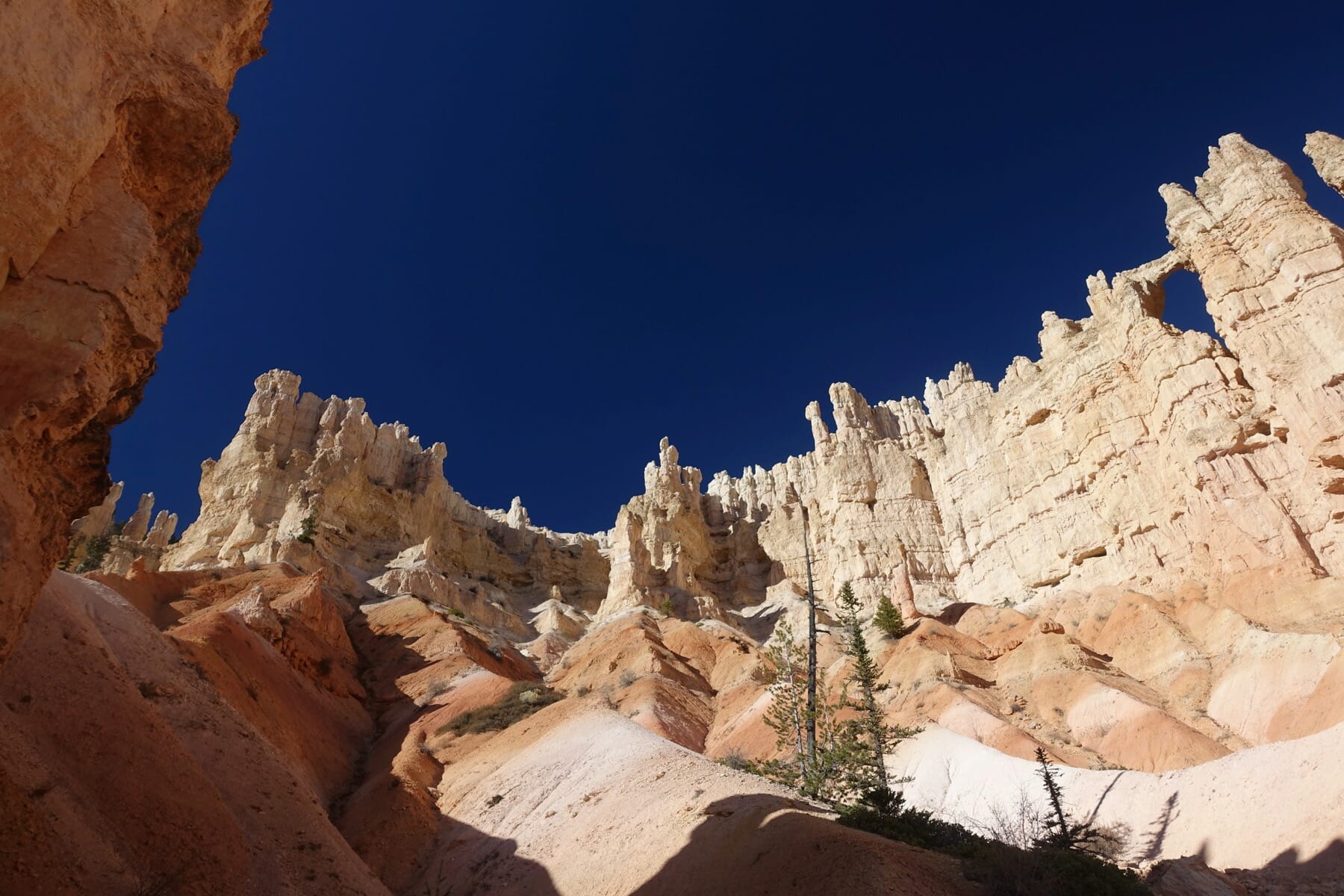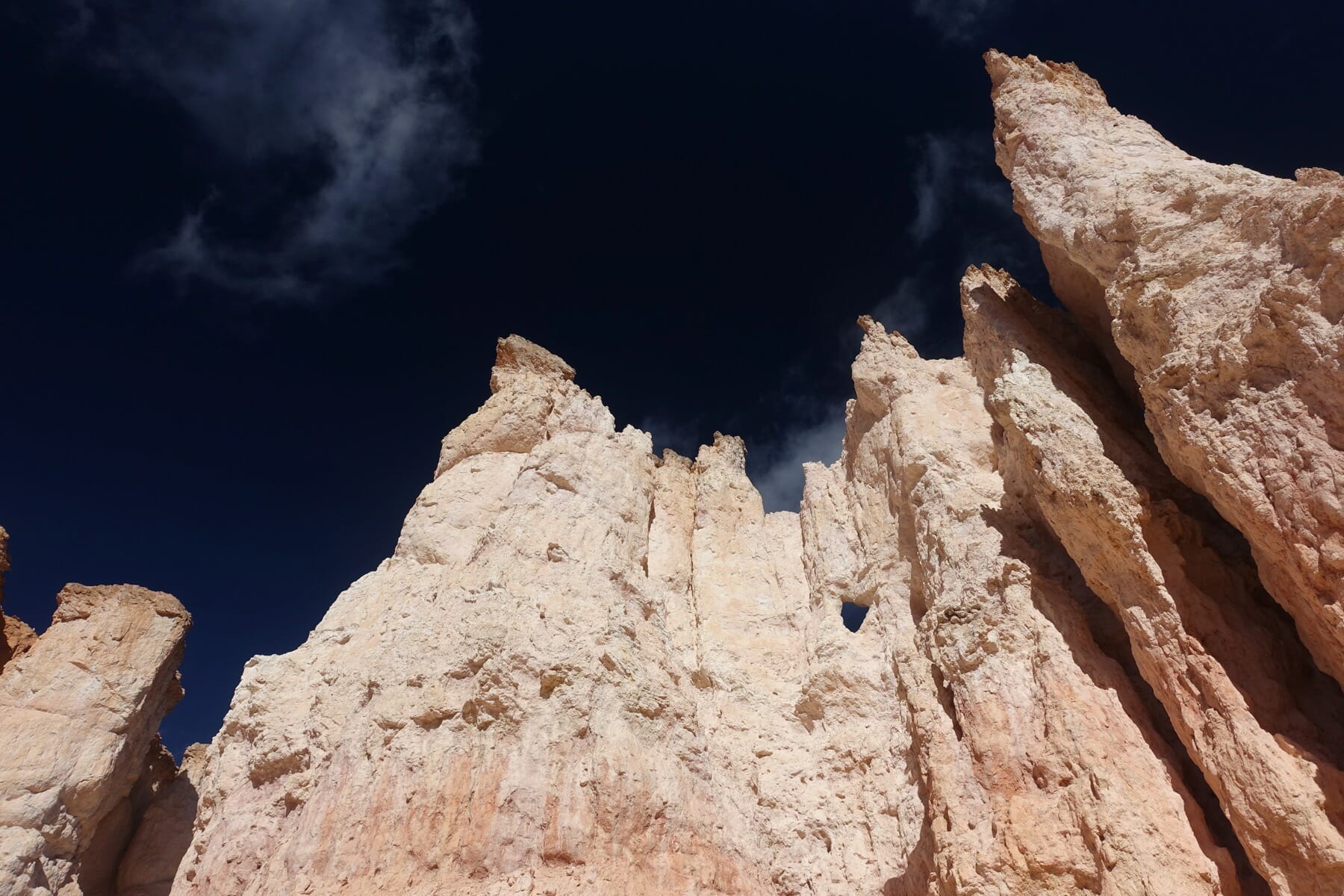 As the name implies, the Peekaboo Loop winds its way in and out of the rock. At times, we looked out over the hoodoos to the east. At other times — especially in the return part of the loop — we were dwarfed by hoodoo that towered above us in the amphitheater wall.