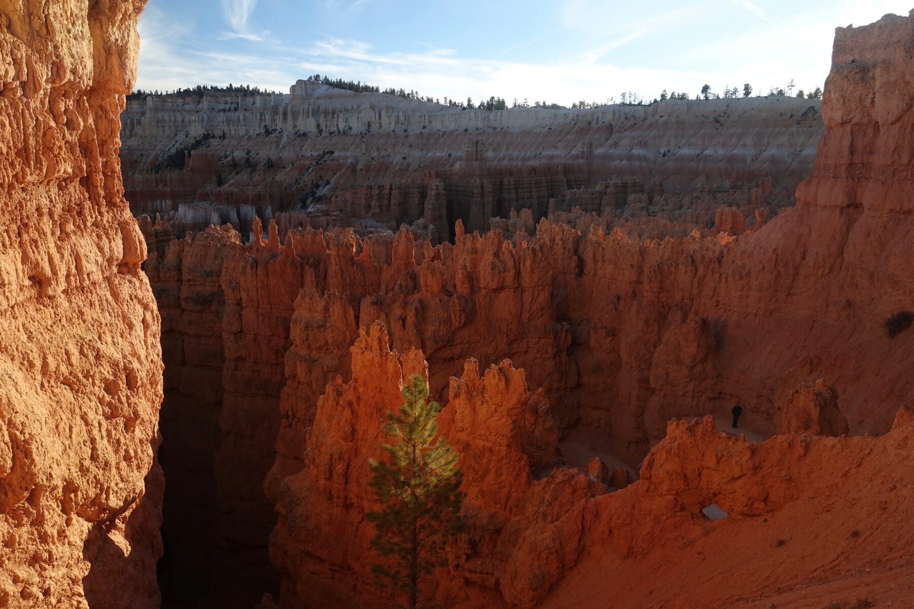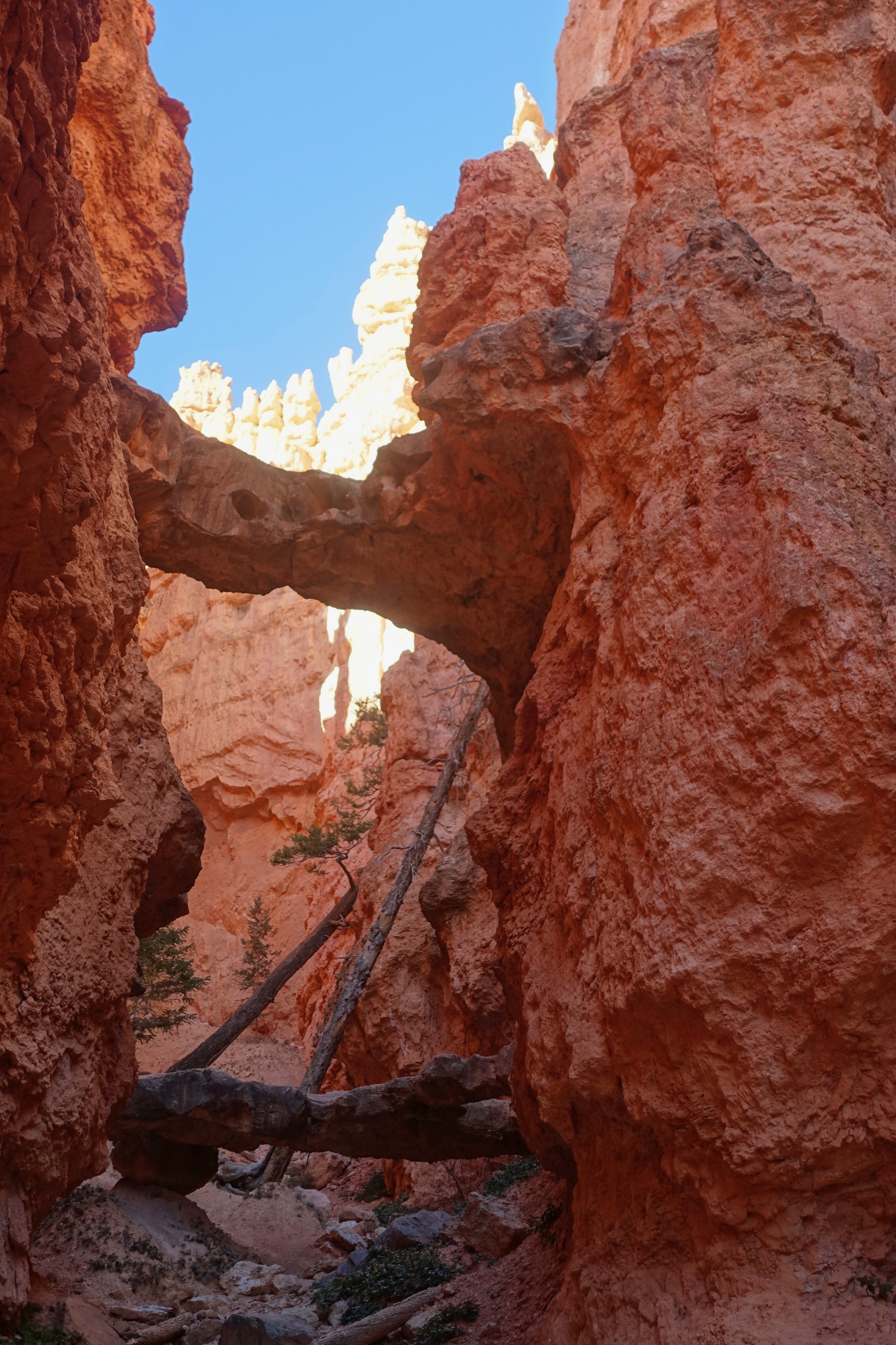 With plenty of time left in the day, we also went back to Sunset Point and the start of the Navajo Loop Trail. We followed the trail down to Two Bridges, completing the portion of the trail we had missed the previous day. This section of the trail — the orange canyon walls, the tall trees — was gorgeous in the late afternoon light.