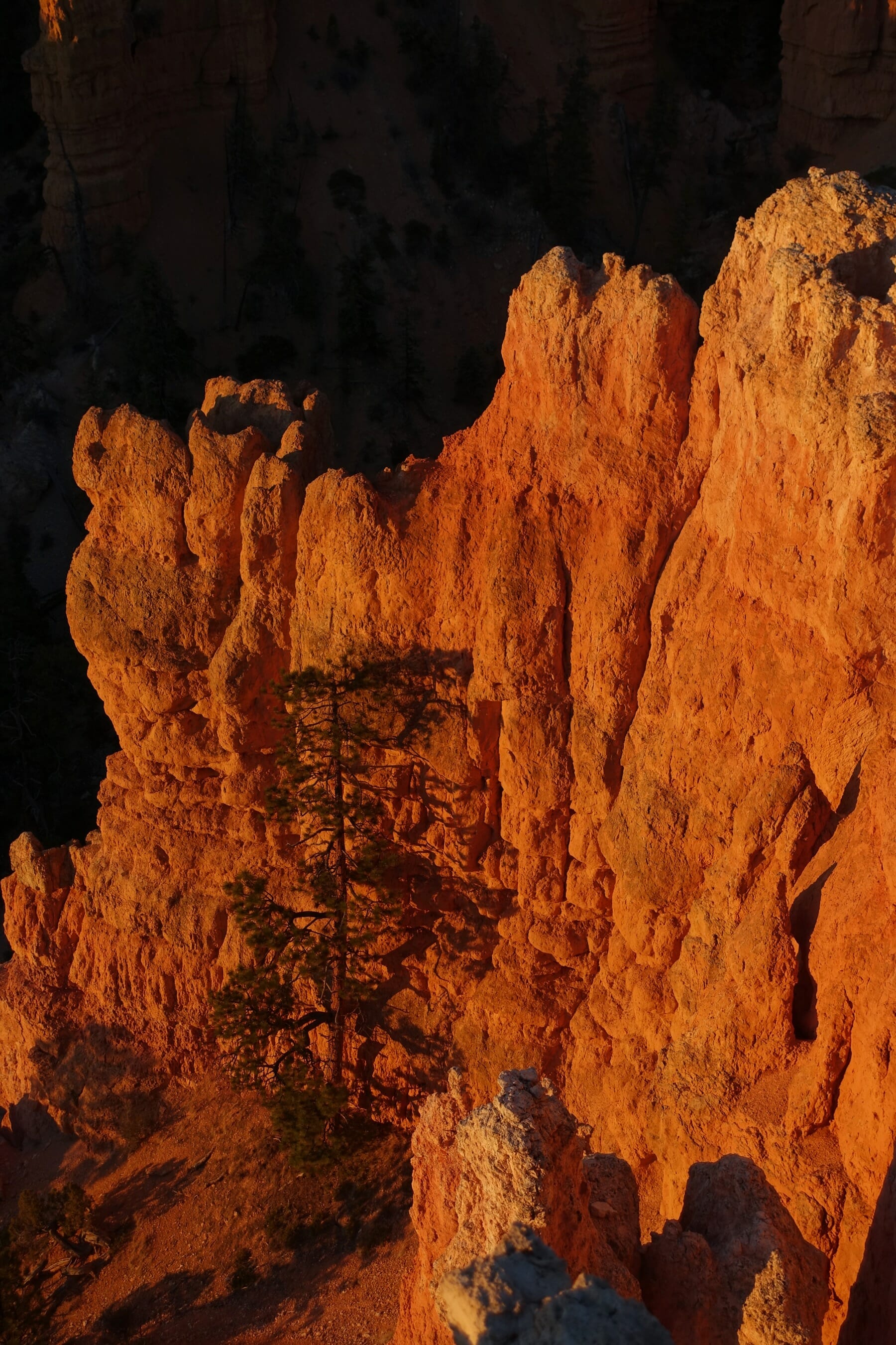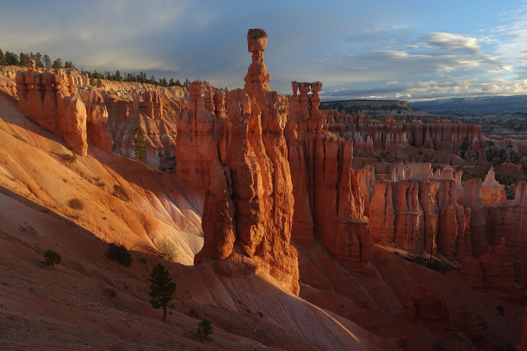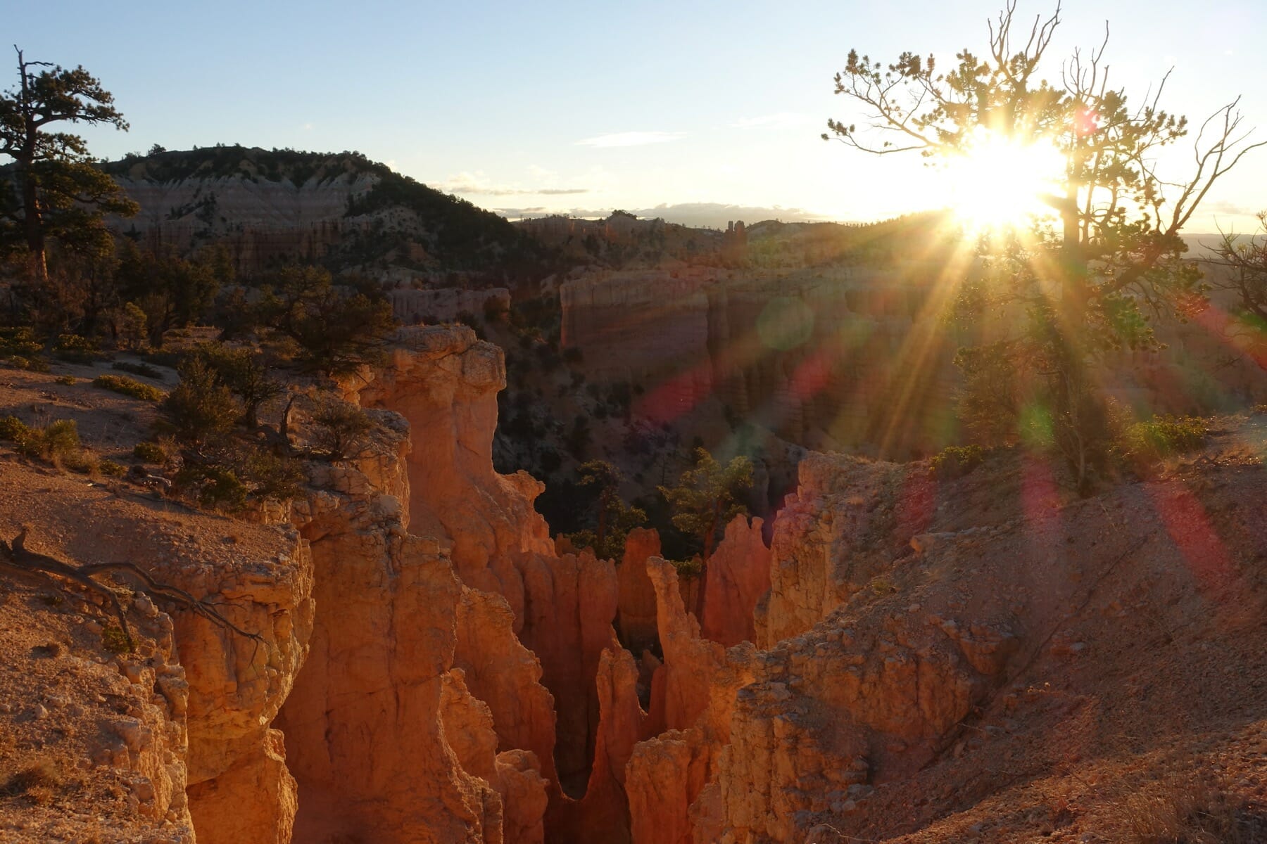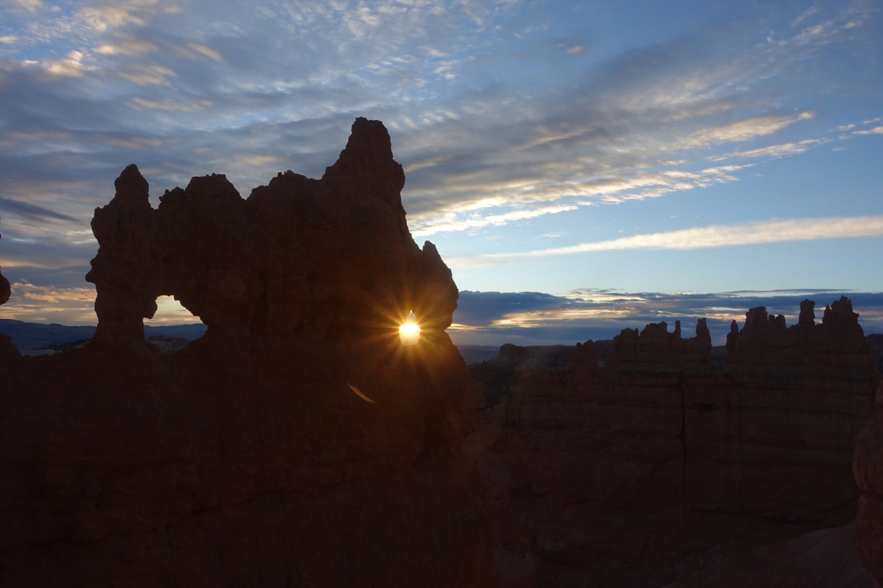 I woke up the second day feeling no better, and I had managed to get Kyle sick as well. Despite this, we stayed with our plan of an early start. After breakfast, we drove to Sunset Point, arriving in time for sunrise. From just a couple of hundred yards down the trail, we watched the sun rise through a window in a hoodoo. We then shifted slightly in time to see Thor’s Hammer and the entire amphitheater light up an intense, golden orange as the first light of the day reached them.