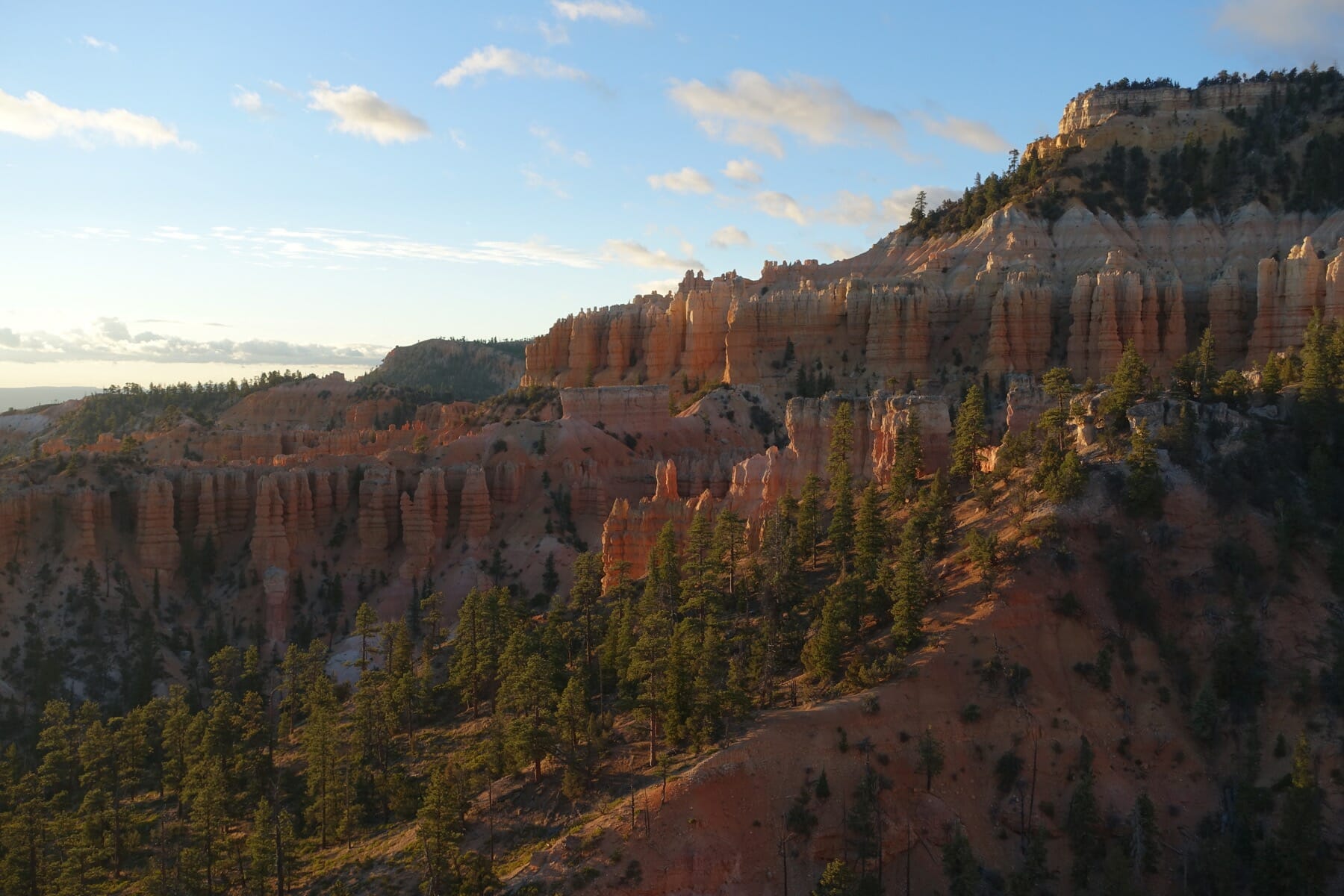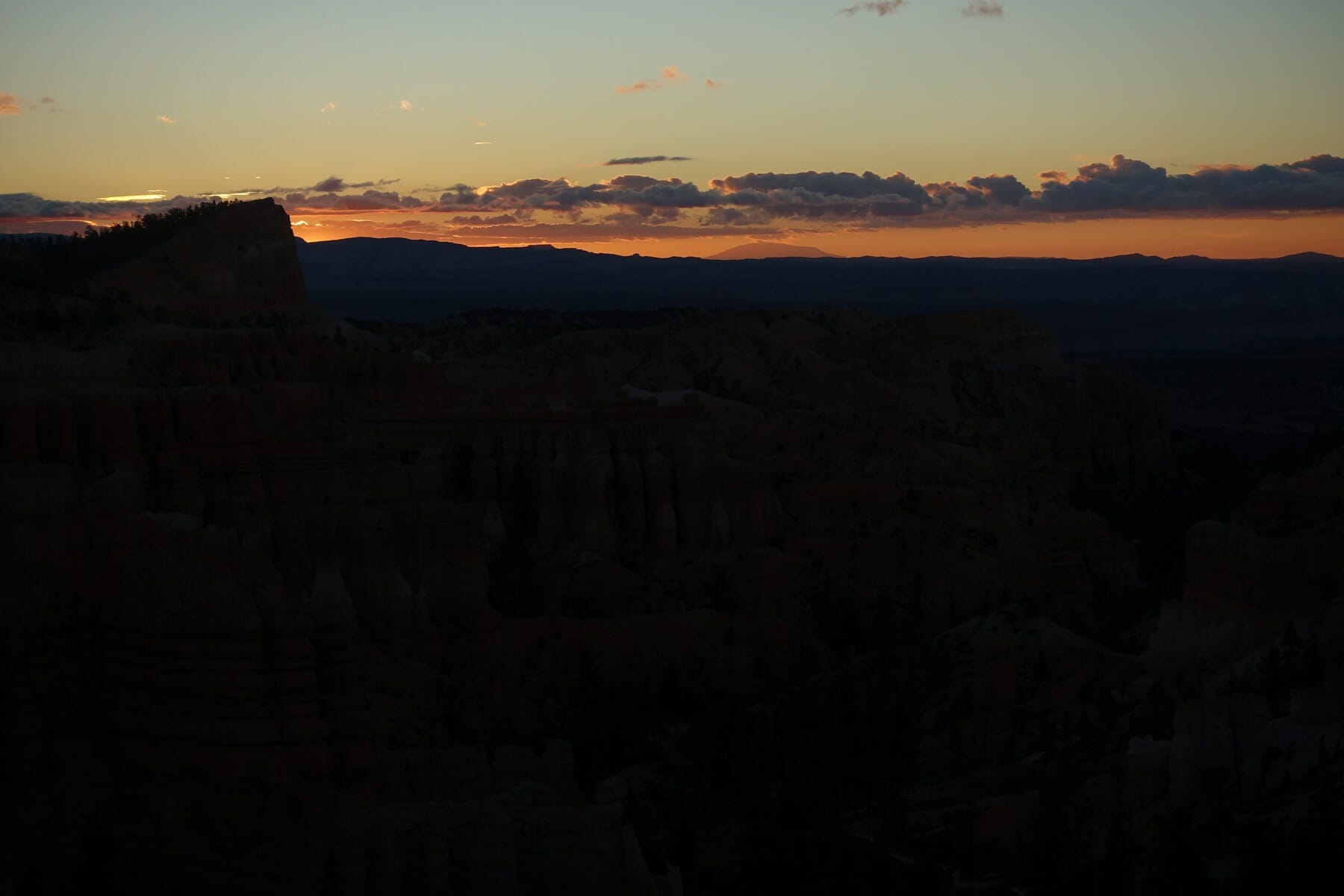 On Sunday, our alarms again woke us for a pre-sunrise breakfast. We ate and drove to Fairyland Point, again arriving in time for sunrise. In contrast to the sunrise at Thor’s Hammer, sunrise here was more yellow and muted.