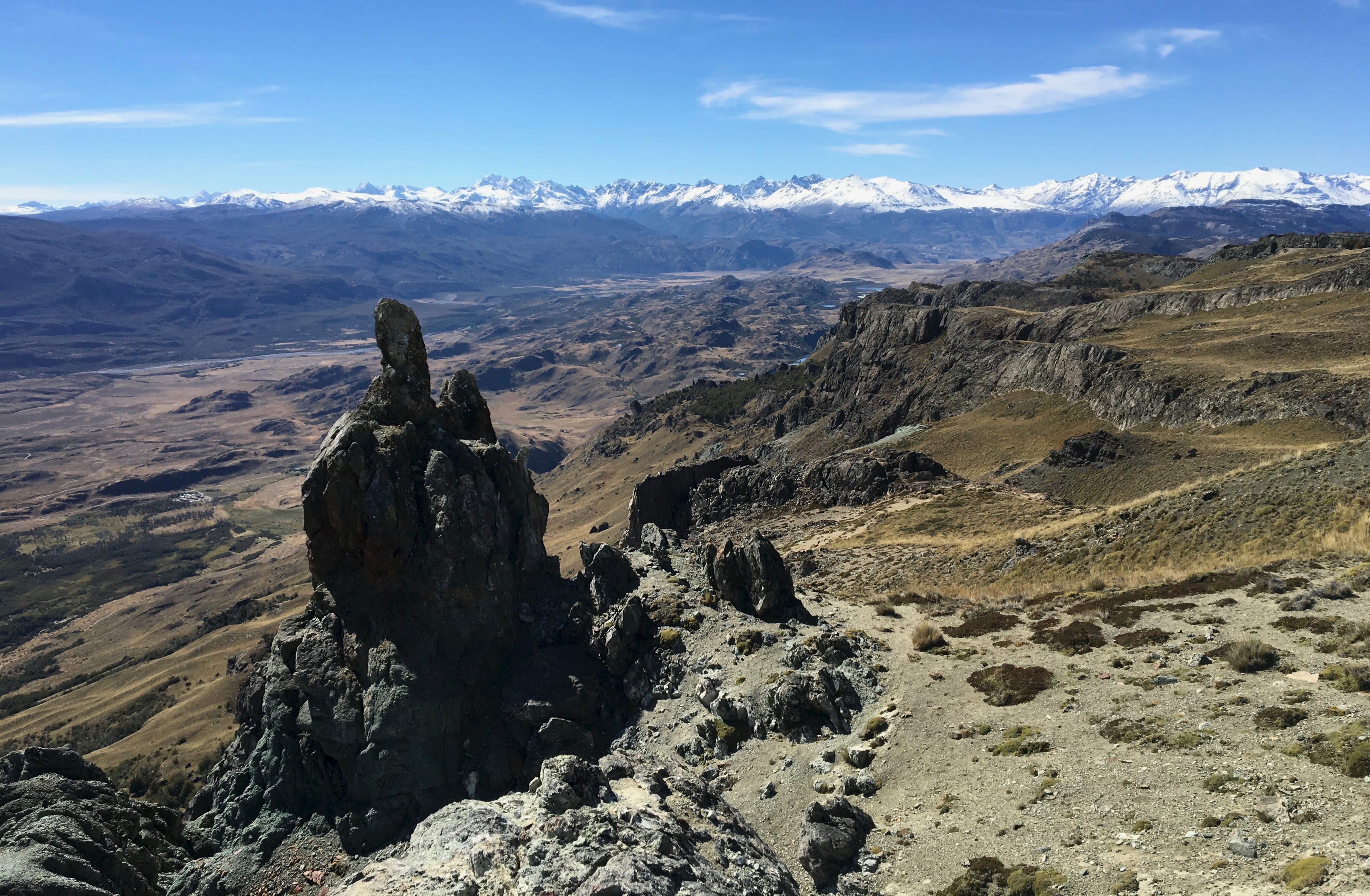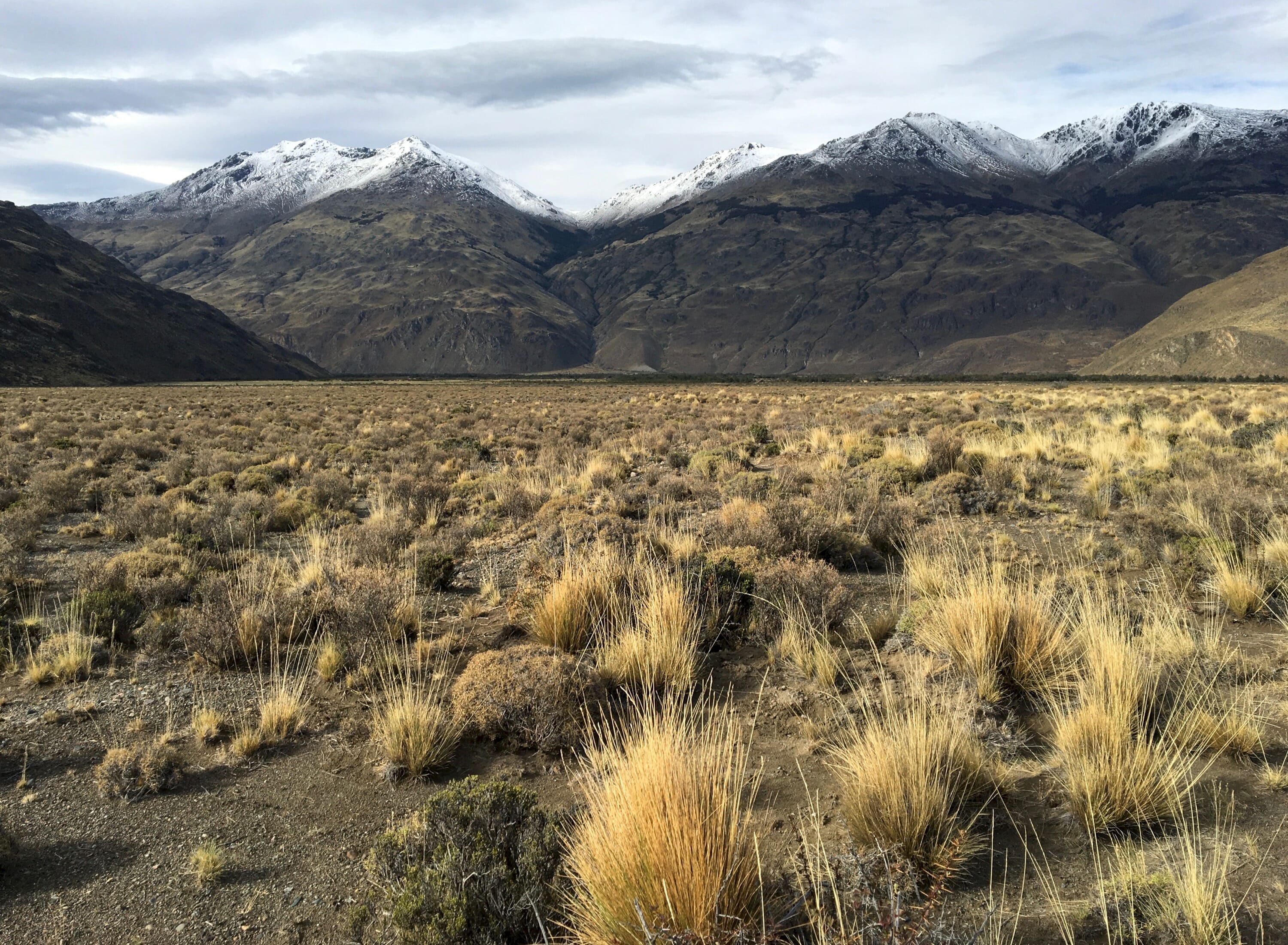 This valley toward the Jeinimeni Reserve is incredibly scenic! During the first half of our loop, we had constant views of the plateaus and mountains across the valley on our left, as well as the mountains behind us (between Valle Chacabuco and Lago Cochrane). As we gradually ascended, the snow-dusted peak of Co. Pintura loomed to the left with a few of the closest peaks in Jeinimeni Reserve at the head of the valley.