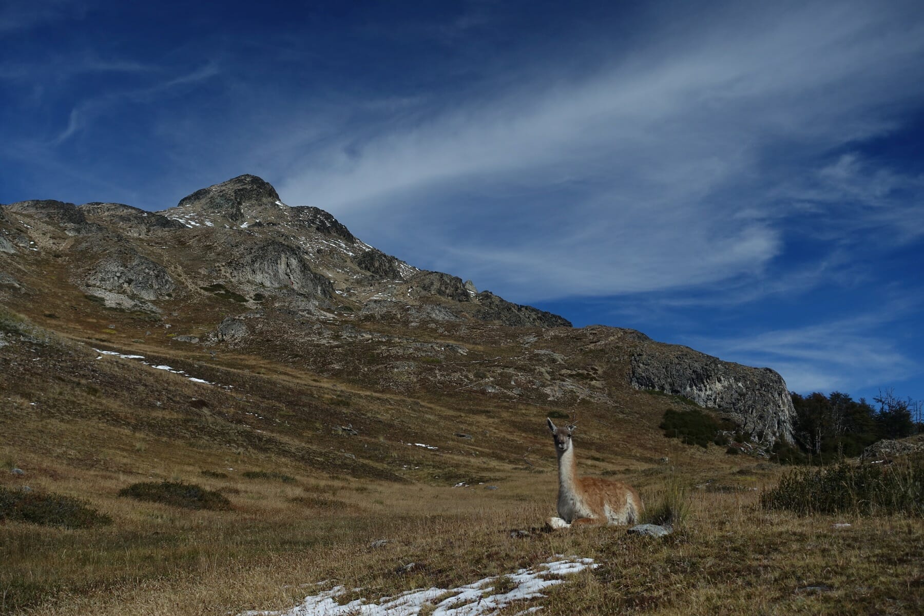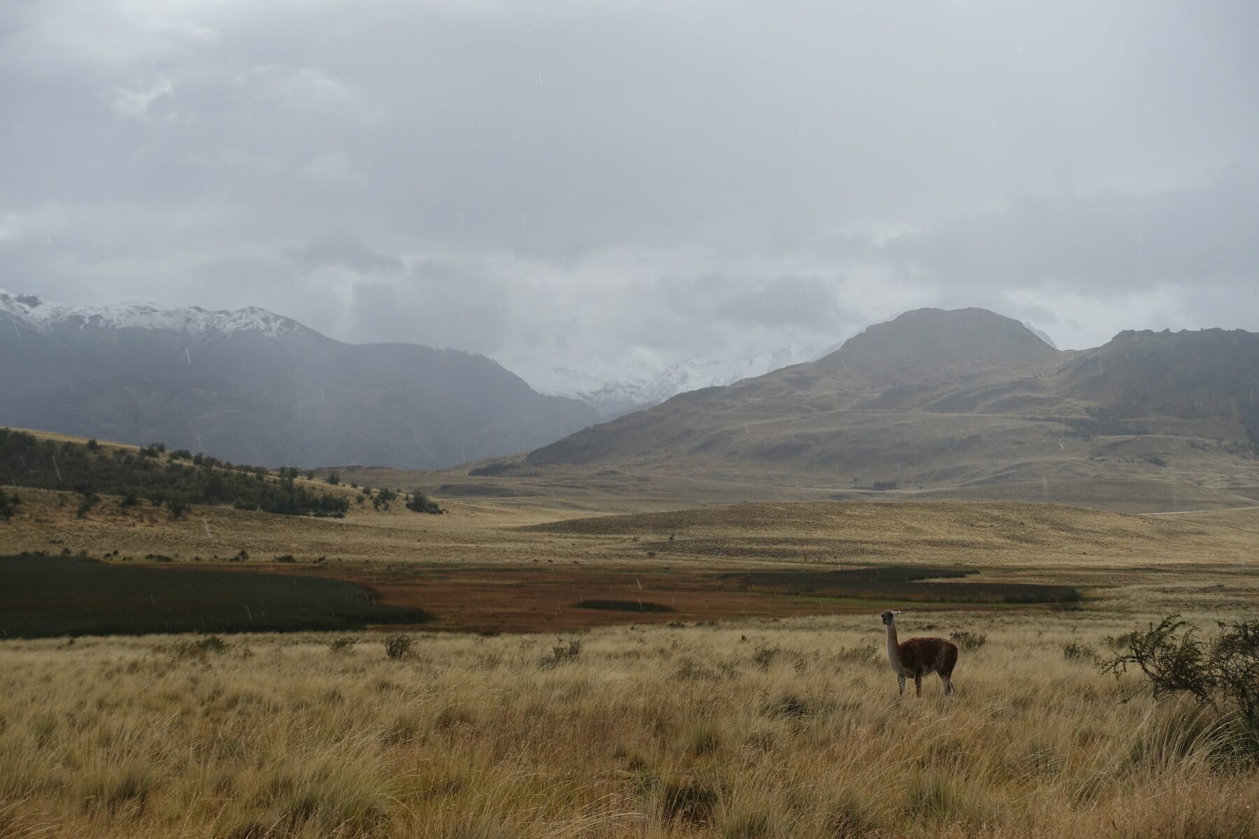 Soon enough, the trail led us off the plateaus and back down to the second footbridge across the Avilés River. As forecast, dark storm clouds began to roll north and eastward over the mountains from Lago Cochrane. We quickly powered through the final 2km back to the campground as the wind gusted strongly and threatened rain. As expected, herds of guanacos lingered by the trail near the campground.