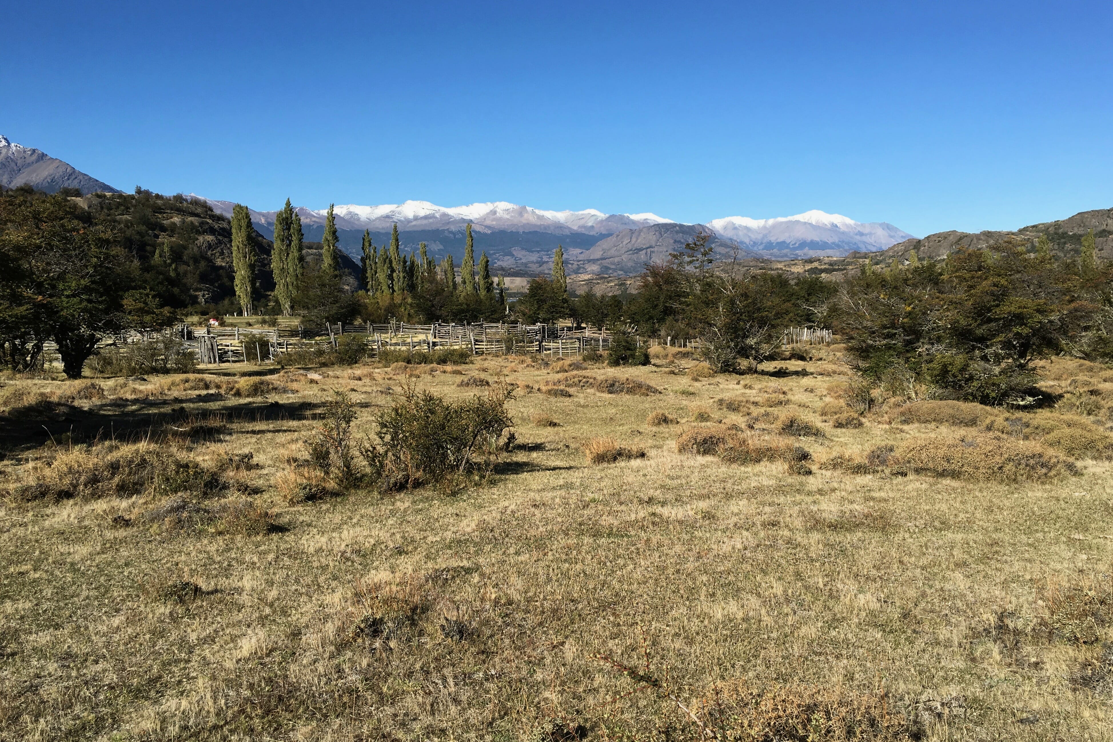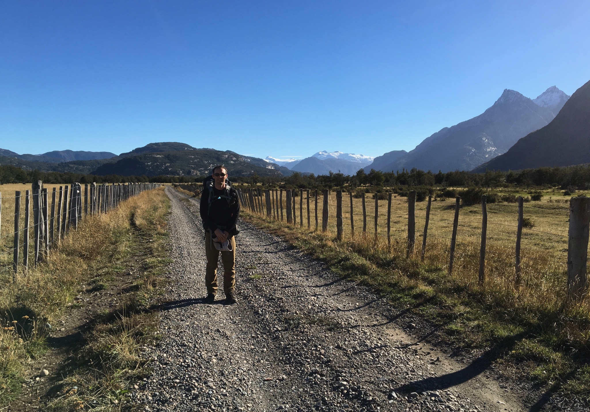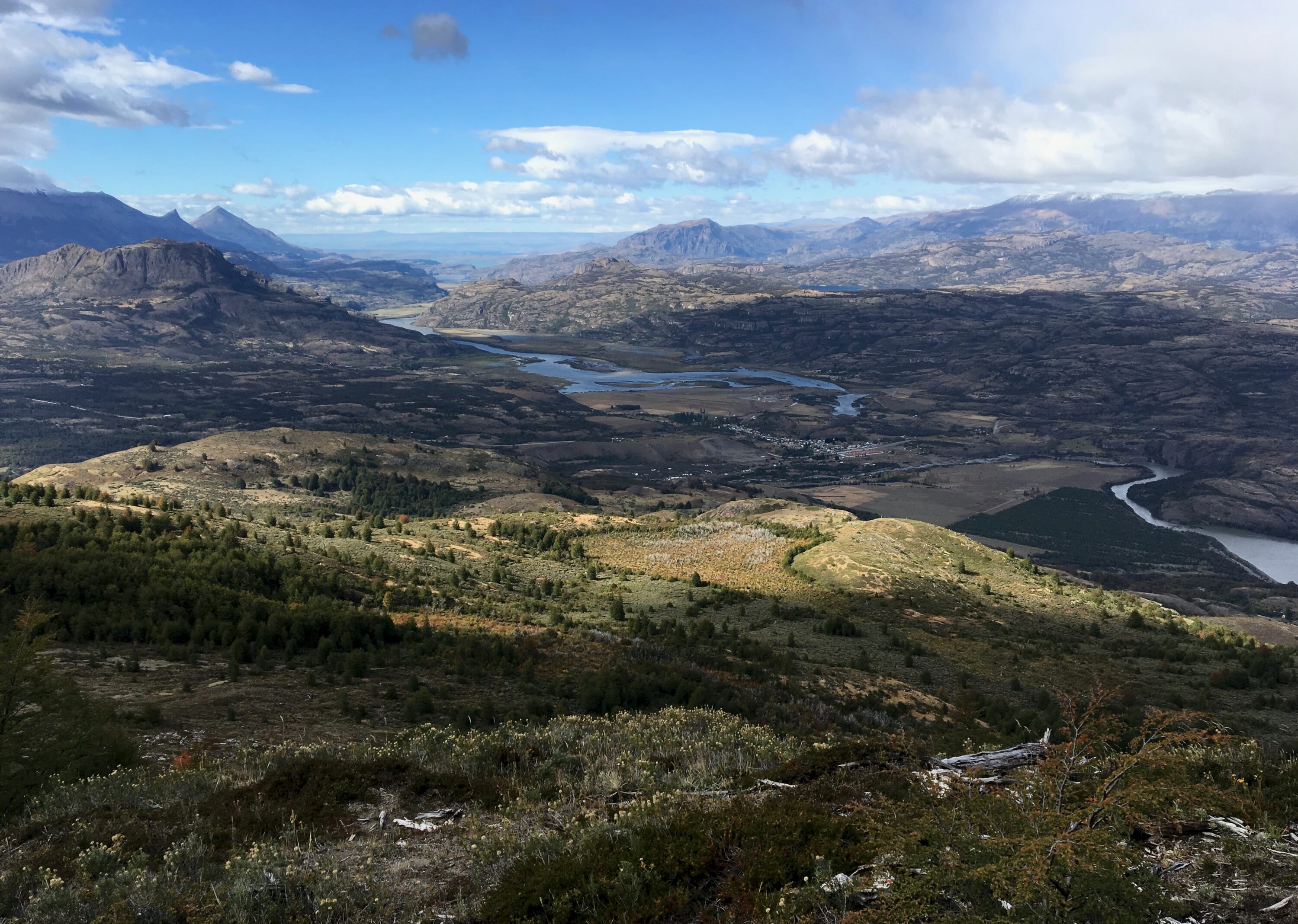Despite the tranquility and beauty of this area, we knew we had a long hike back to our hotel and reluctantly headed back toward camp. As we arrived at the campsite, we met two of the three other hikers that we would see today. After leaving the park boundary, the trail continues through pastureland along farm roads. There are several viewpoints along the way with views of the sprawling Ibáñez River and the mountains to the southwest.