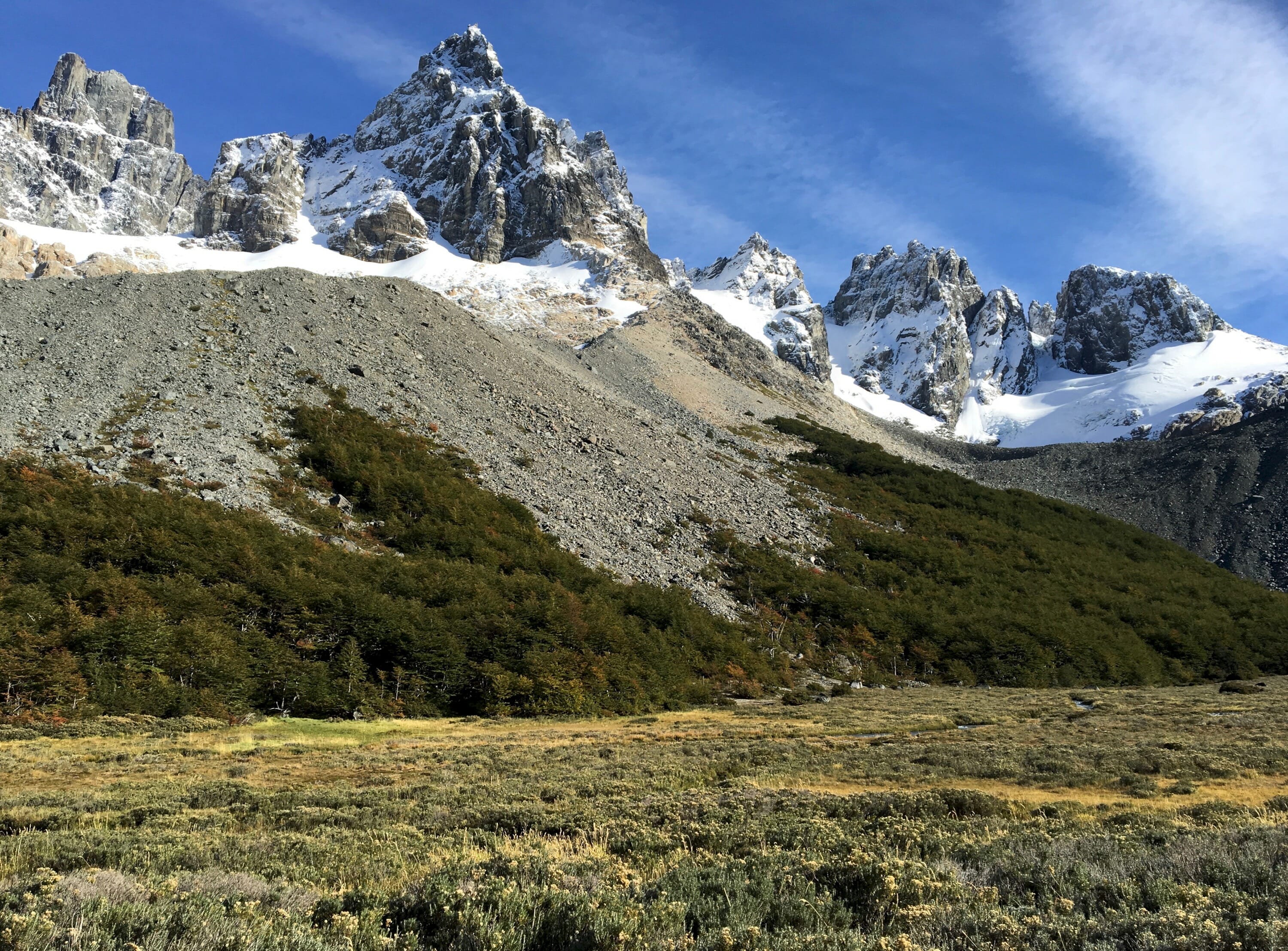 With only a single overnight and at most two days of hiking available in our schedule for Cerro Castillo National Park (formerly a National Reserve until October 2, 2017), we settled on a loop hike that allowed us to see the famous Laguna Cerro Castillo and camp at the beautiful New Zealand camp, before returning to the village and our hotel. Total distance: 10 miles, total elevation gain: 5524 feet.