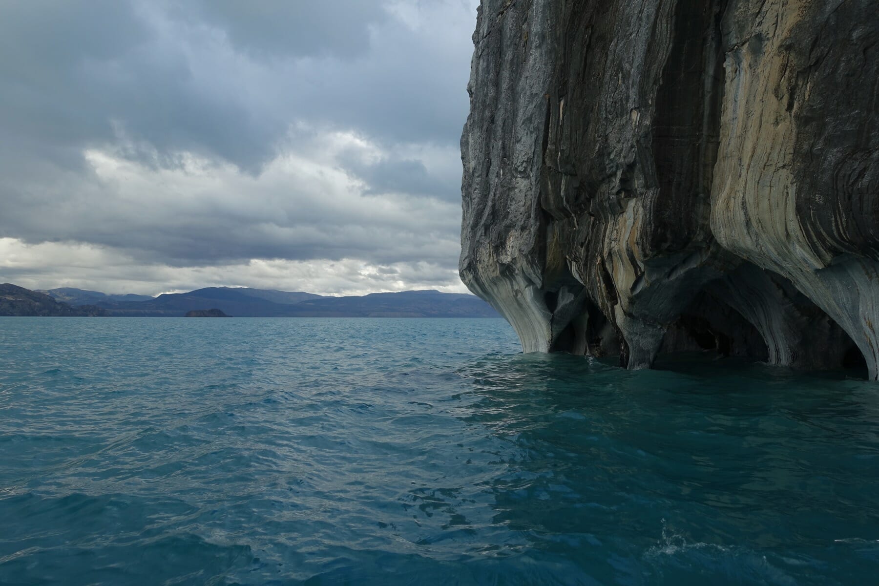 The next morning, we slept later than normal to give the Capillas de Mármol tour operators time to open. We checked out of the hotel and then inquired about the day’s tour options at a kiosk by the main road. Given that it was cloudy and windy, we thought it might reduce or cancel the tours altogether, but the operators assured us that it would be fine (chilly, but fine).