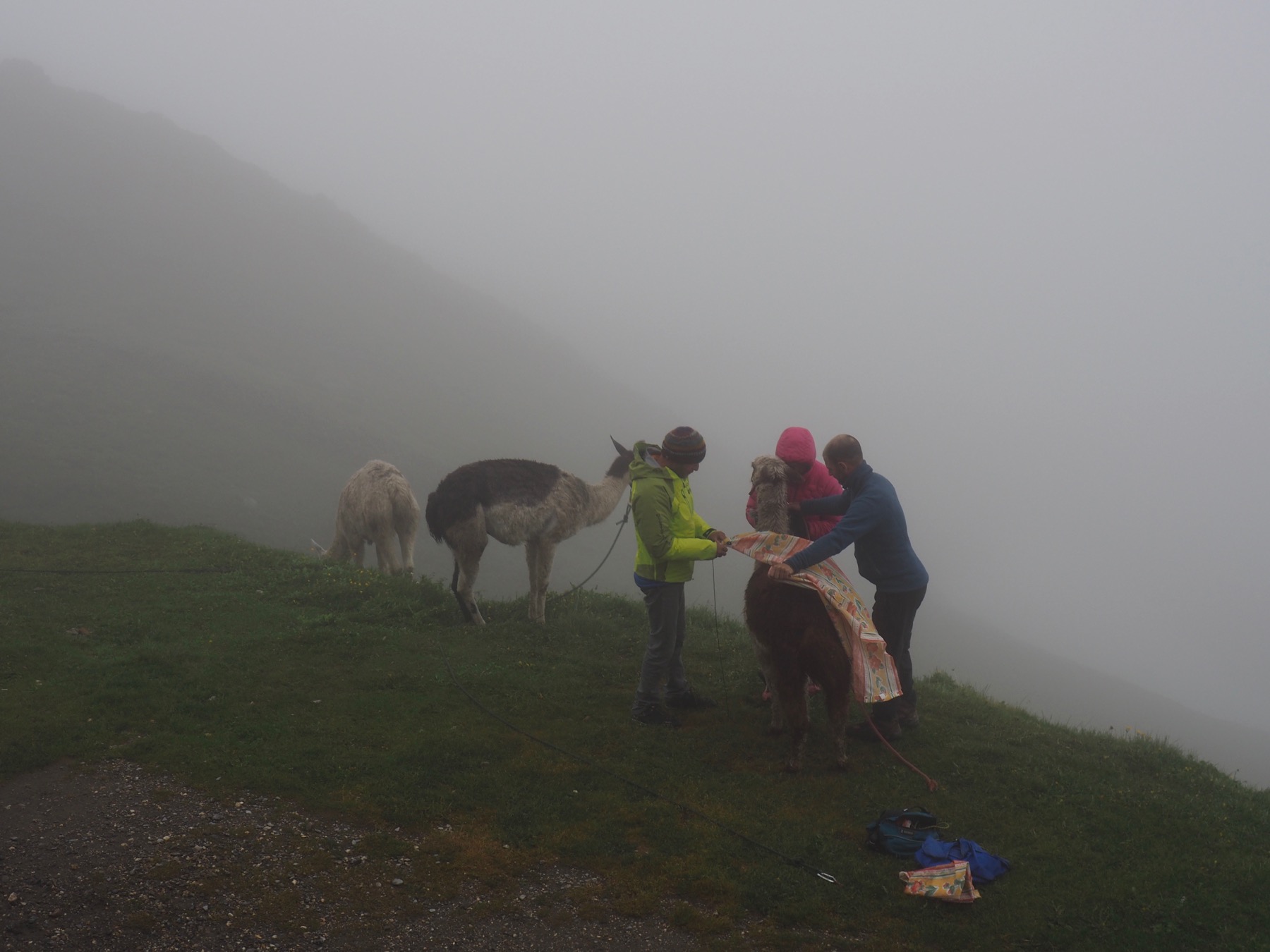 After breakfast, we set out for Col de la Seigne and the Italian-French border under partly cloudy skies and beautiful morning light. We made it no more than a tenth of a mile up the valley, though, before the clouds filled in and moved lower. The closer we got to the col, the worse the weather got. It began raining and visibility dropped to about 100 meters at times.