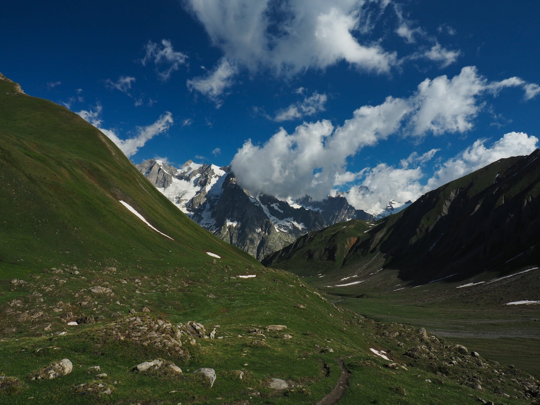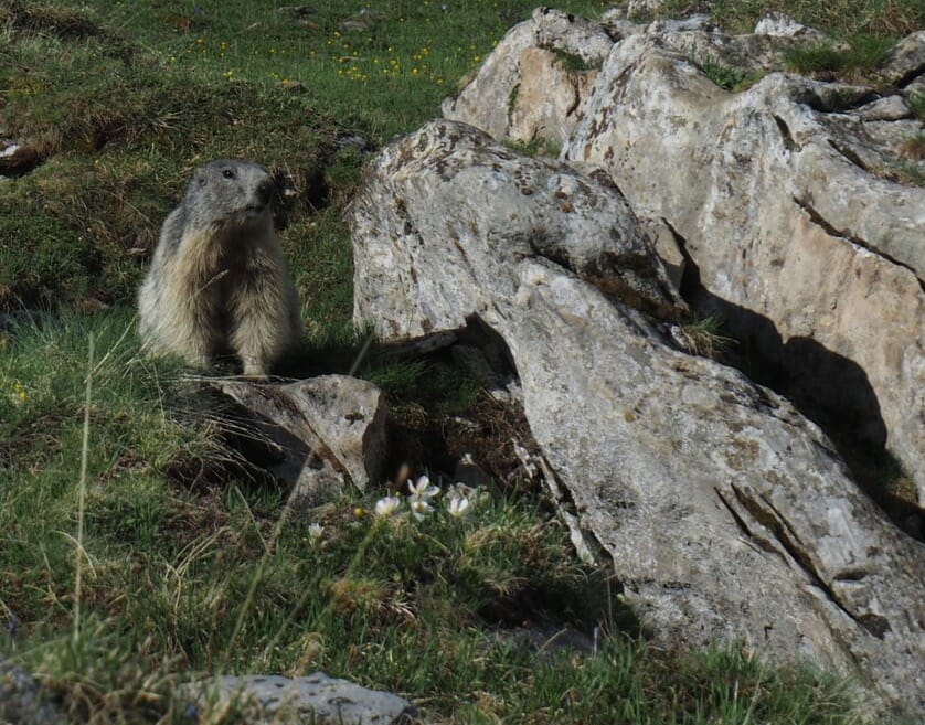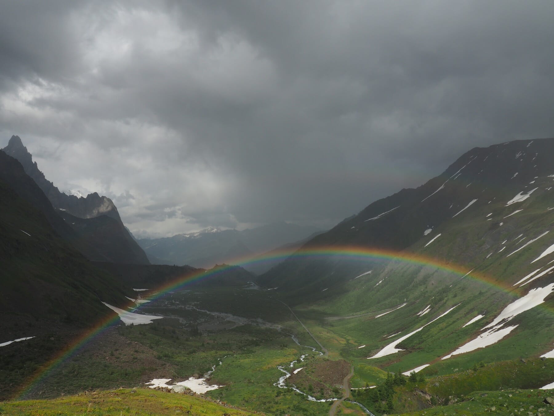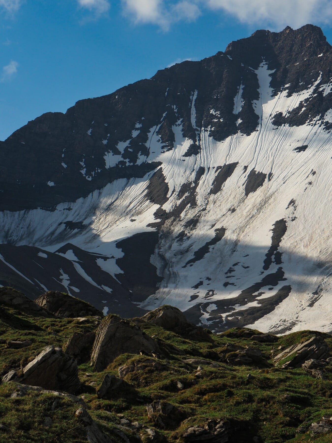 From Bonatti, we set out on another variant of the TMB. From the refuge, we followed the trail up a green valley. The skies started to clear, making for a spectacular combination of light and scenery. Marmots filled the valley; it seemed that one or more topped each boulder. The day’s detour would have been worth it just for this gorgeous, magical valley.