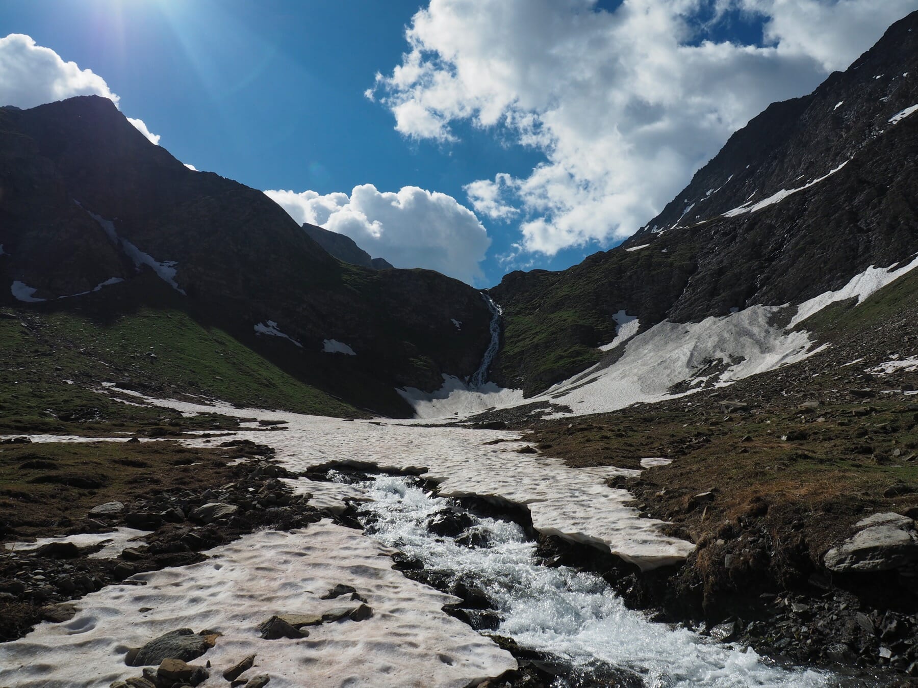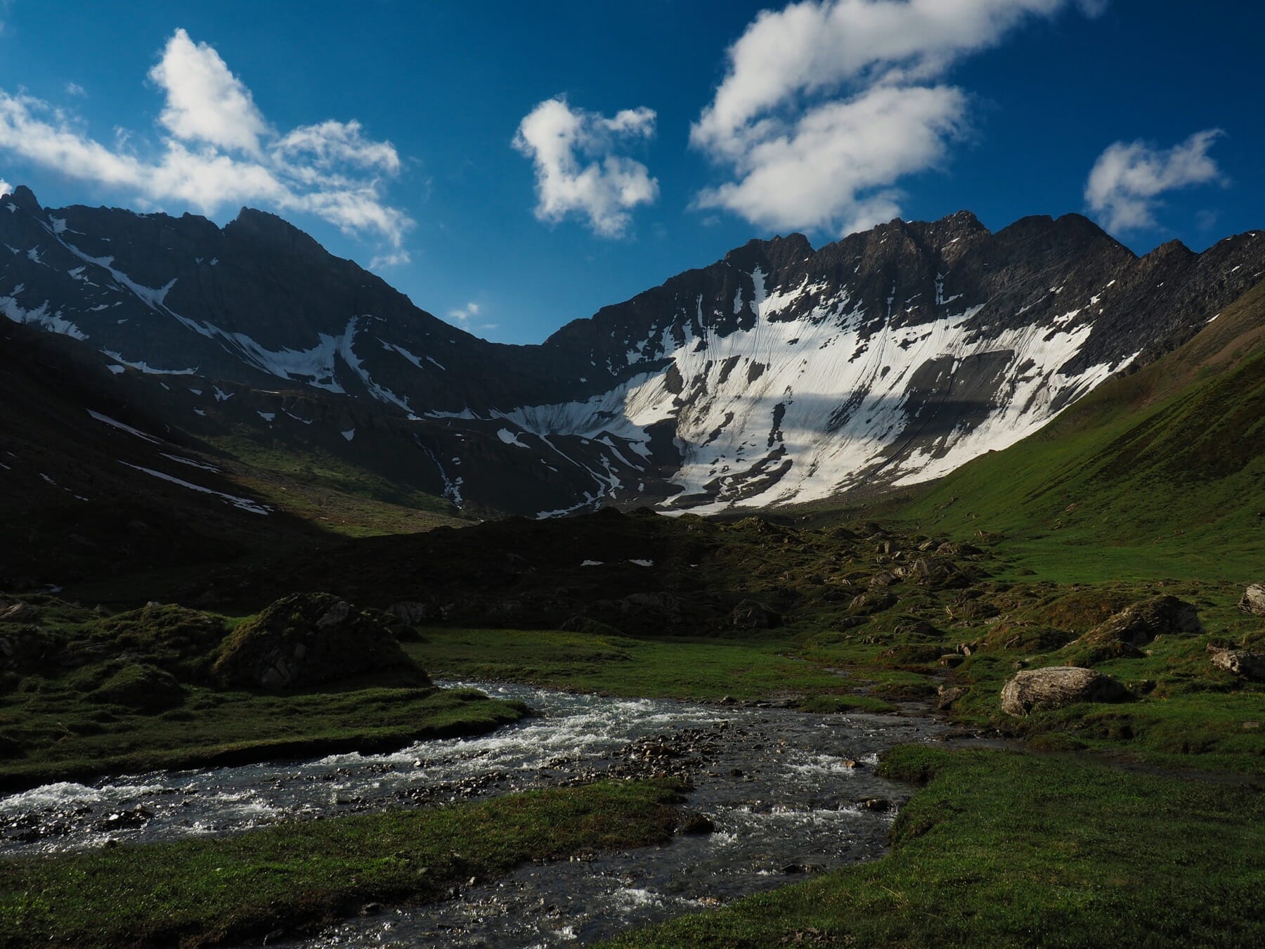 We dried our glasses and looked around, finding we were in another green valley, filled with rushing streams and dotted with tarns.