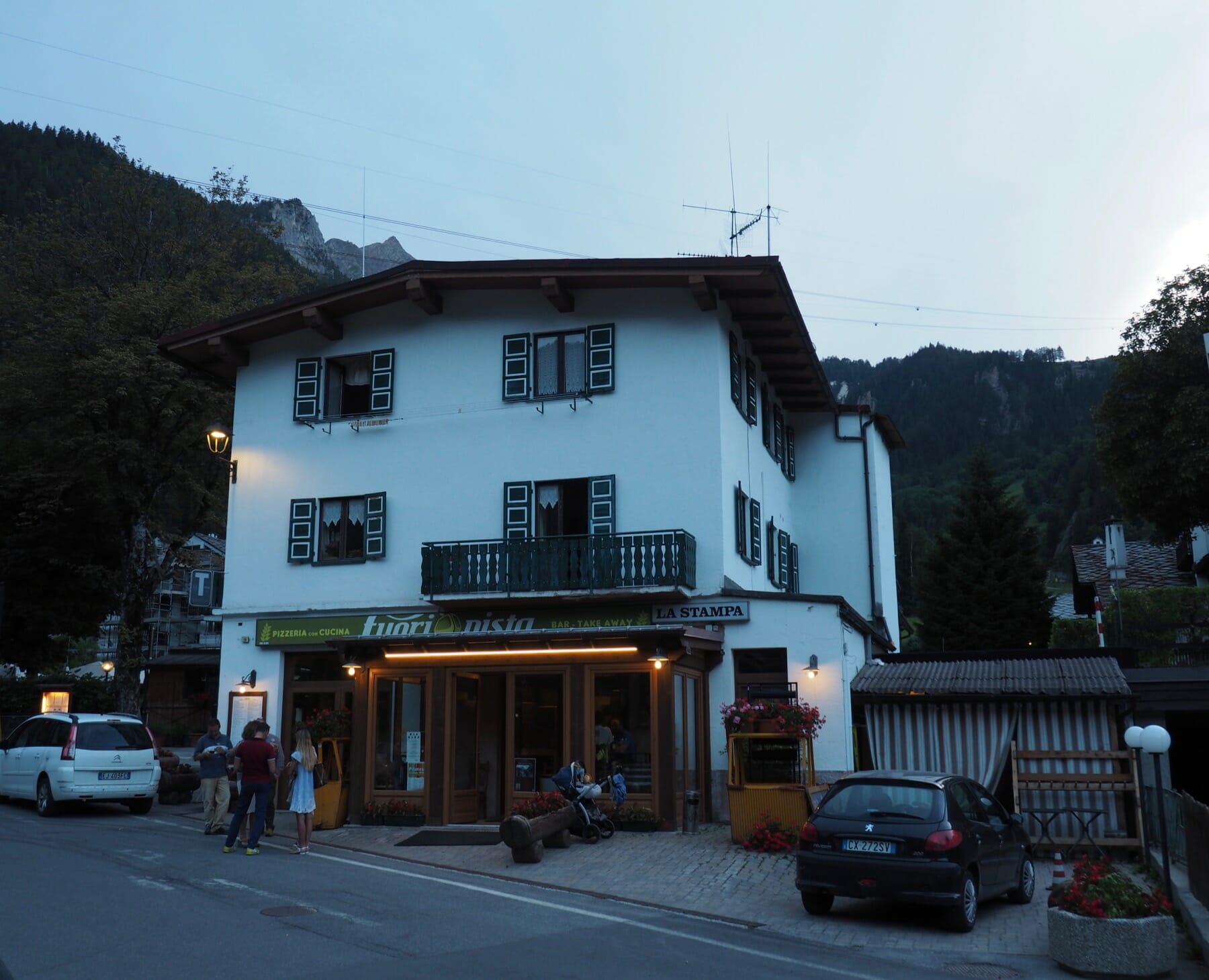 For dinner, we followed a recommendation from other guests at Rifugio Bonatti. They had mentioned that crossing the river to Dolonne would get us away from more touristy places, and to a fantastic pizza place, Lo Sciatore. The advice turned out to be great. We shared a goat cheese salad and the “tour” pizza, divided into regions topped with various local specialties. These included dried beef, spicy pepper beef, pear and a local cheese, and cheese and speck. It was fantastic. We followed it with chocolate gelato for dessert.