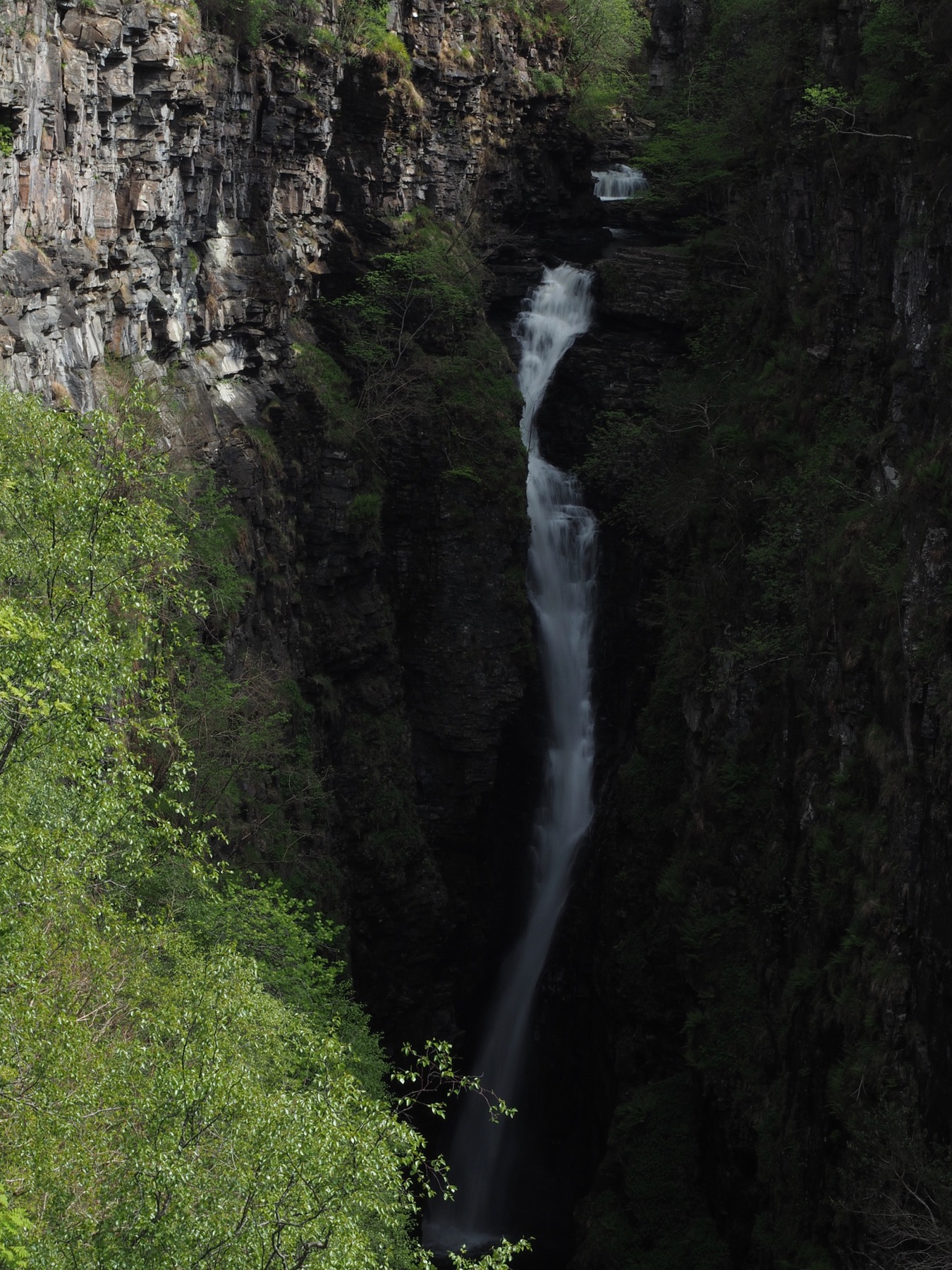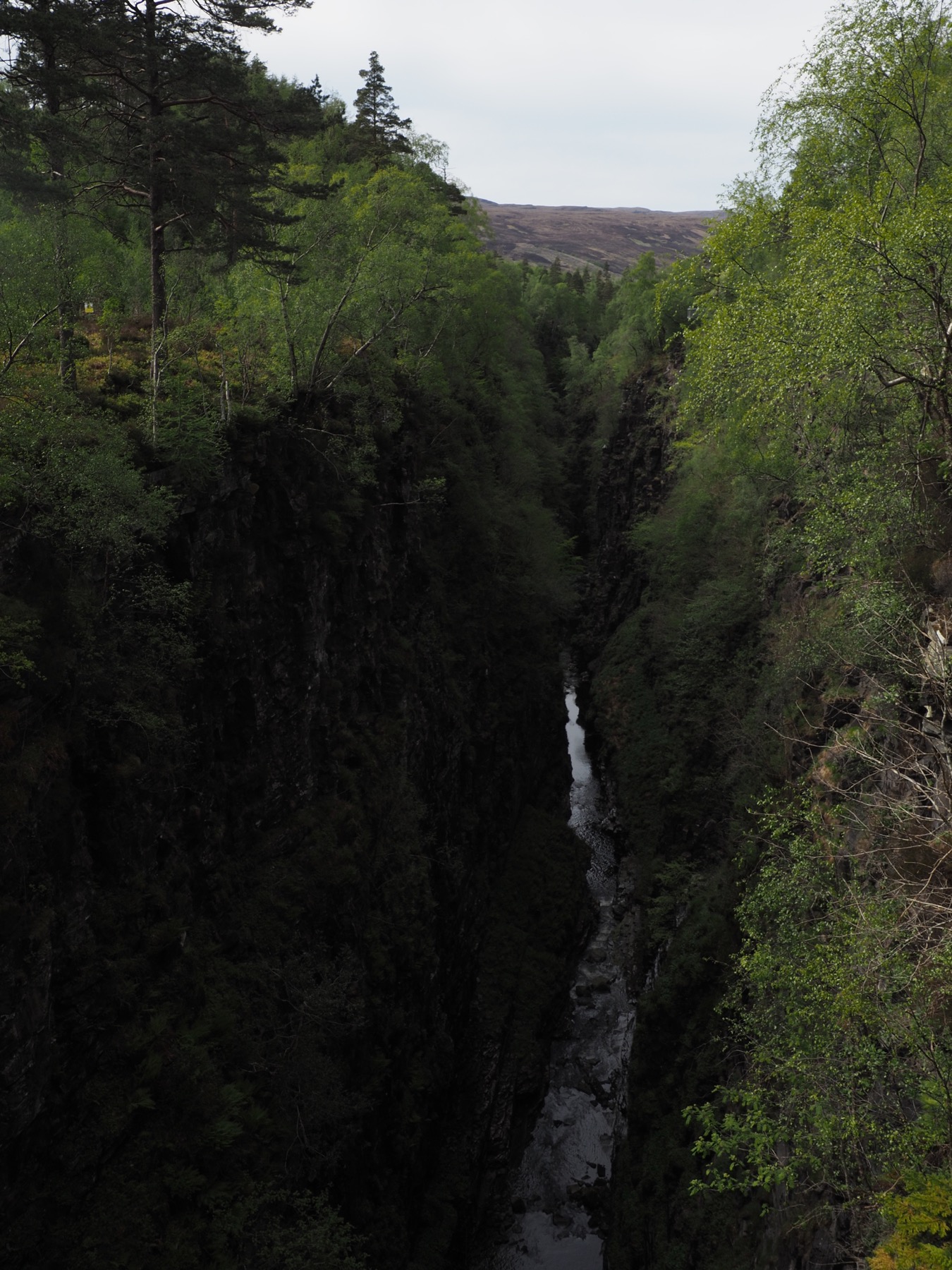 Back on the road, we drove to Corrieshalloch Gorge. There, we followed the trail to a bridge over the gorge, above Falls of Measach. A viewing platform further along provided views back to up the gorge to the falls. Back on the other side, we followed a loop trail, which offered limited additional views of the gorge and down to Loch Broom.