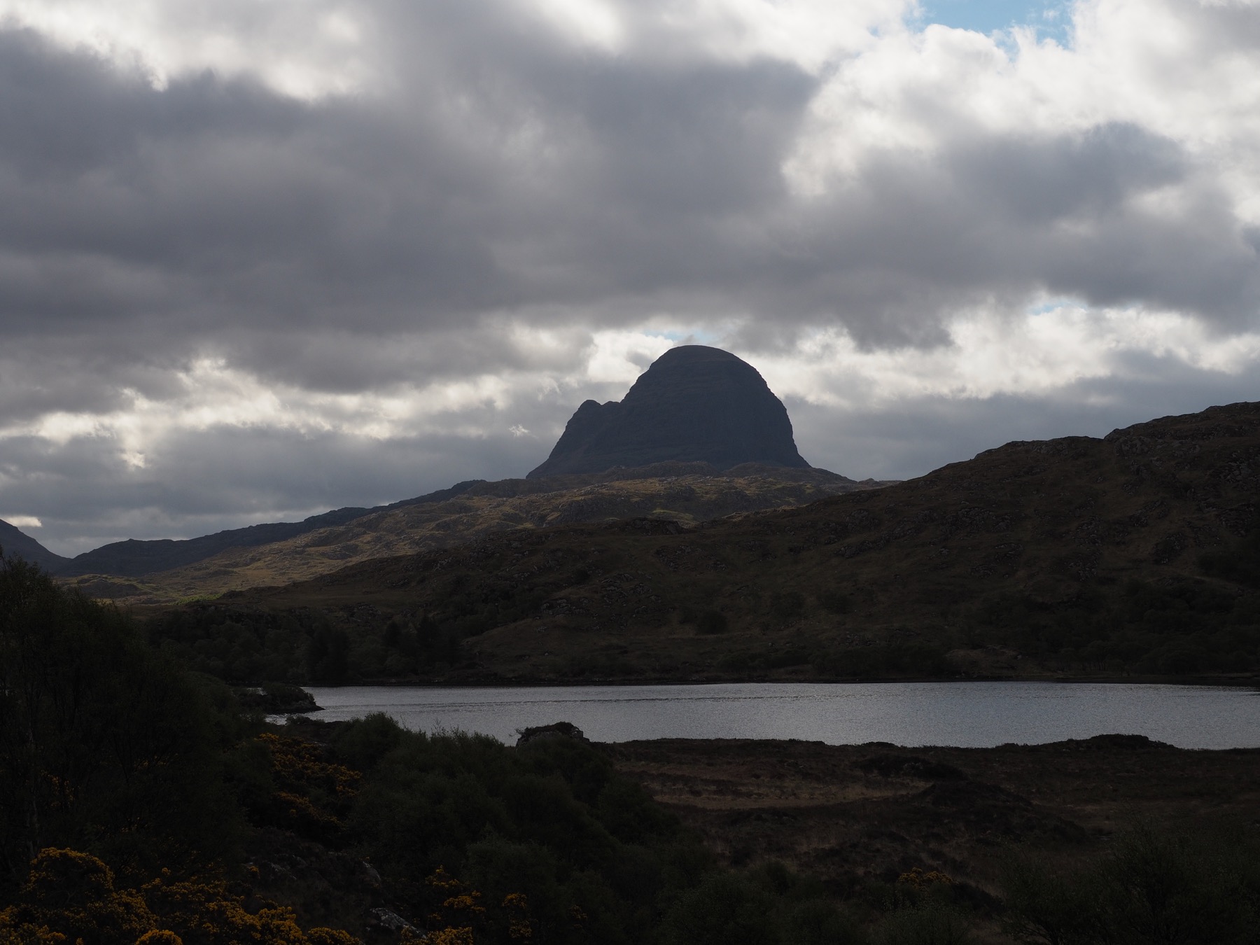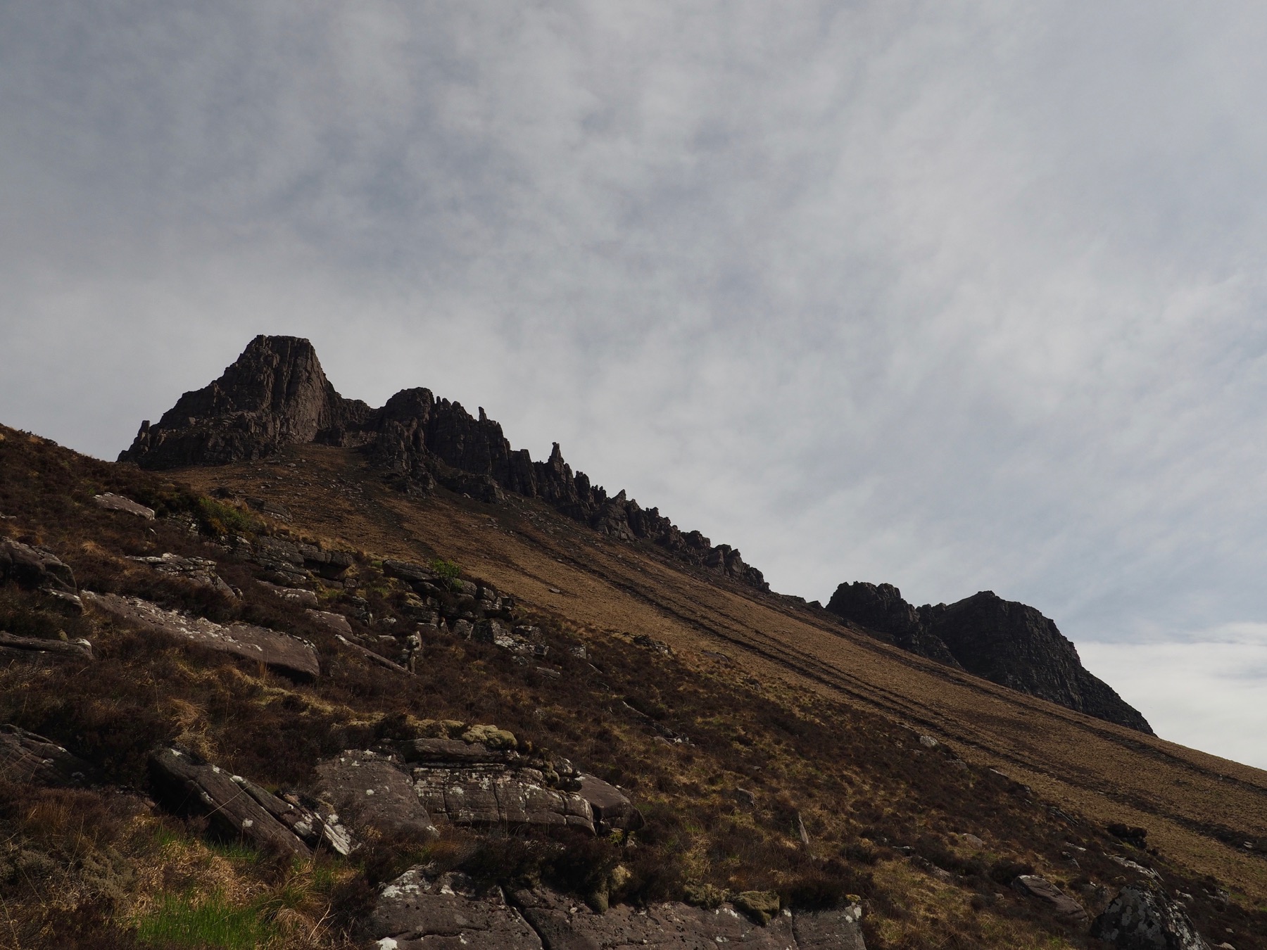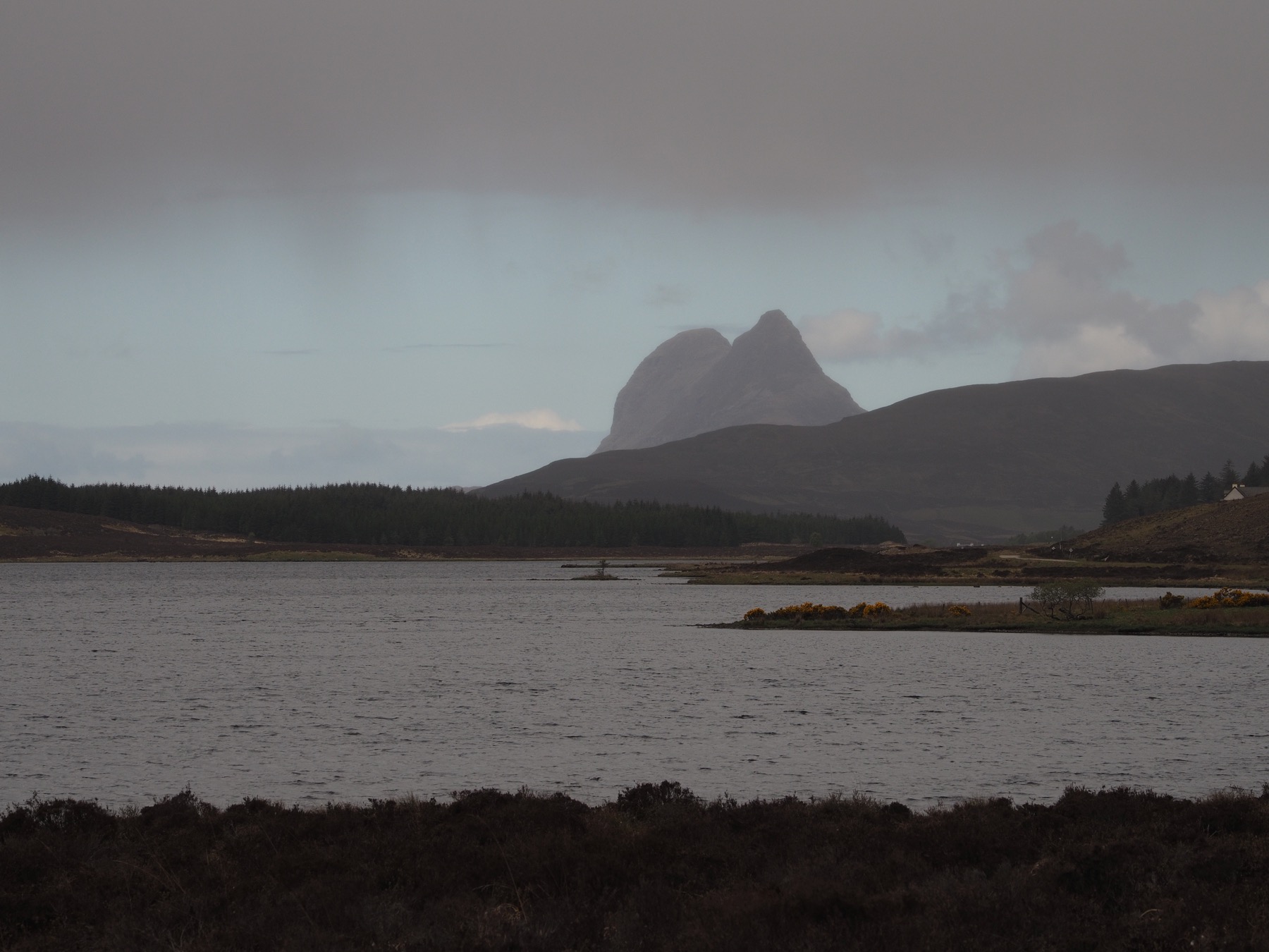 Further along, we stopped for views of peaks we had seen from Suilven, including Stac Pollaidh, a peak dotted with many pinnacles rising from Loch Lurgainn.