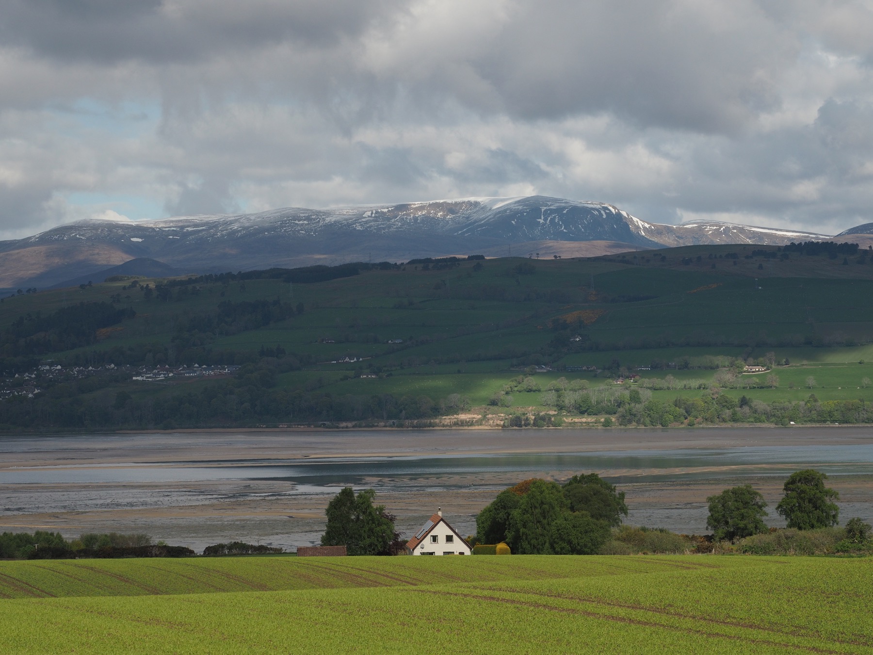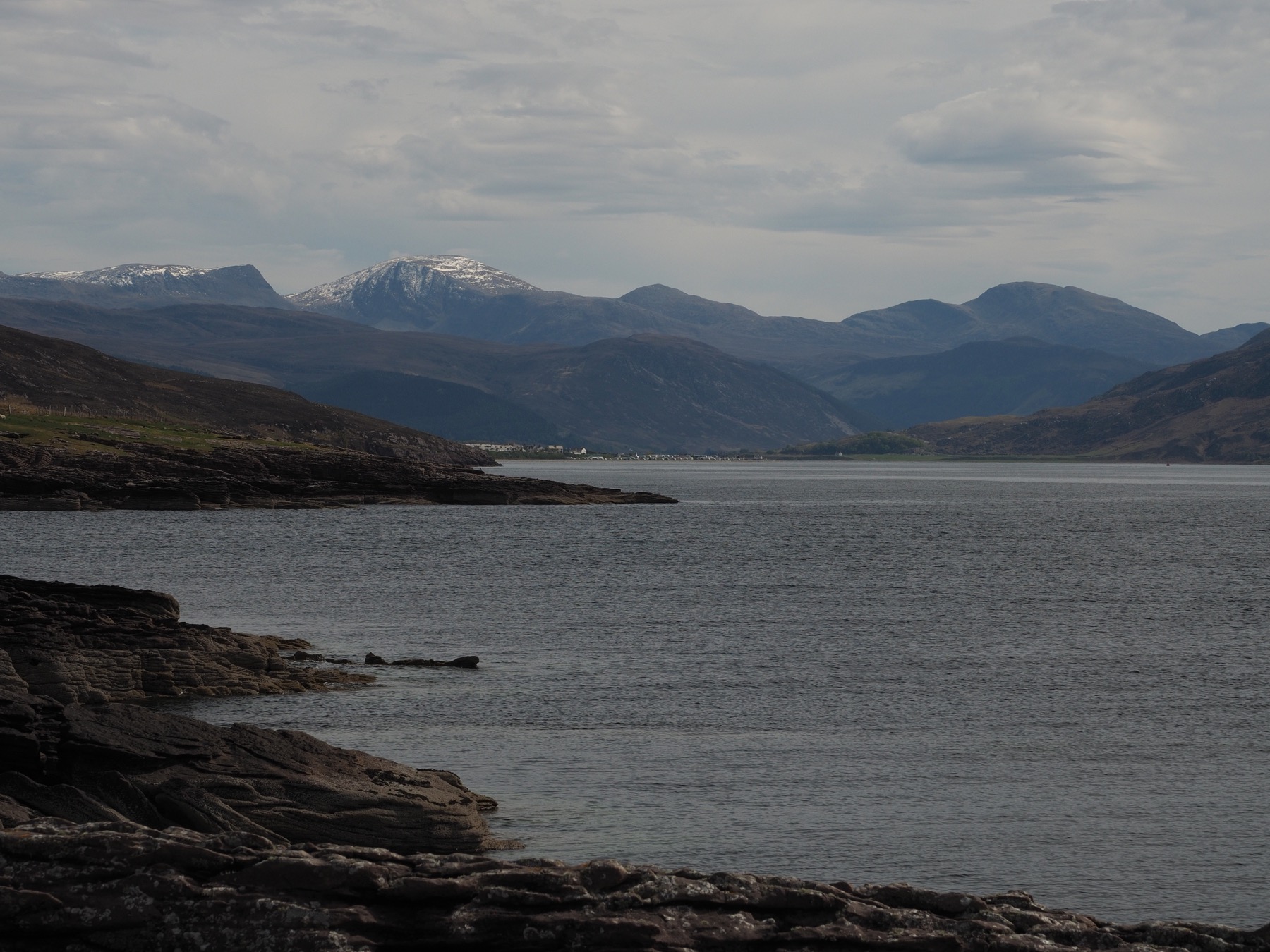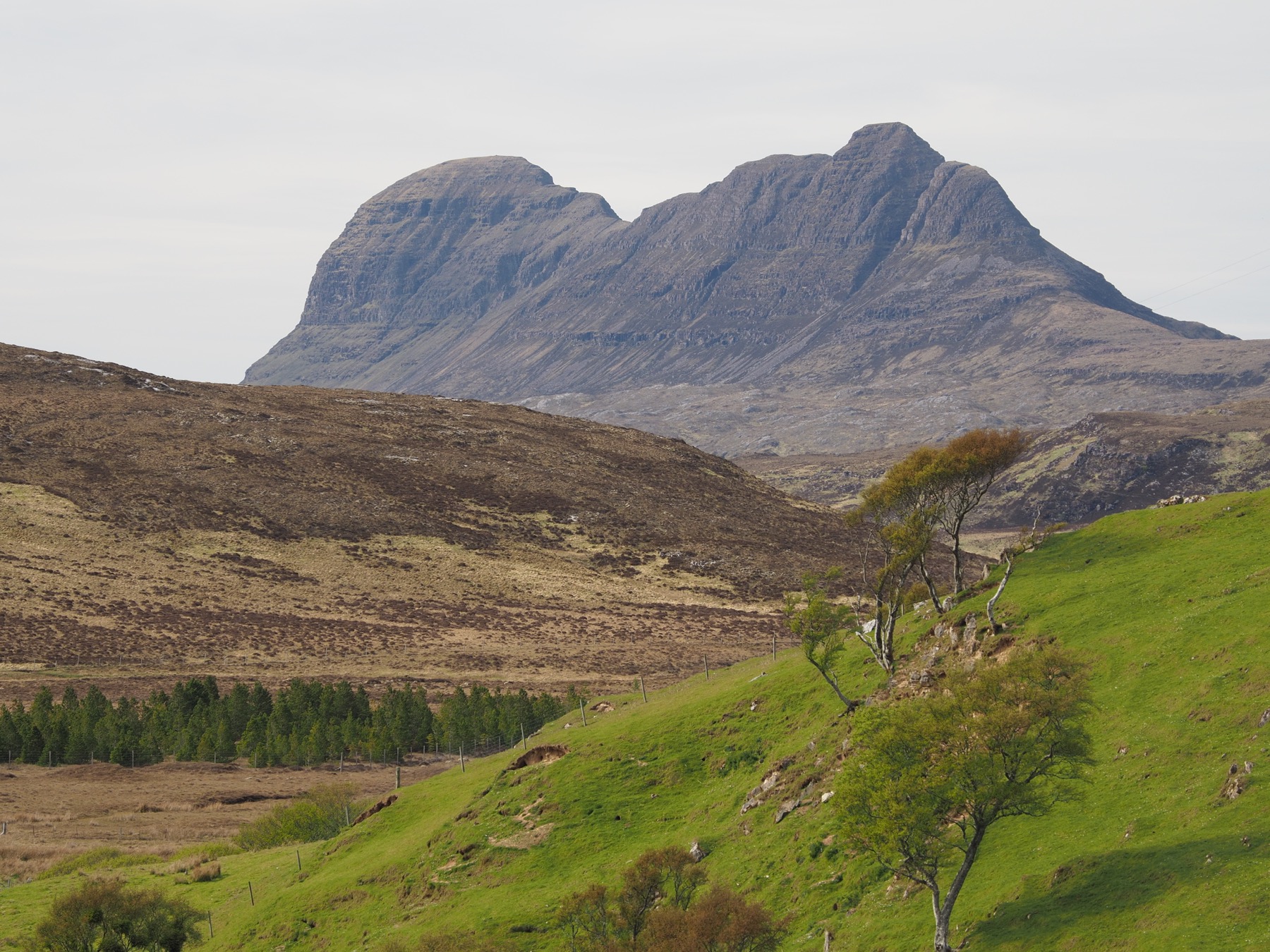 A few minutes later, we picked up our bags and checked out of the hotel, and then set out for Lochinver. Along the drive, we stopped for views of Cromarty Firth, Dornoch Firth, and our first glimpses of the distinctive mountain, Suilven.