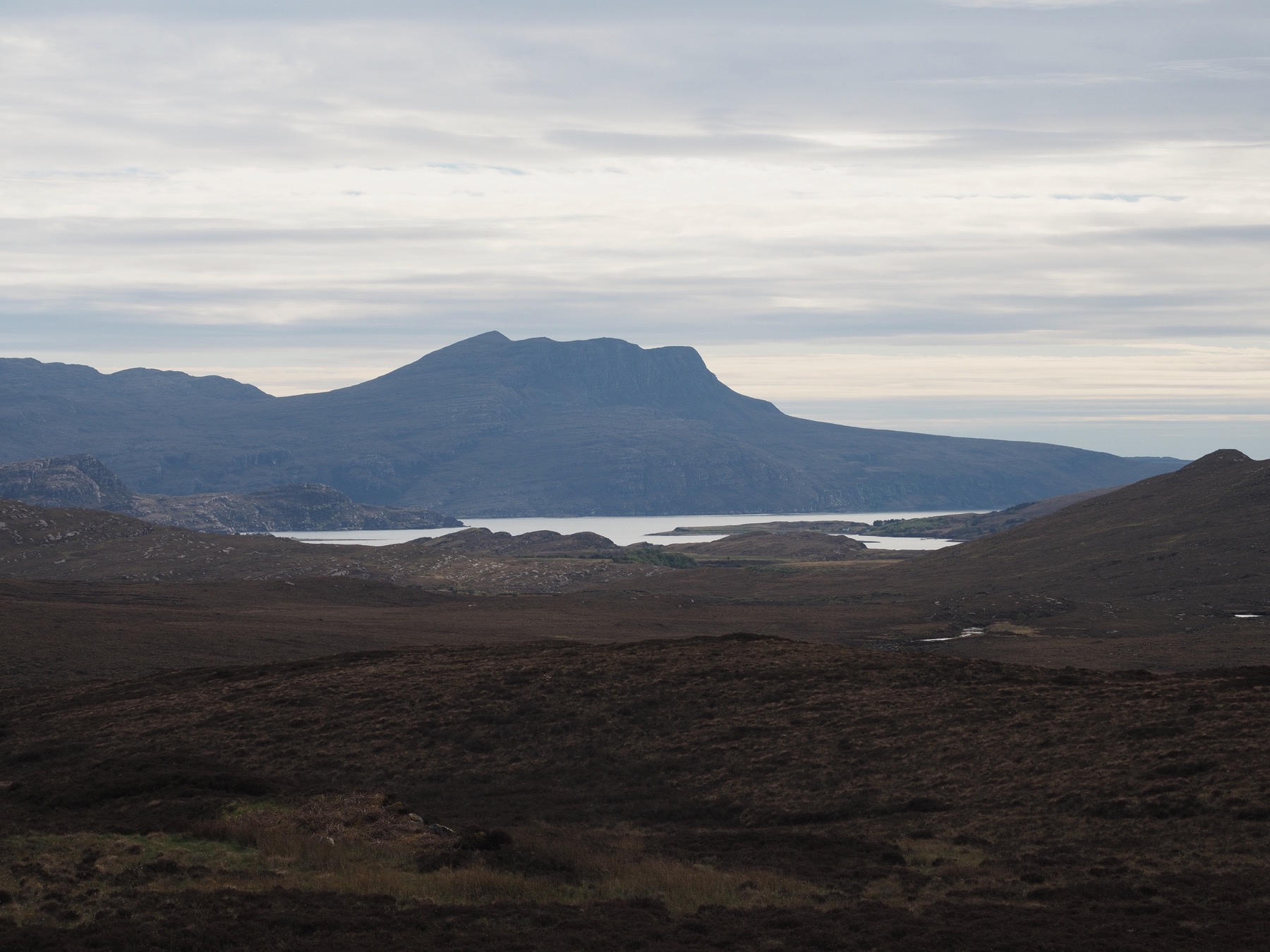 Much of the early part of the hike follows an ATV track. We expected this to be a bit of a boring slog, but we ended up enjoying it. With each small rise, we’d come to new lochs or slightly different views of the mountains. Ahead, Suilven and Canisp gradually got closer.