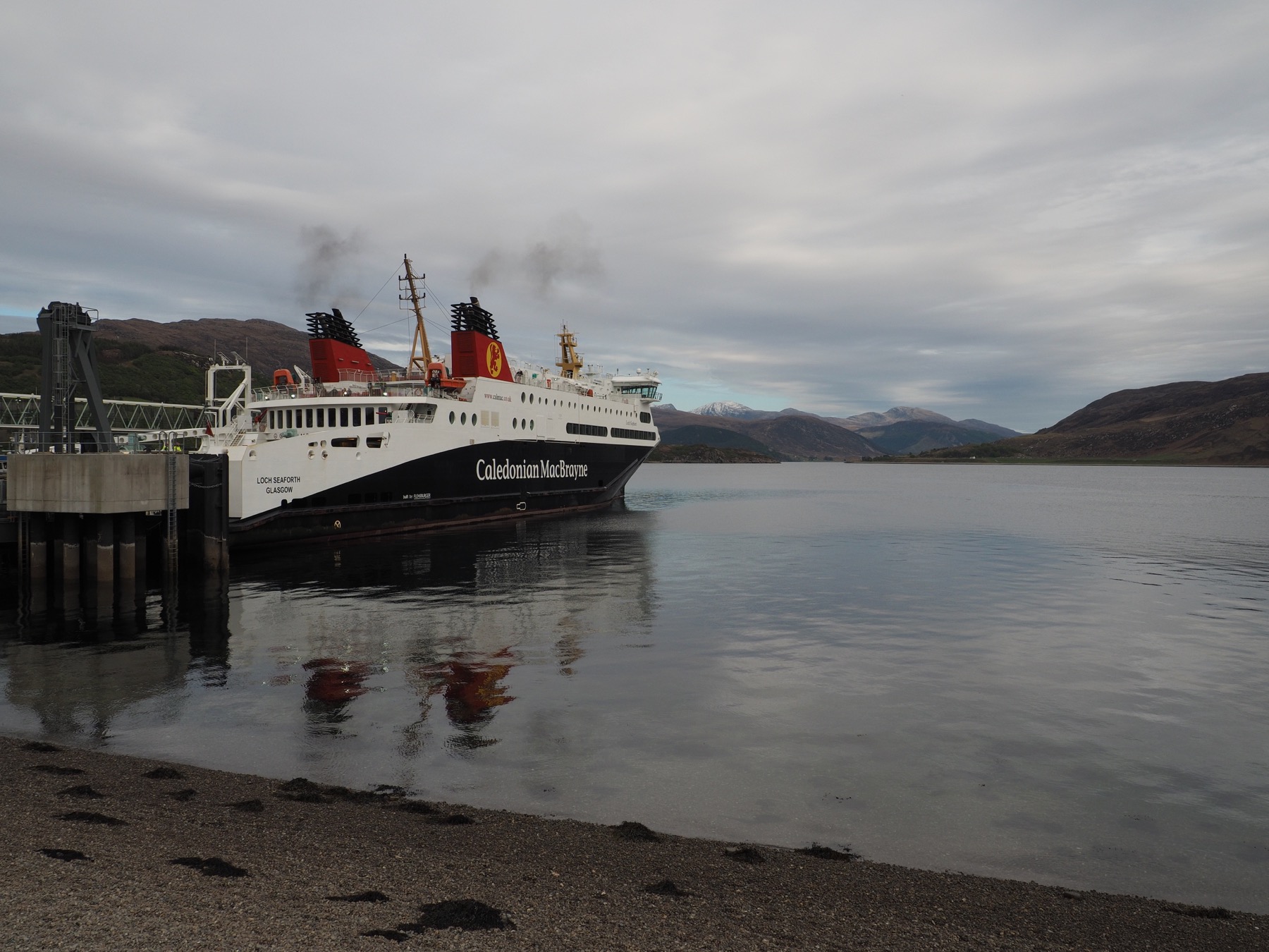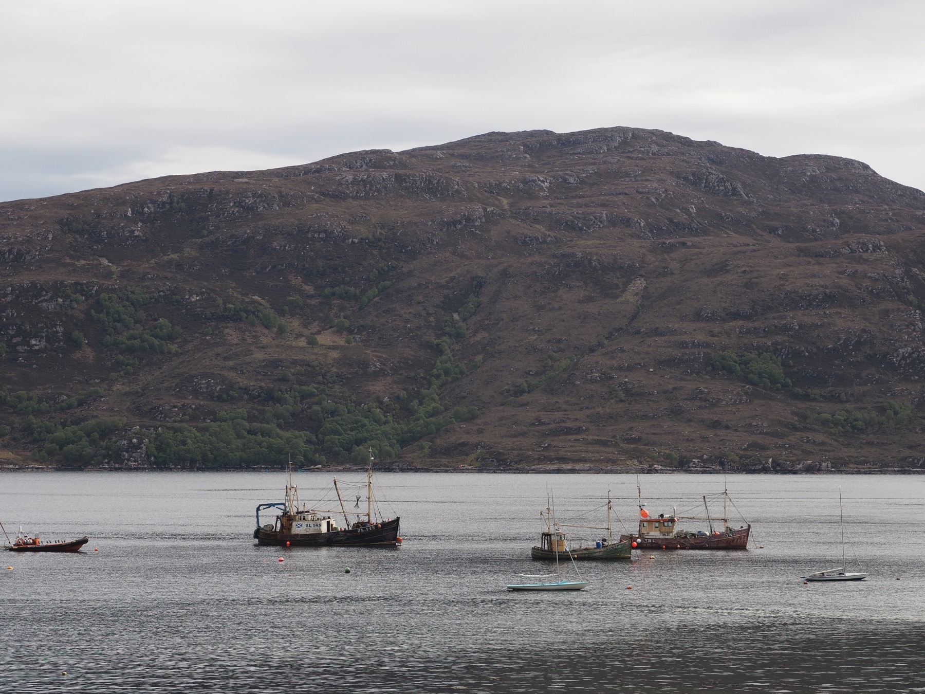 We got organized in our room and cleaned up. From Harbor House, a five minute walk brought us to the center of Ullapool.  We watched the ferry load while investigating dinner. Arch Inn looked appealing and had good reviews, but the hour plus wait deterred us. Instead, we decided on a cheaper dinner, and ordered Fish and Chips from Deli-ca-sea. With a beautiful night, we took our food across to the street to a picnic table to eat, defending it against hungry seagulls the whole time.