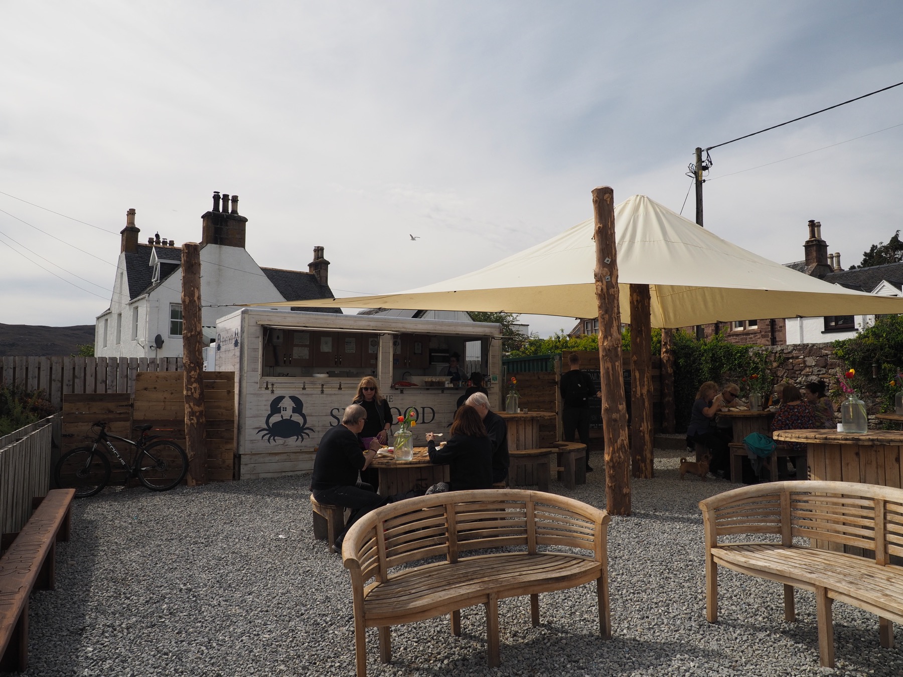 Passing back through Ullapool, we stopped at Seafood Shack for a light lunch. Sadly, they were also out of langoustines. Instead, we had a delicious crab salad with corn, avocado, beets, couscous, and a crème fraiche.