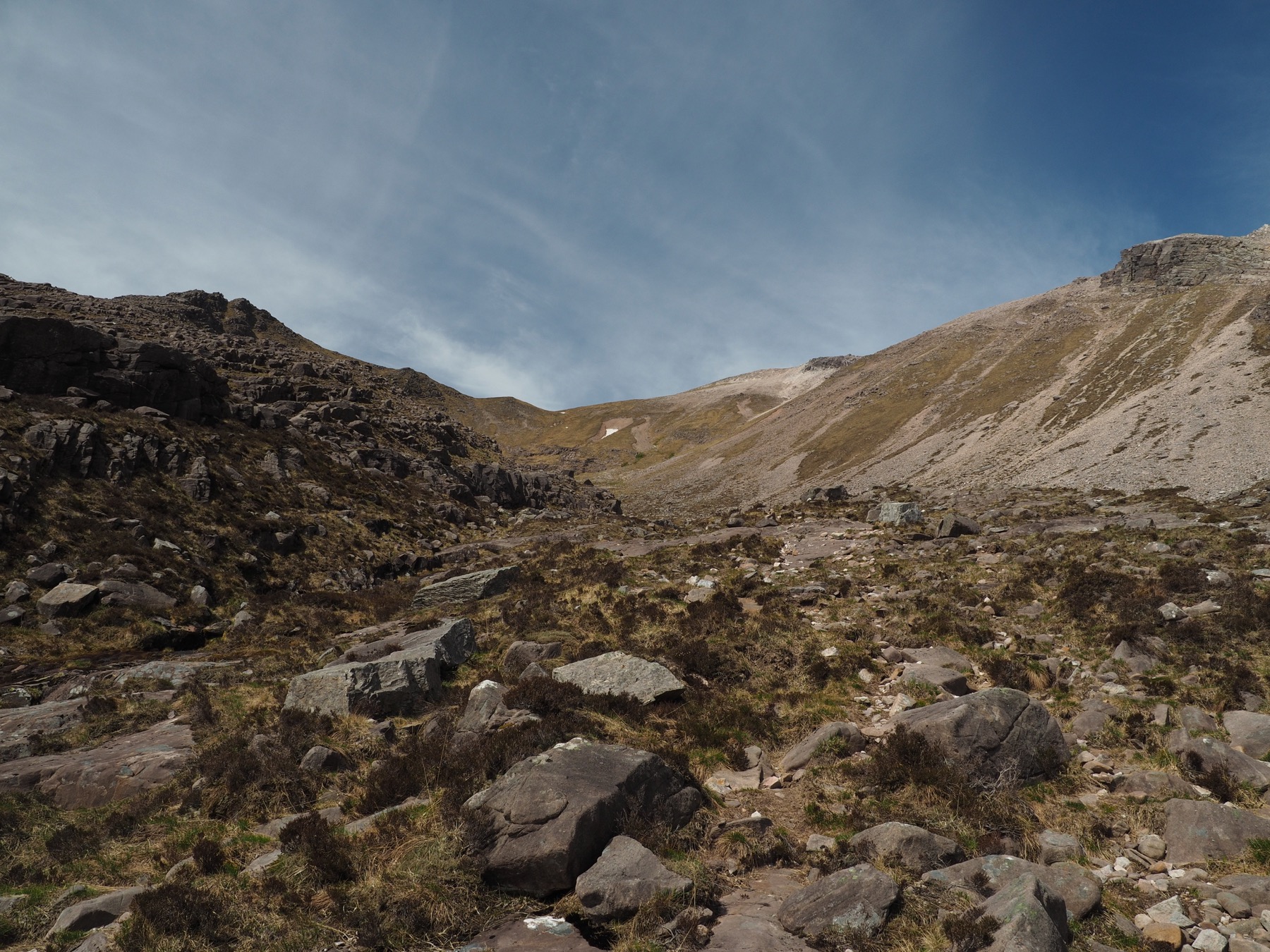From the loch, the hike out took longer than I think either of us anticipated. We did not mind, though, as it gave us a tour of the northern and eastern sides of Liathach and views down Coire MhicNobail toward Beinn Alligin.