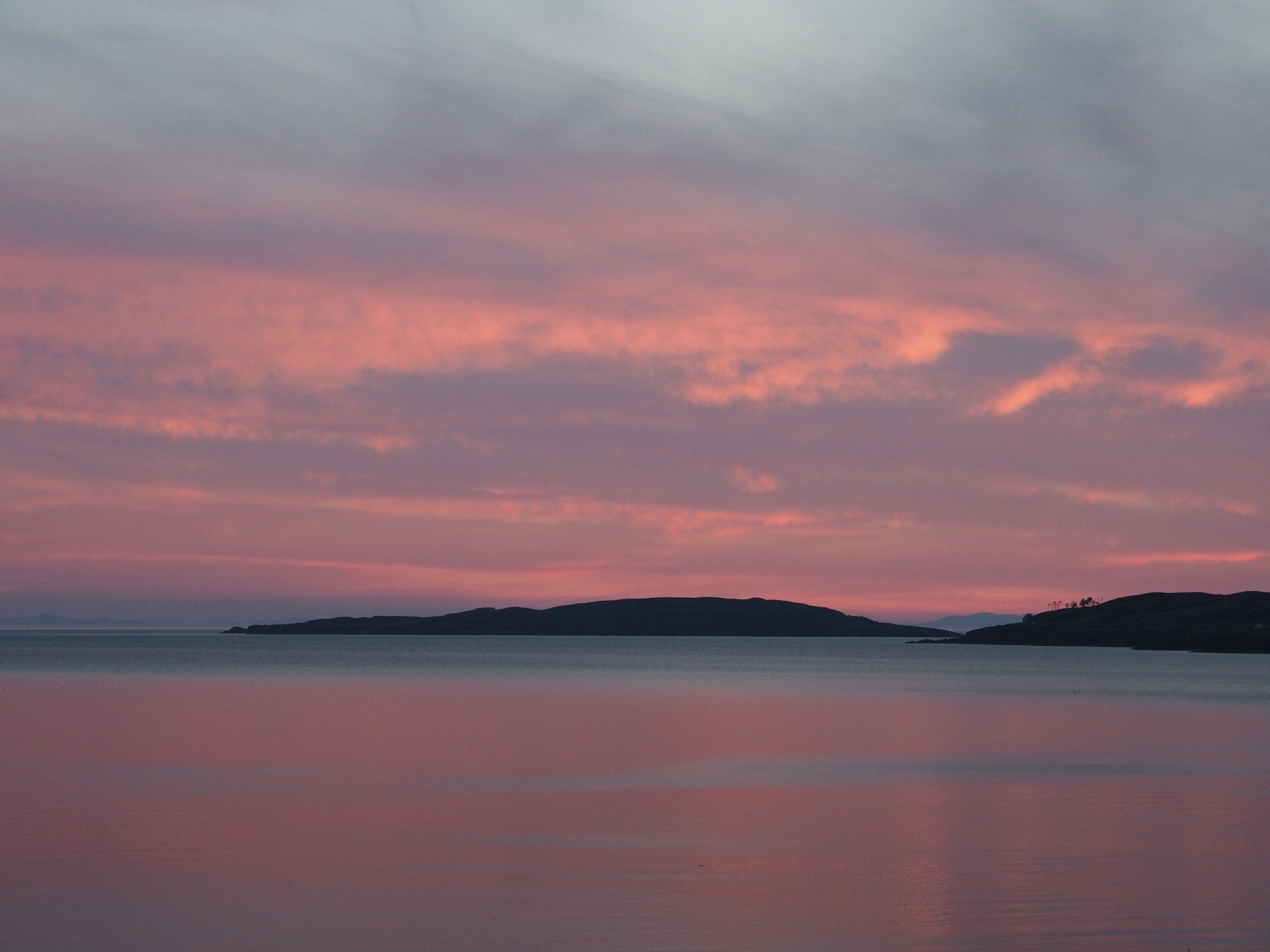 On the way back from dinner, we stopped to enjoy a stunning, pink sunset over Loch Gairloch, with views out to Skye.