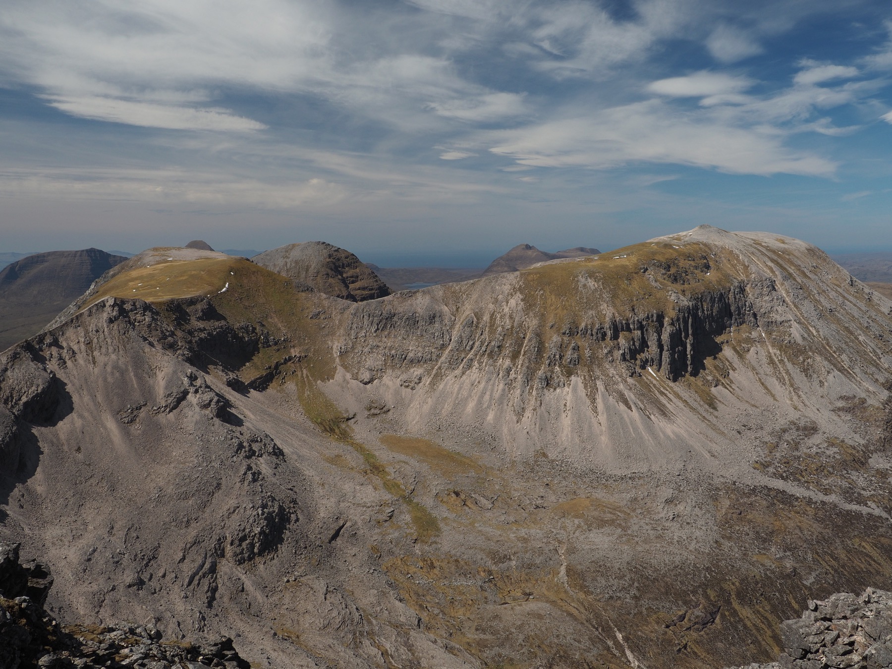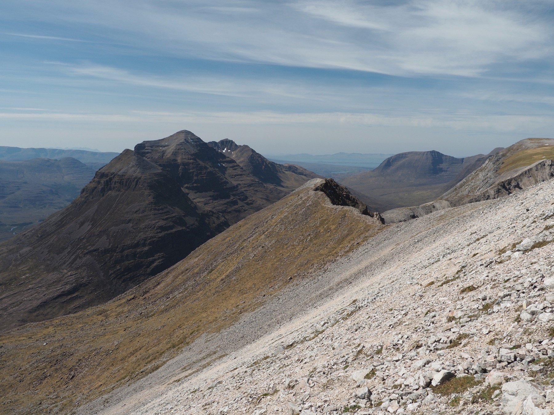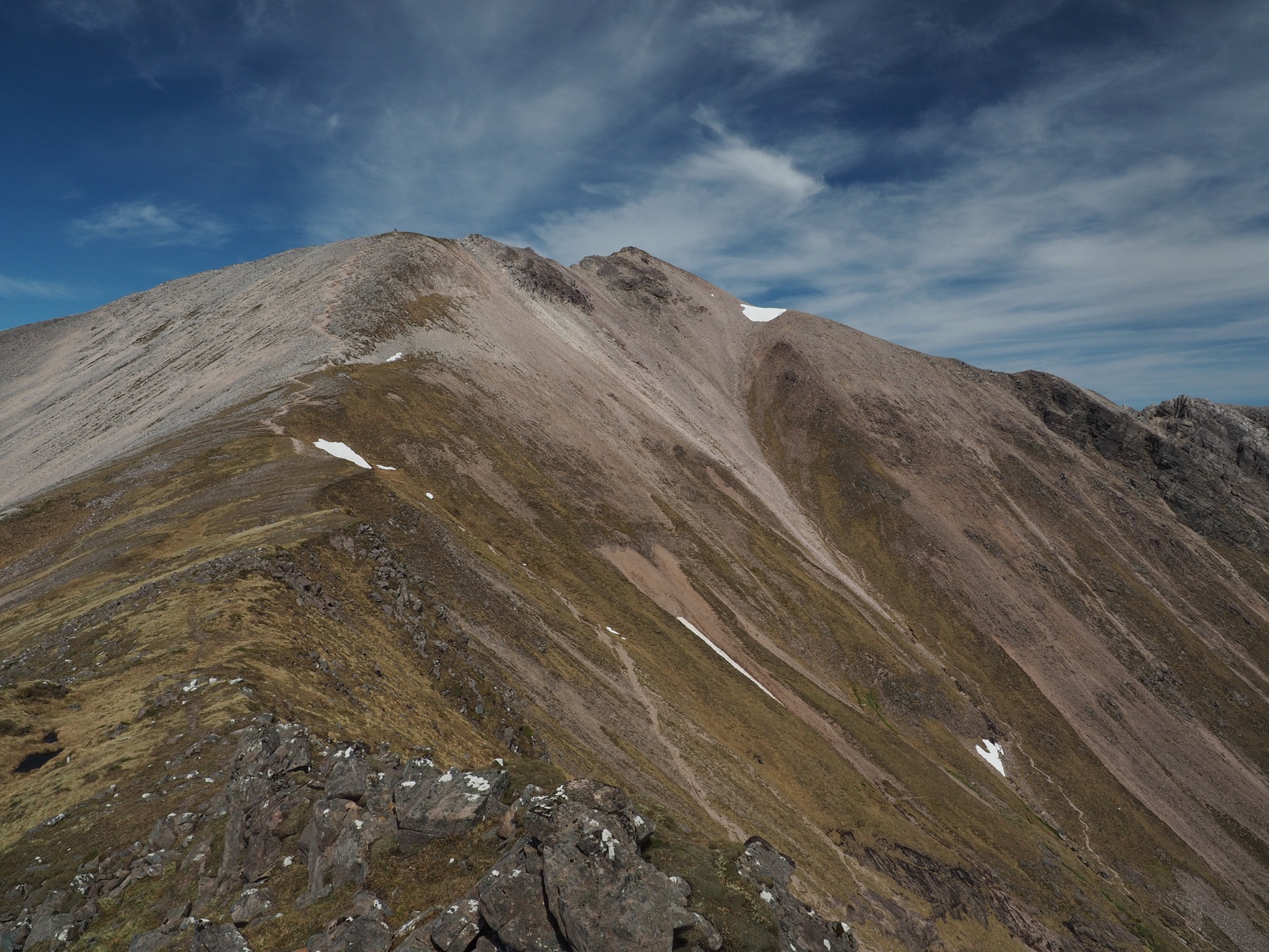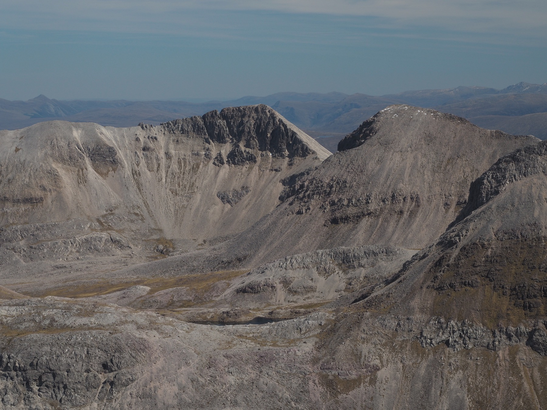 We would eventually turn that way, but first we continued straight, to the second munro summit, Ruadh-Stac Mor. The summit offered impressive views of Coire Mhic Fhearchair and its loch, the rest of Beinn Eighe, and the surrounding landscapes.