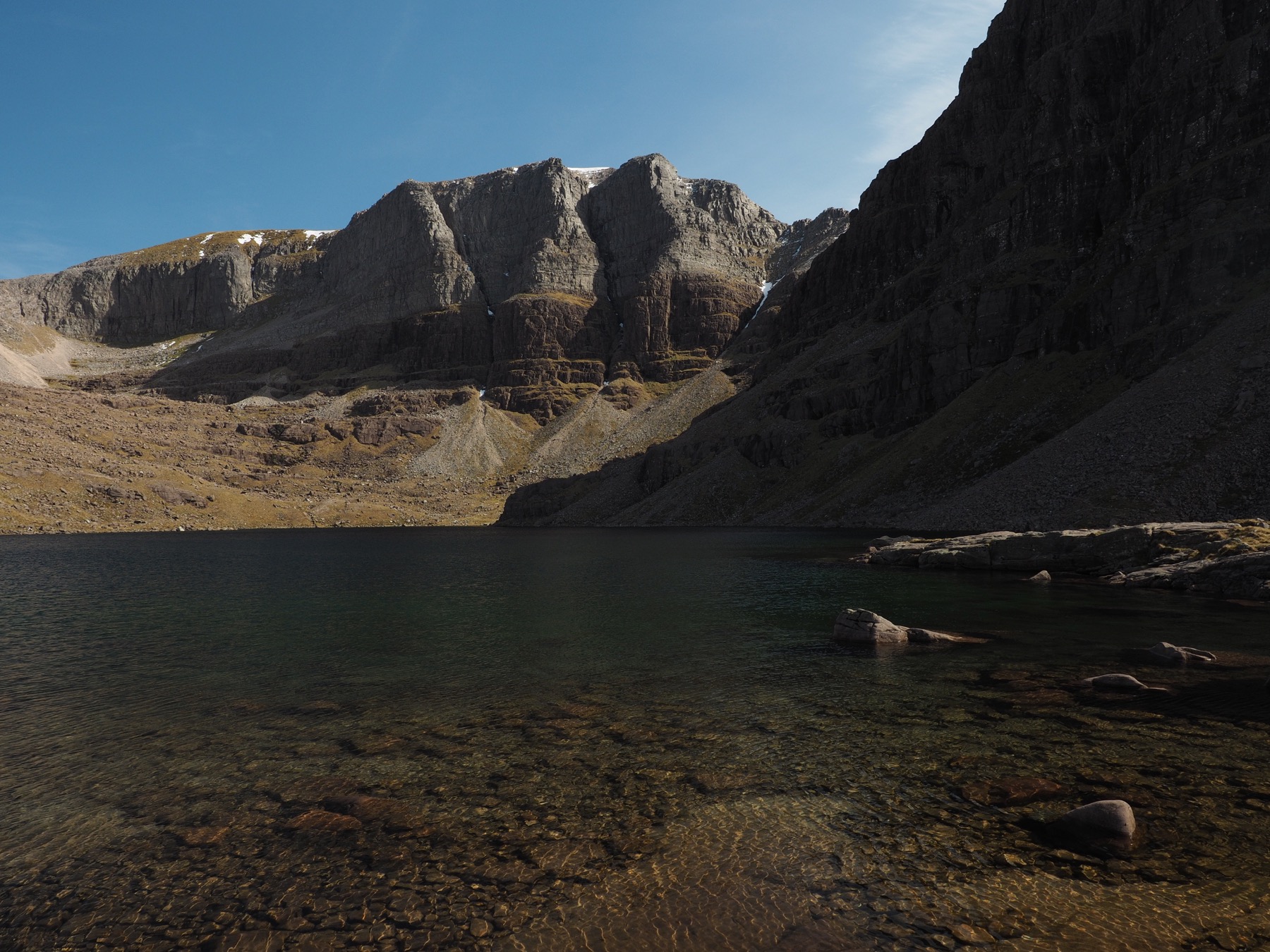 Over breakfast, we again debated hikes. To our incredible fortune, we had another sunny day ahead of us. This made us want to get up high, such as a ridge walk along Beinn Dearg. However, Â the hike to the loch in Coire Mhic Fhearchair felt most different from our hikes thus far, even if we would not get up high for views. We eventually realized that a hike of Beinn Eighe’s western summits would both get us up high and include Coire Mhic Fhearchair. It looked like the right combination for the day.