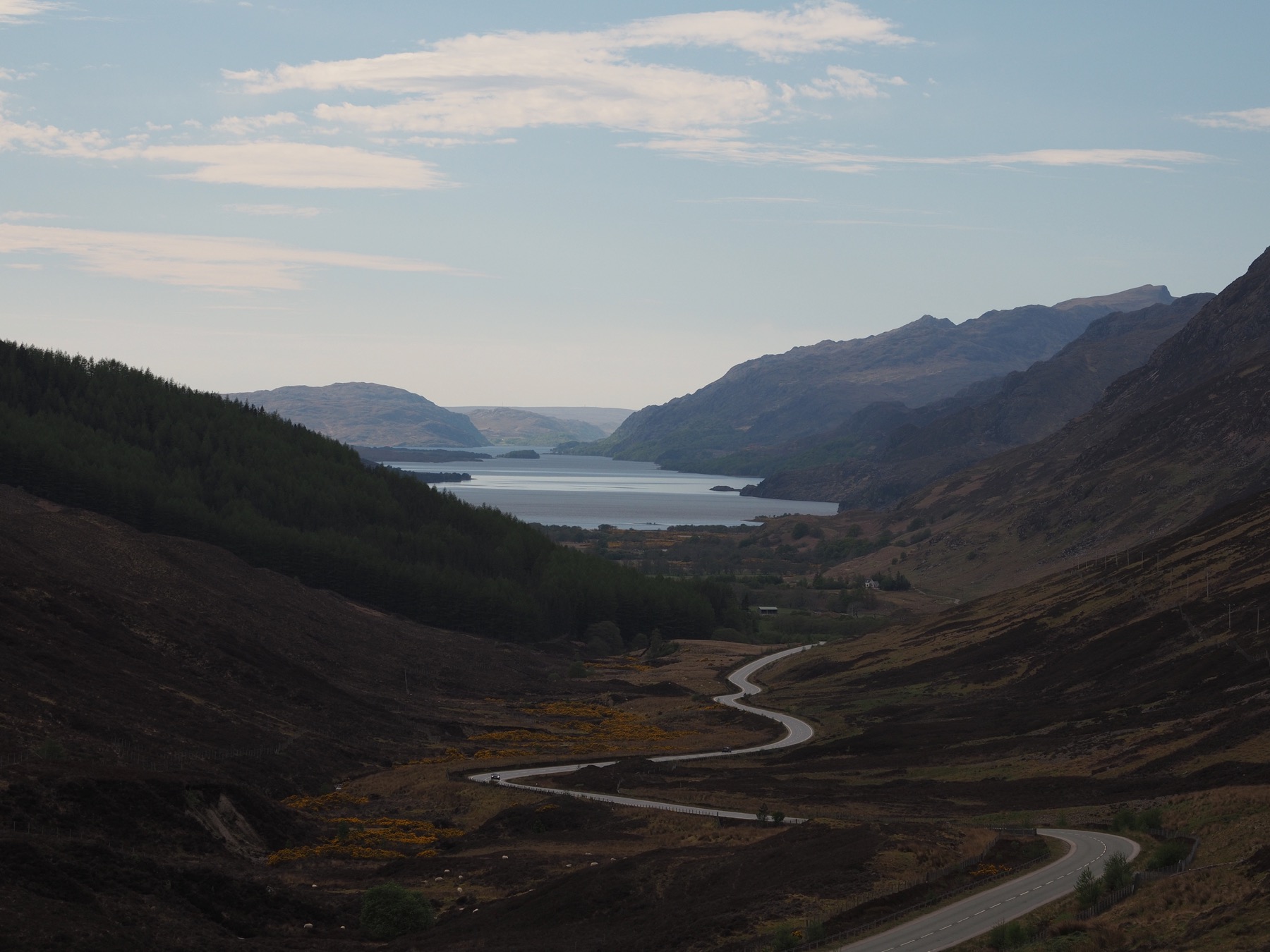 From there, we continued around through Gorstan before turning off onto A832 toward Achnasheen and Loch Maree. Along the drive, we stopped at Glen Docherty Viewpoint for a look down the valley and Loch Maree in the distance, as well as at a roadside stop along Loch Maree with views of Slioch (“The Spear”).