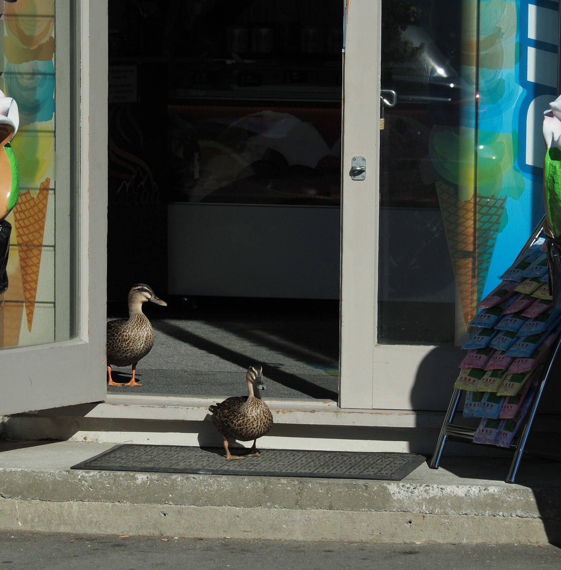 Walking back through Akaroa, we watched an ice cream shop worker shoe two ducks out of her shop, across the street into a parking lot, and then set down some ice cream for them to eat.