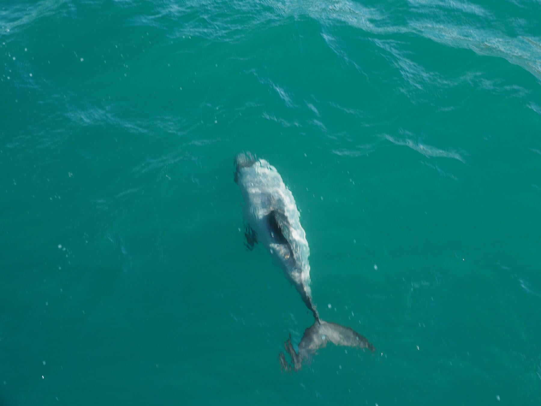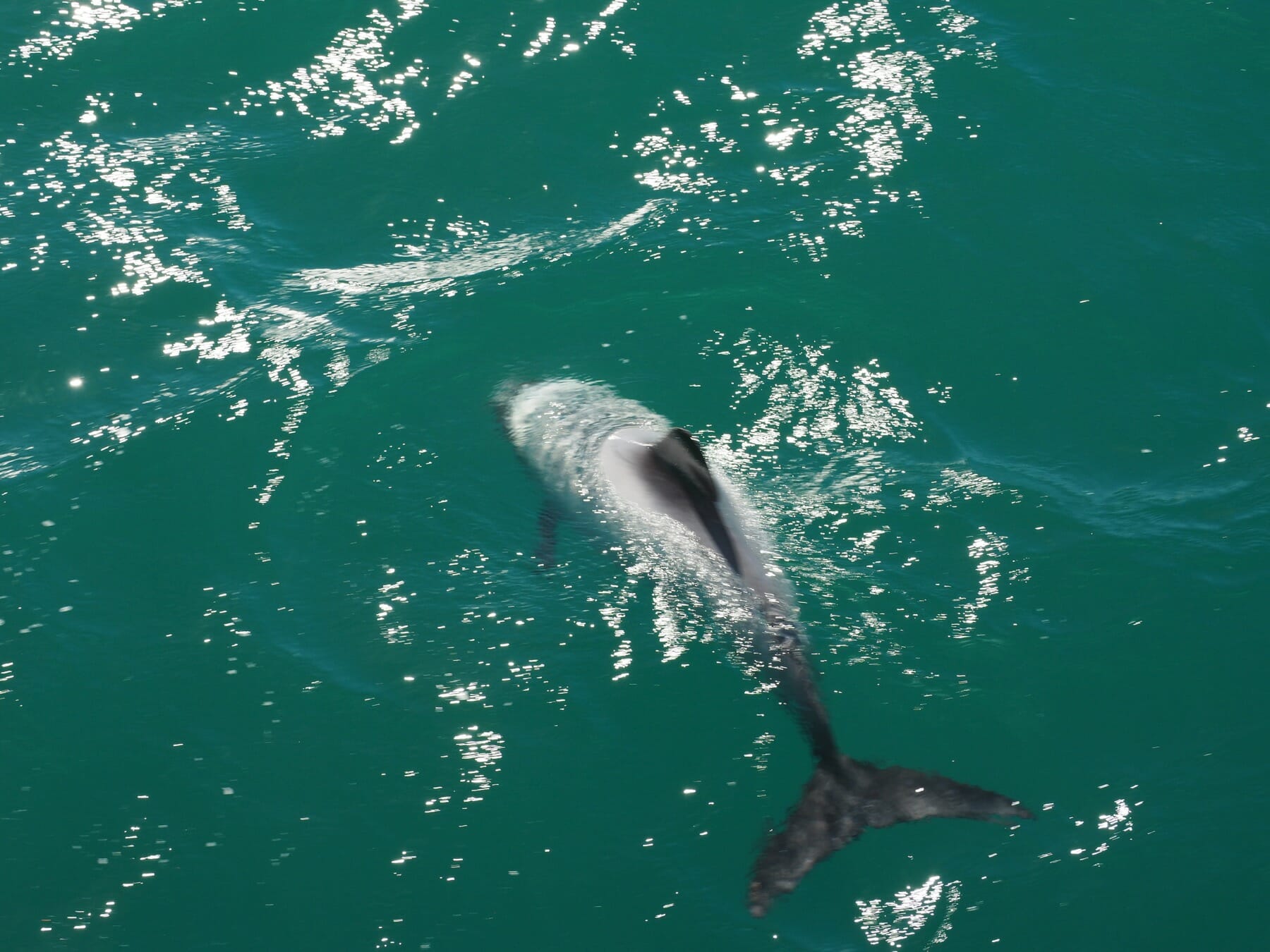 On our way back into the harbor, though, we spotted two dolphins coming at us like torpedos. After the passed us, we turned slightly, and suddenly there were dolphins everywhere. These dolphins–Hector’s dolphins–are the smallest, about 4-5 feet long, and rarest in the world. The crew kept us out a little longer than planned, so that we could enjoy this sighting. We watched them swim around the boat for a while before the dolphins and we went our separate ways.