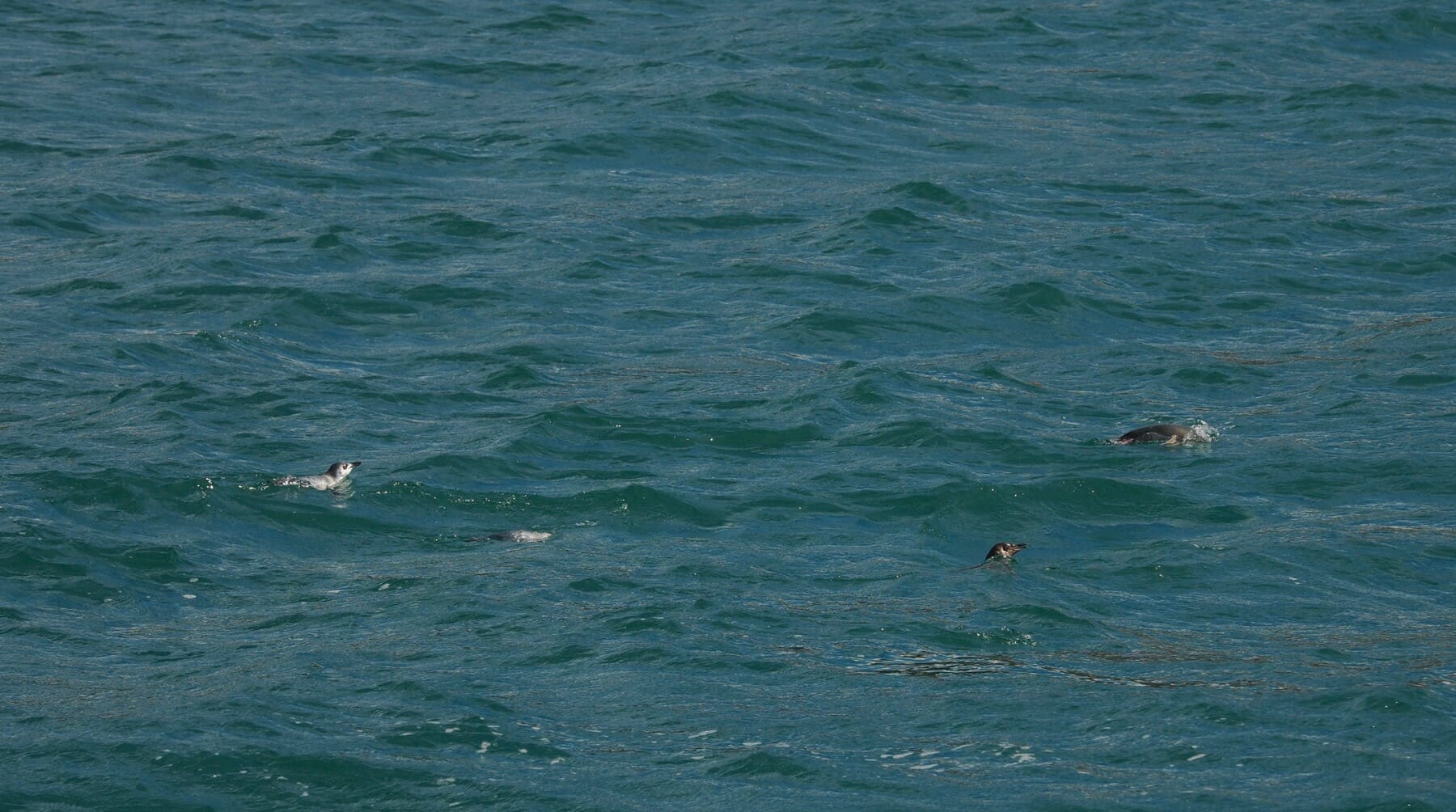 Soon after, we were underway. We proceeded up the bay, visiting sights and looking for dolphins. While dolphins proved elusive, we soon came across several little penguins feeding in the water. These penguins, also called little blue penguins, blue penguins, or kororā, are only a little more than a foot tall.