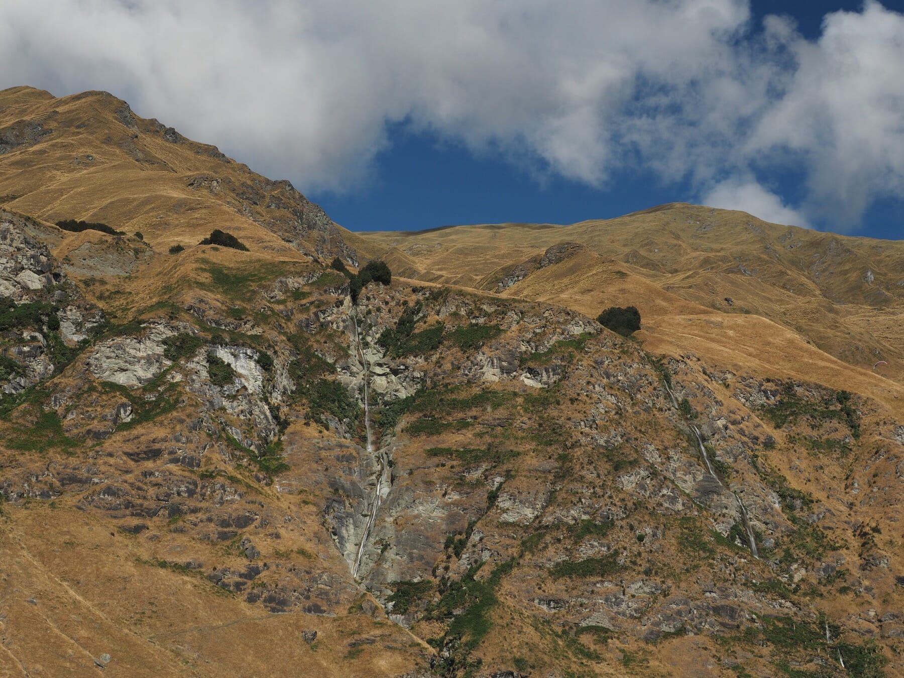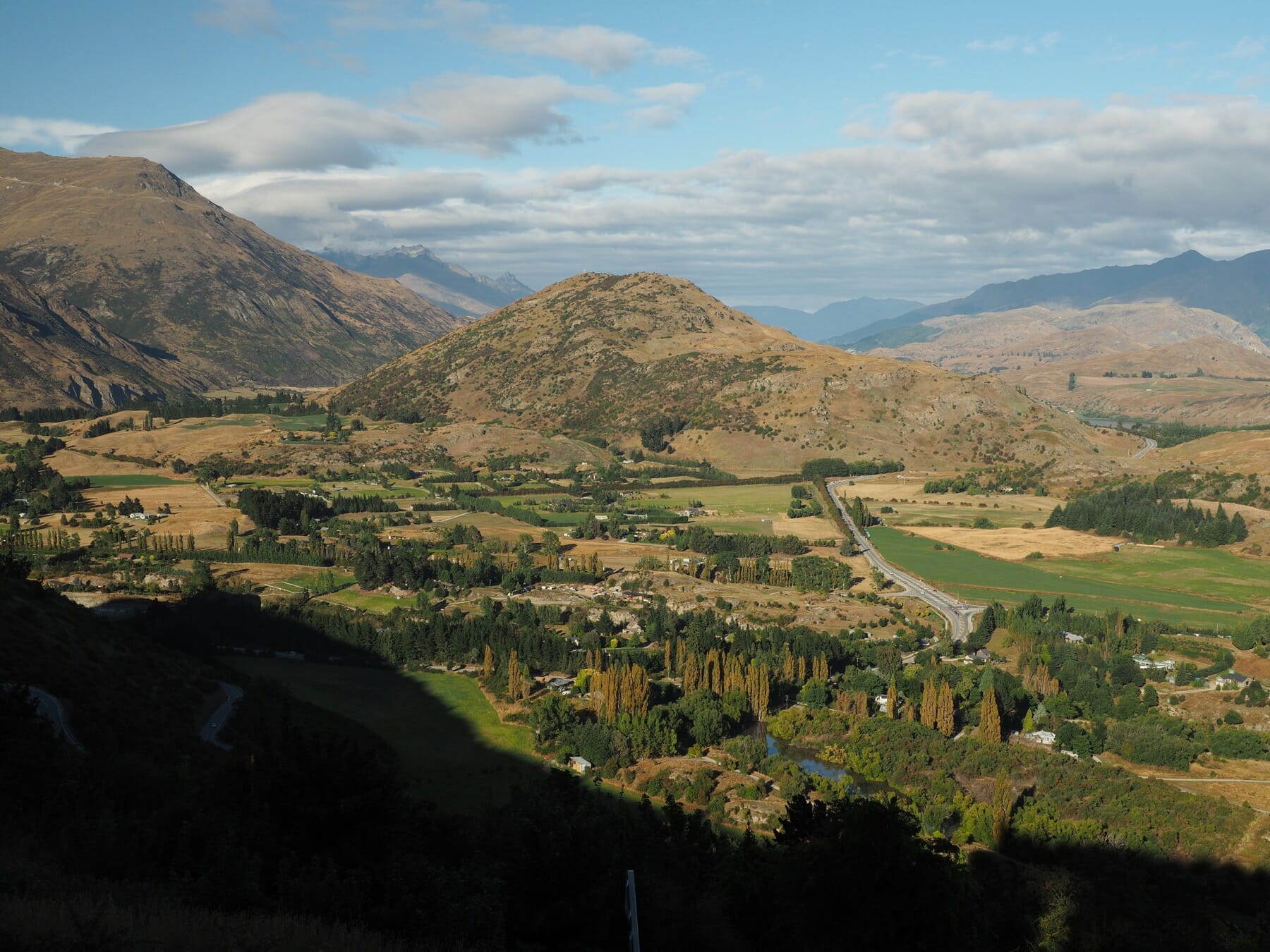 At Arrow Junction, not long after leaving Queenstown, the road climbed steeply to the Crown Range. We stopped at two different viewpoints: once looking back at Queenstown and once at the summit, for more expansive views of the mountains.