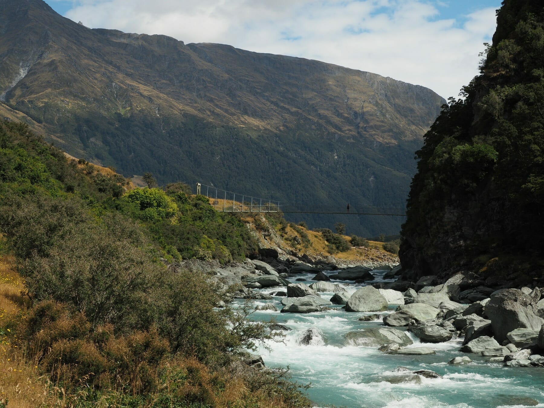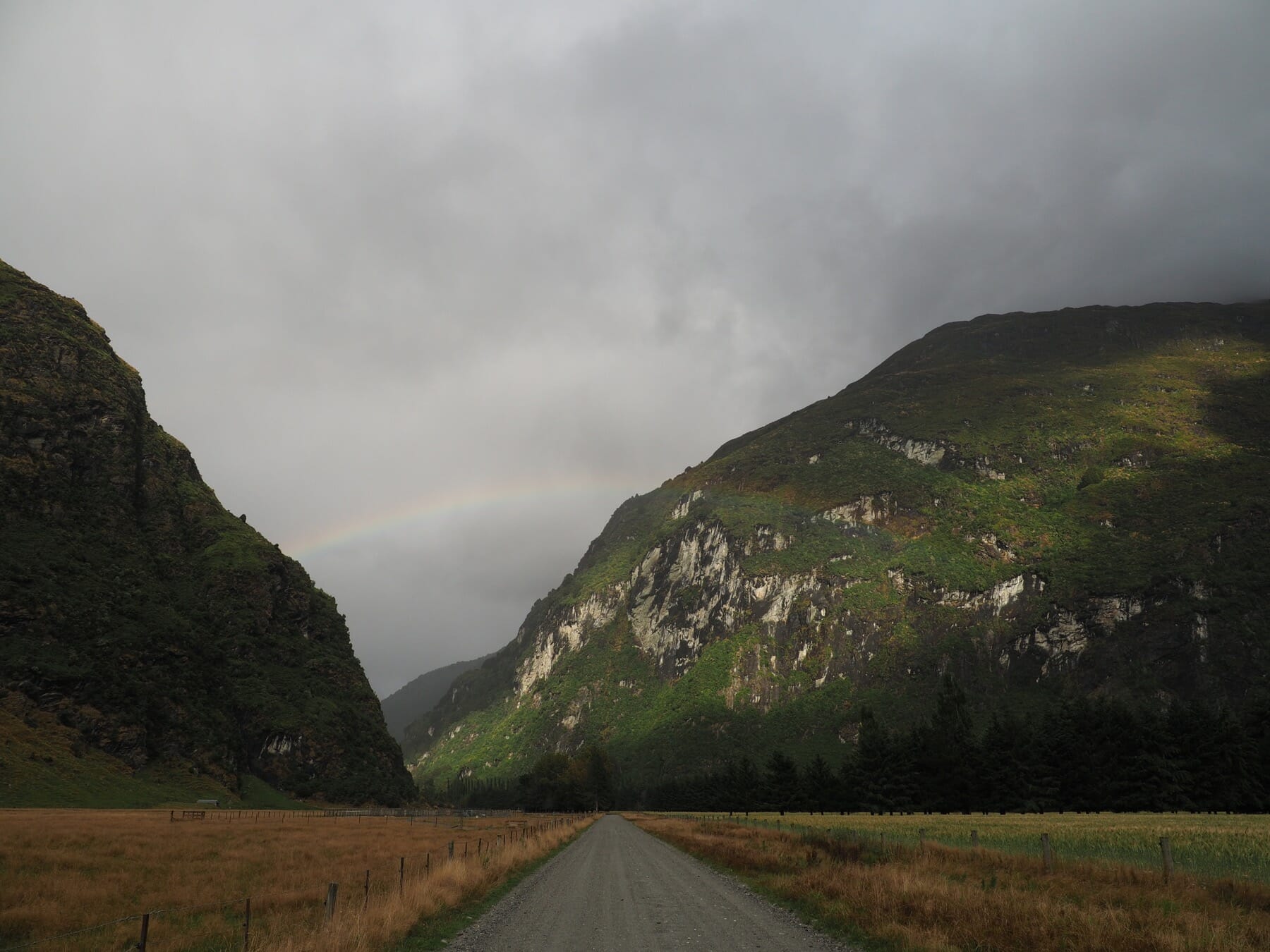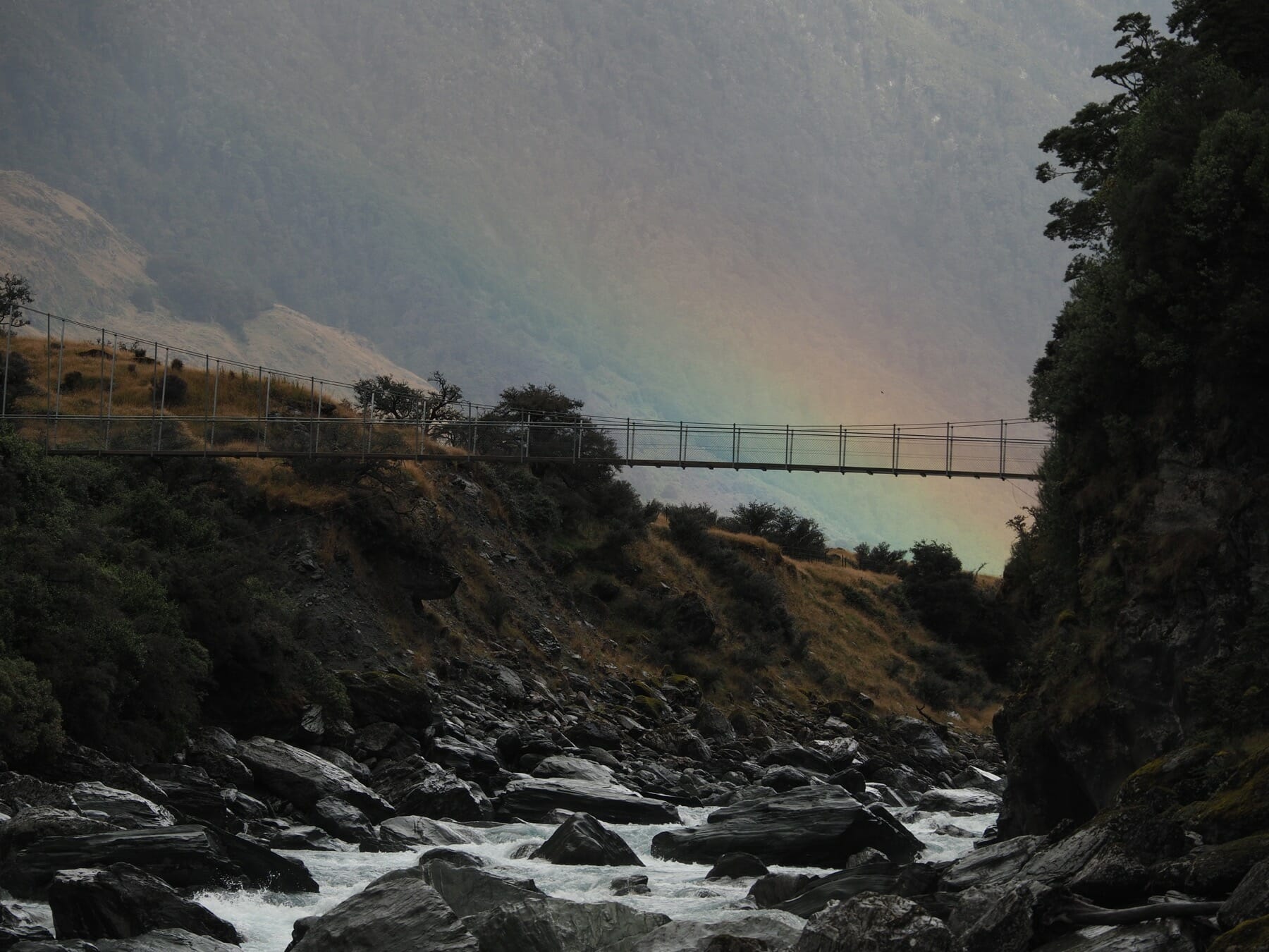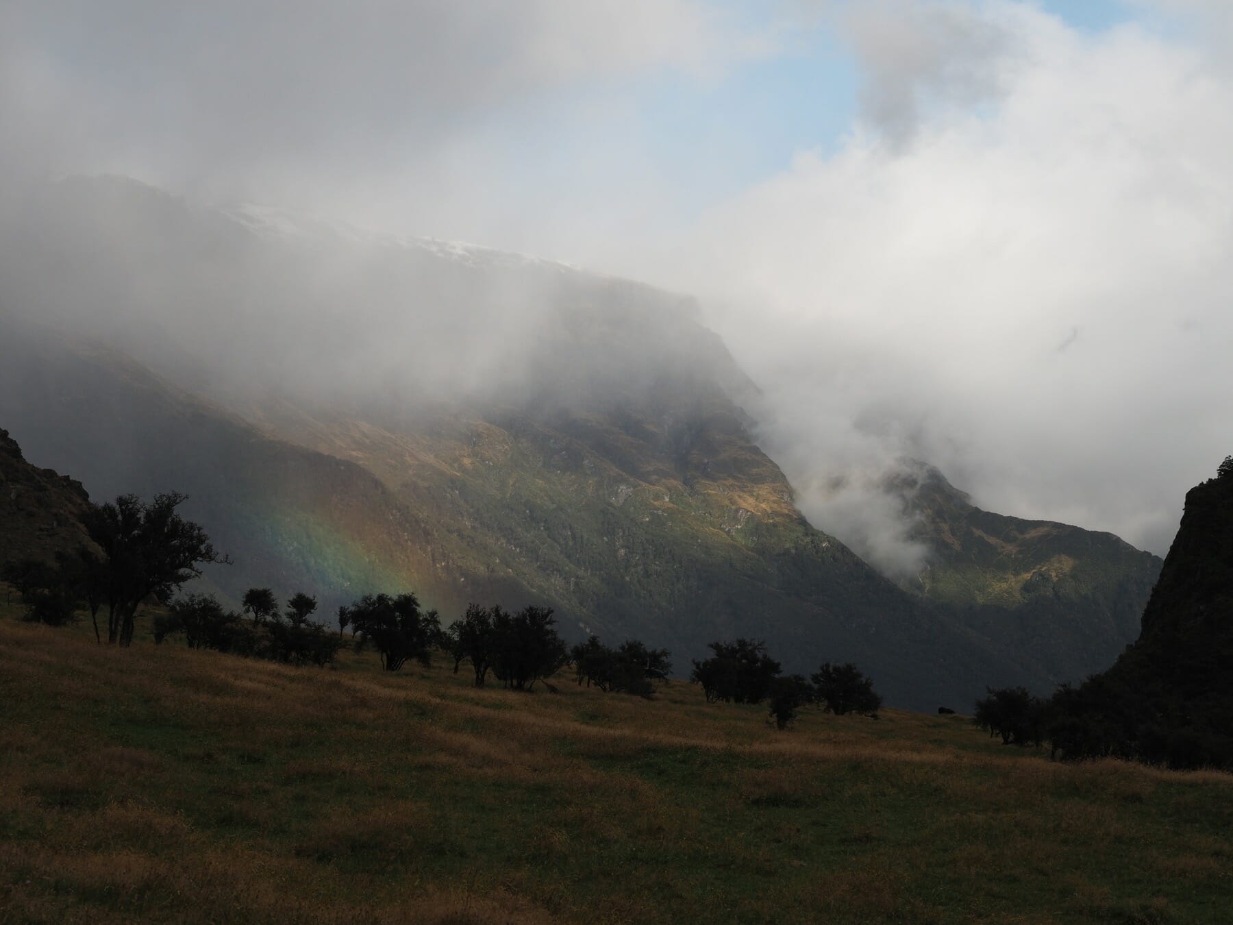 To start the West Matukituki track, we drove back to the Raspberry Flat carpark, where we had started the previous day’s hike. Rainbows appeared all along the drive in and along the trail, up to the swing bridge for Rob Roy Glacier Track. Here, instead of turning, we continued up the valley.