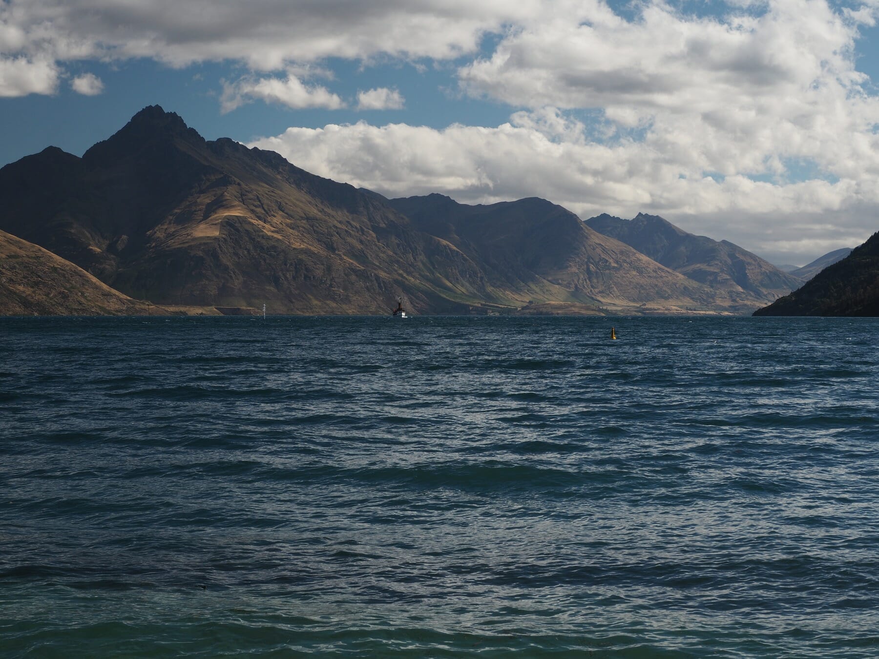 The flight from Christchurch to Queenstown passed quickly. For the first part of the flight, clouds obscured the Southern Alps (Kā Tiritiri o te Moana). As the plane approached Queenstown, the clouds parted, giving views of Lake Tekapo, Lake Pukaki, Lake Ohau, Lake Hawea, Lake Wanaka, each different, vibrant shade of blue. On the flight, they also served as cookie whose marketing appeared to be a combination of Pride and the Philly Flyers’ mascot, Gritty.