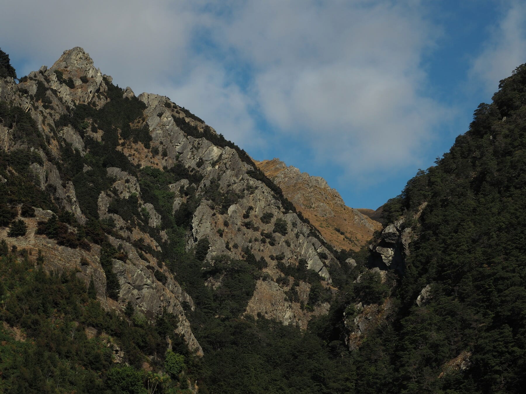 The drive to the trailhead, on the land that divides Lake Hawea and Lake Wanaka, took about 30 minutes. From the carpark, the trail led through the forest and over some farm gates. It then began climbing, steeply, along a ravine.